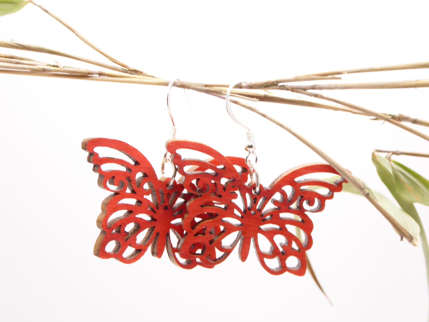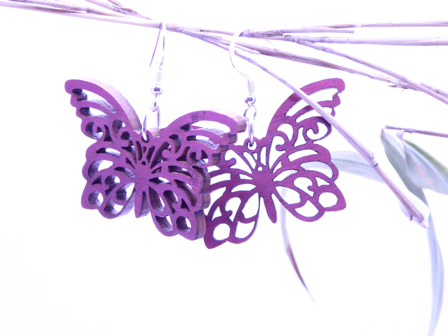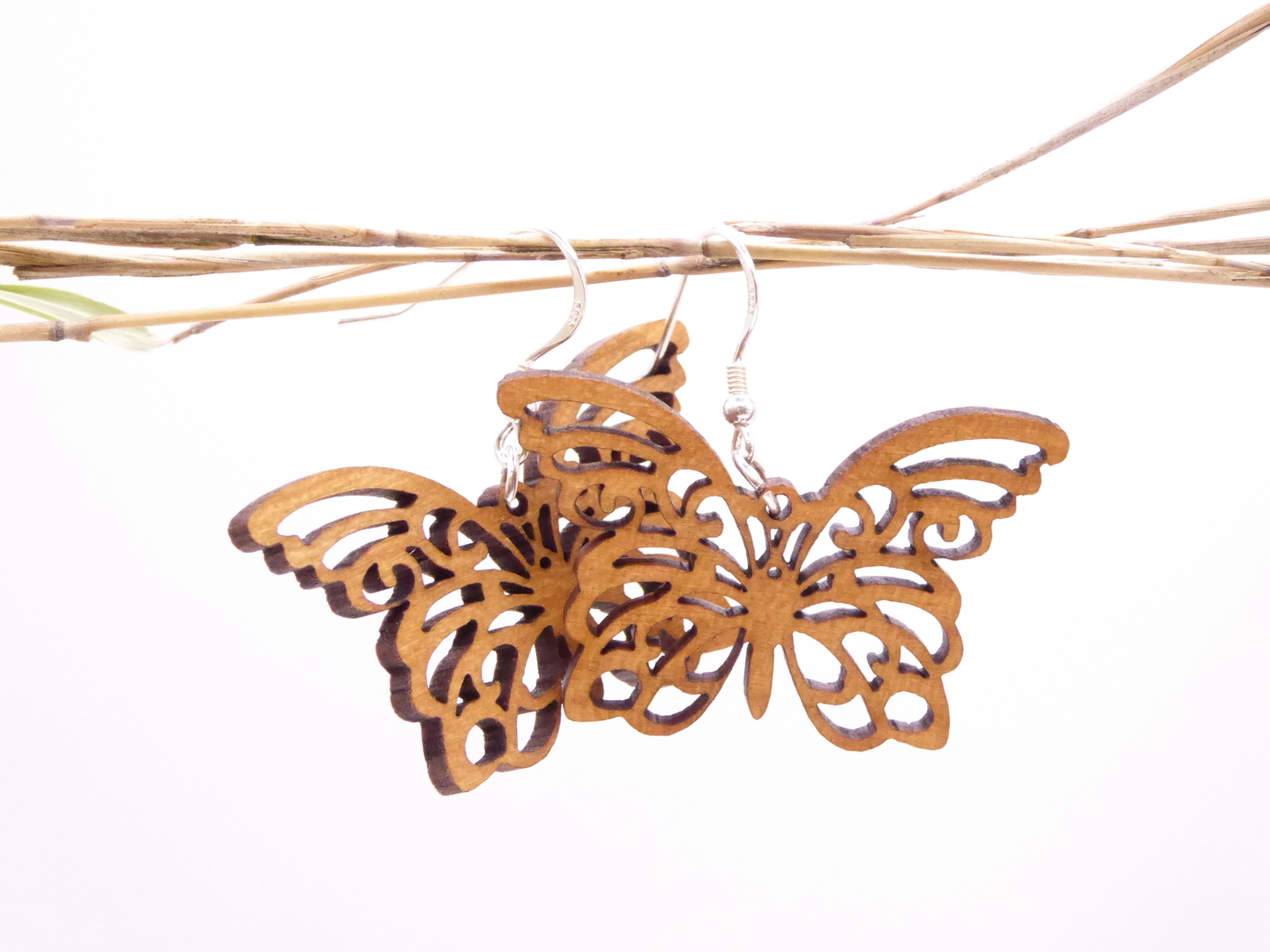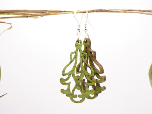 Boucles d’oreilles en bois massif, apprêts en argent 925.