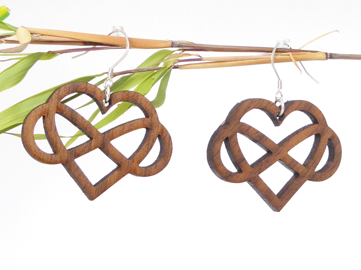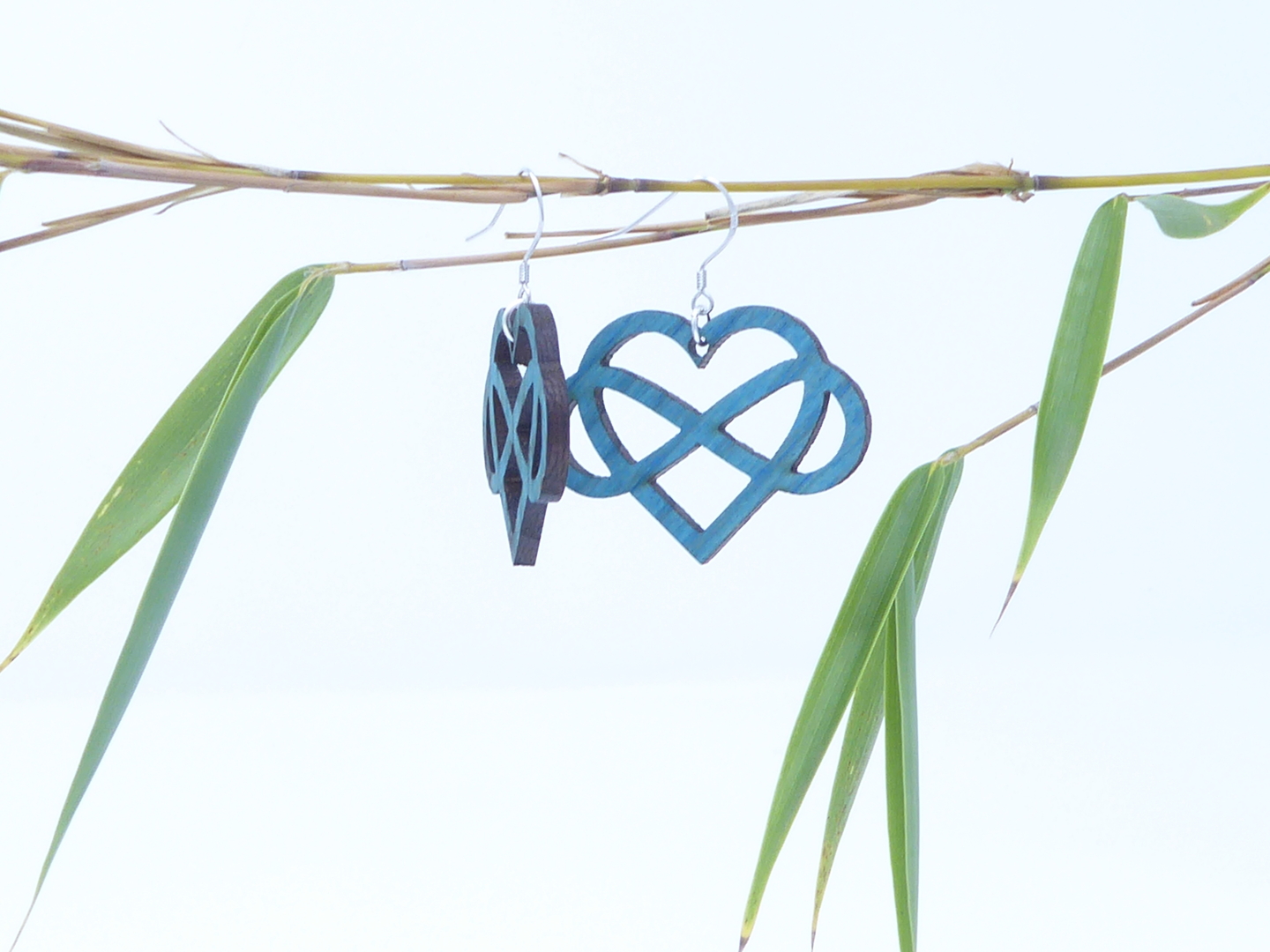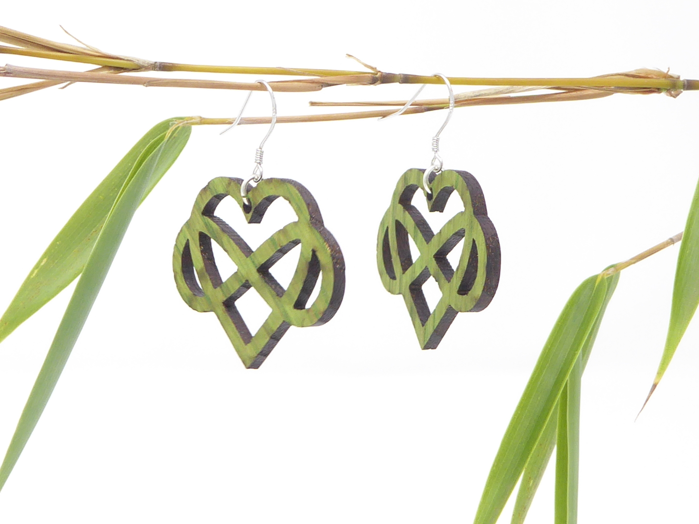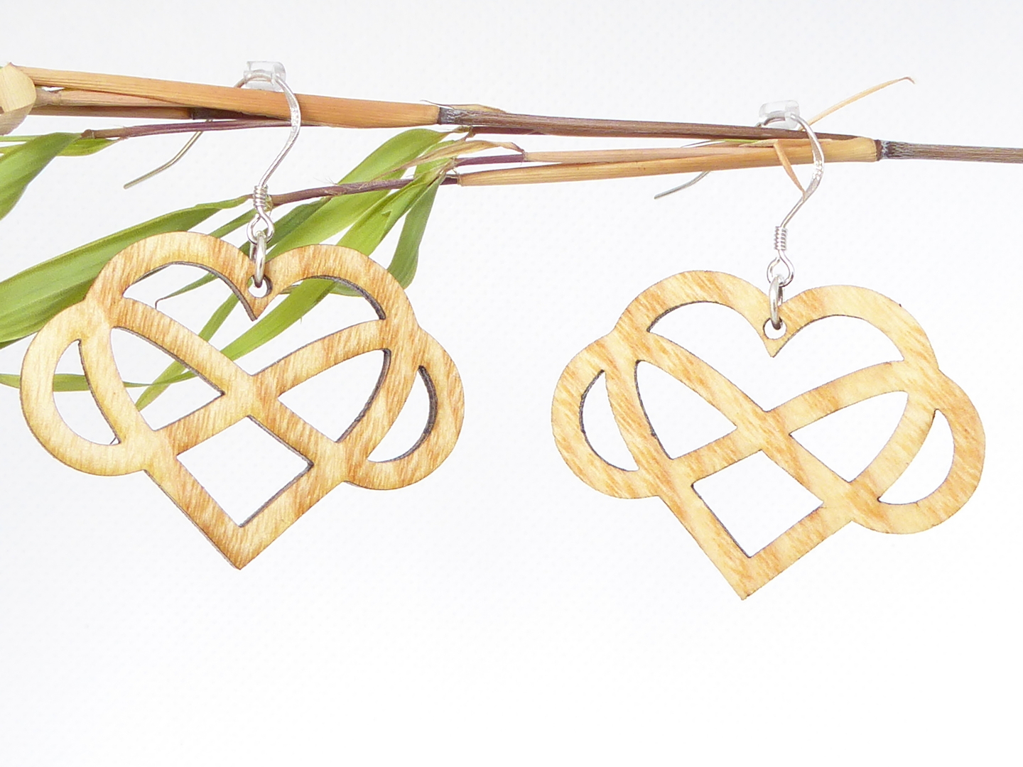 Boucles d’oreilles en bois massif, apprêts en argent 925.