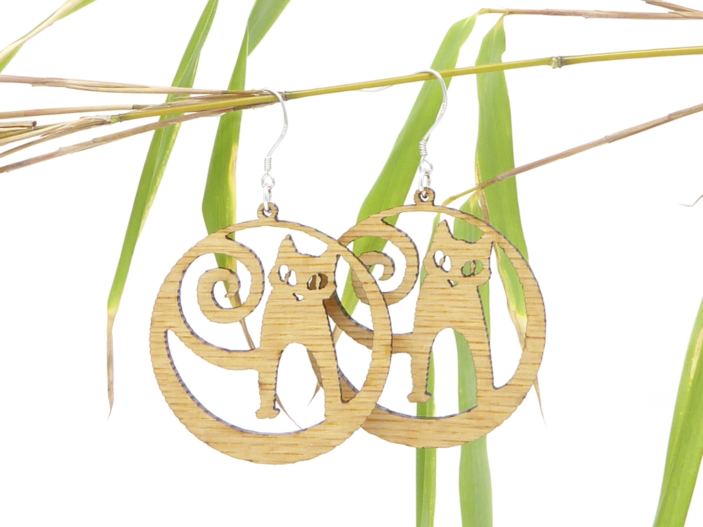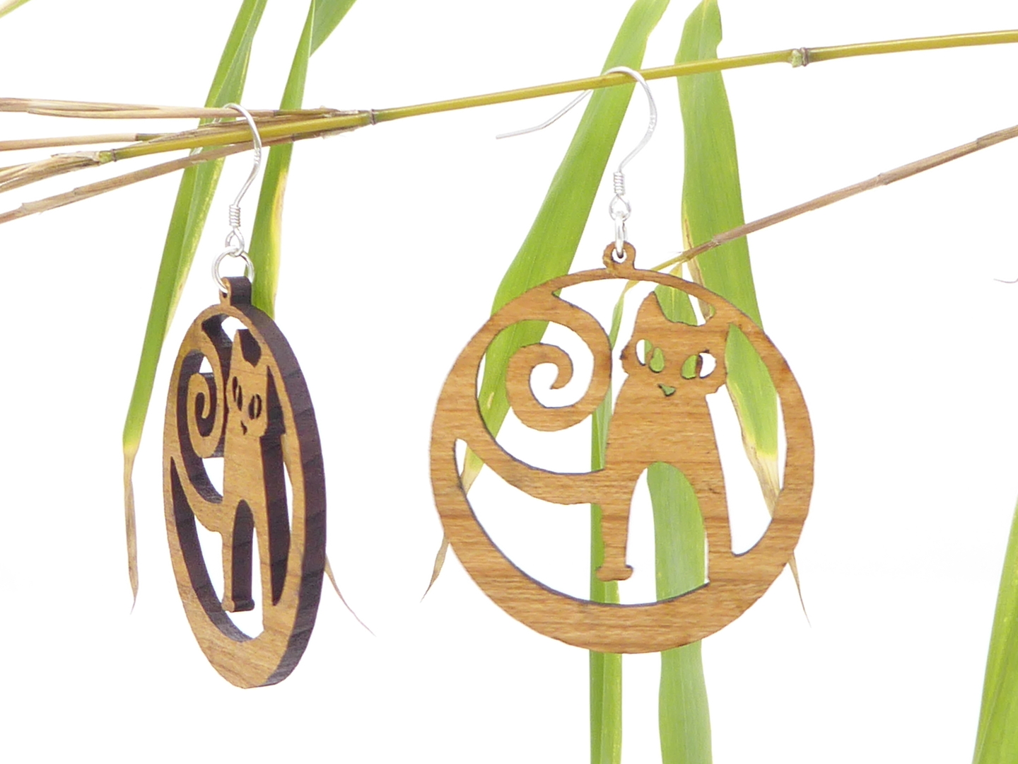 Boucles d’oreilles en bois massif, apprêts en argent 925.