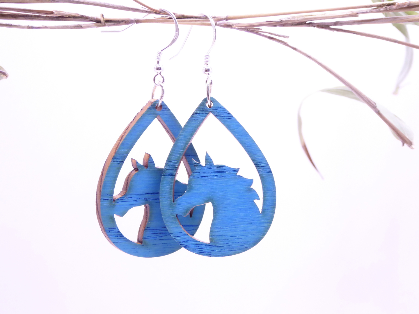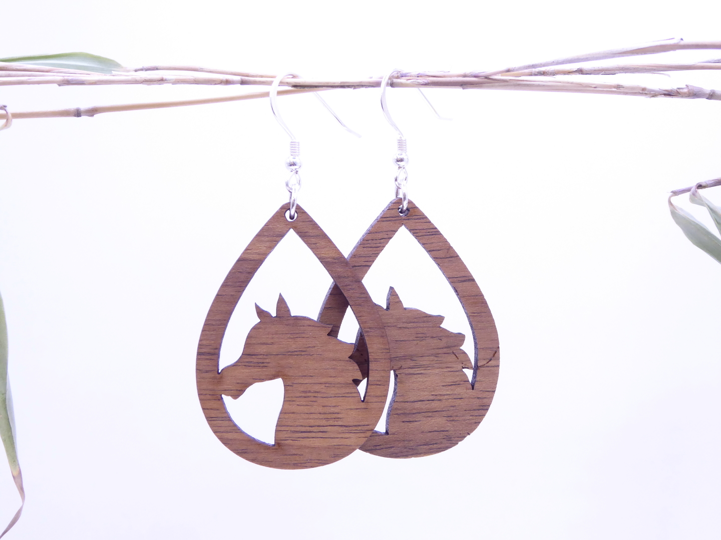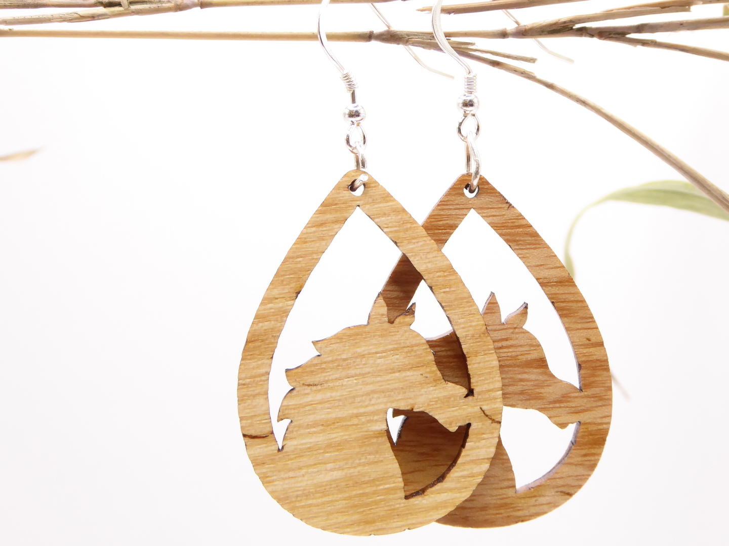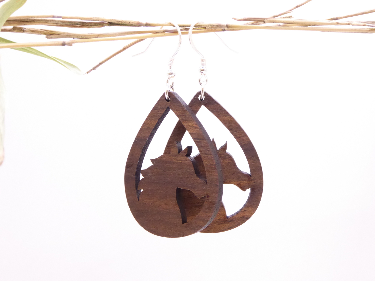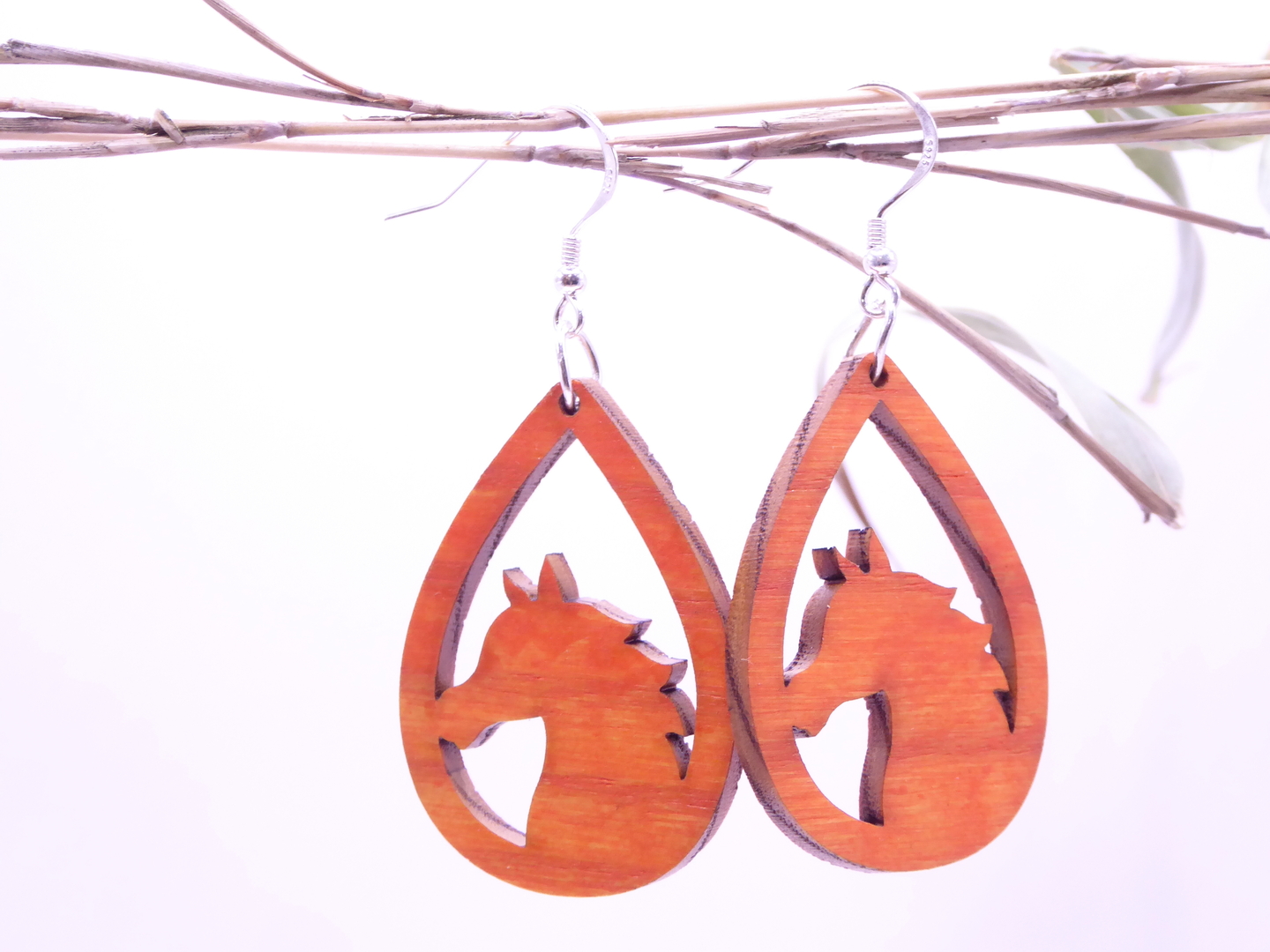 Boucles d’oreilles en bois massif, apprêts en argent 925.