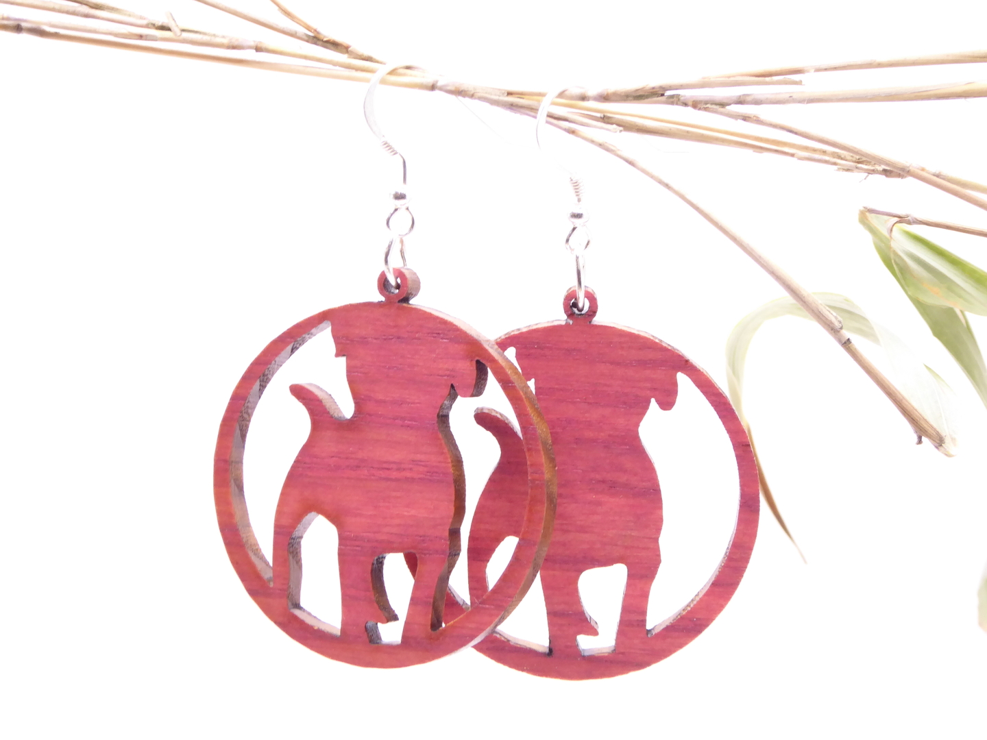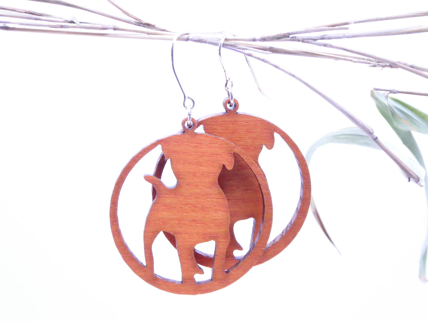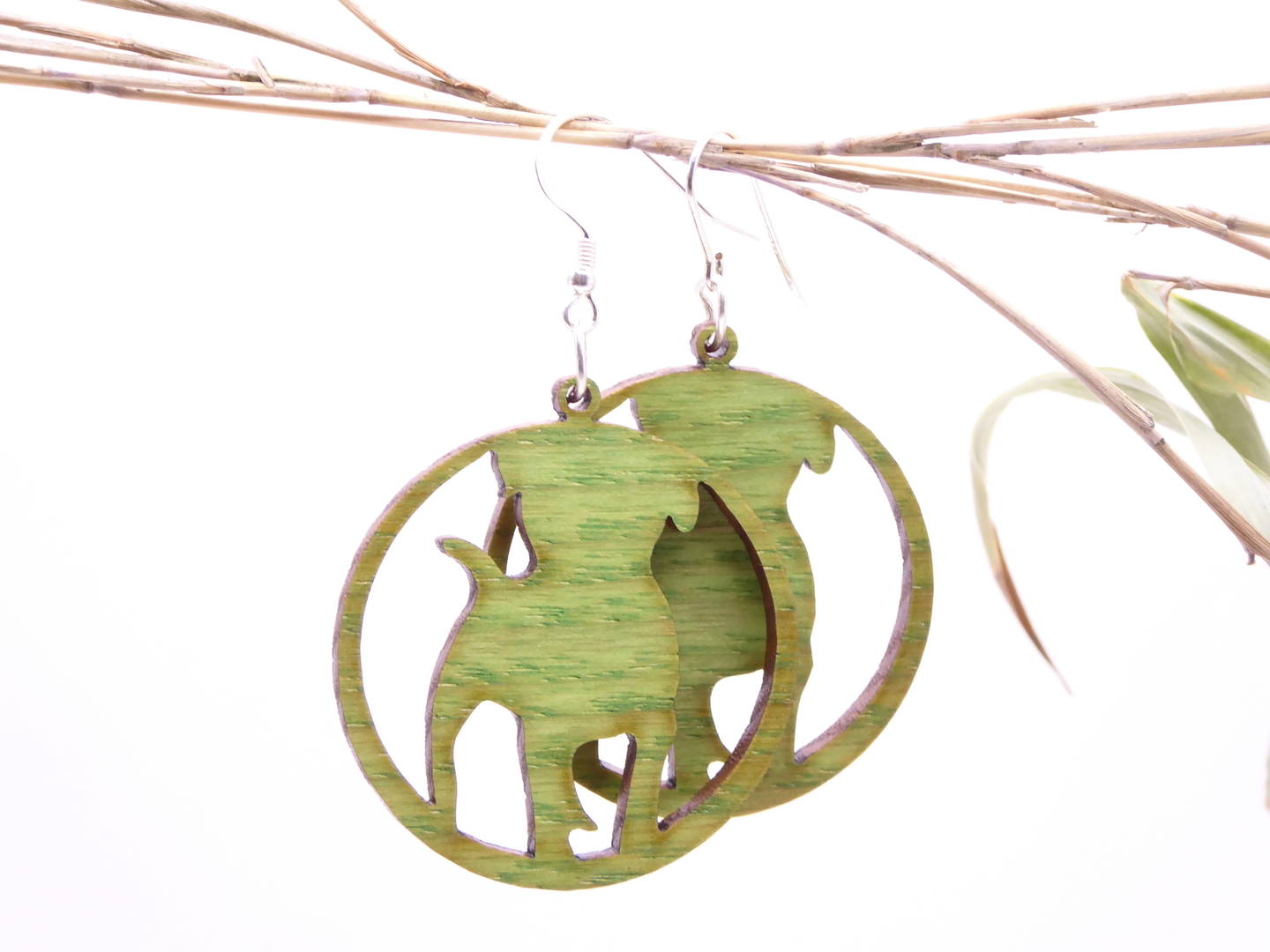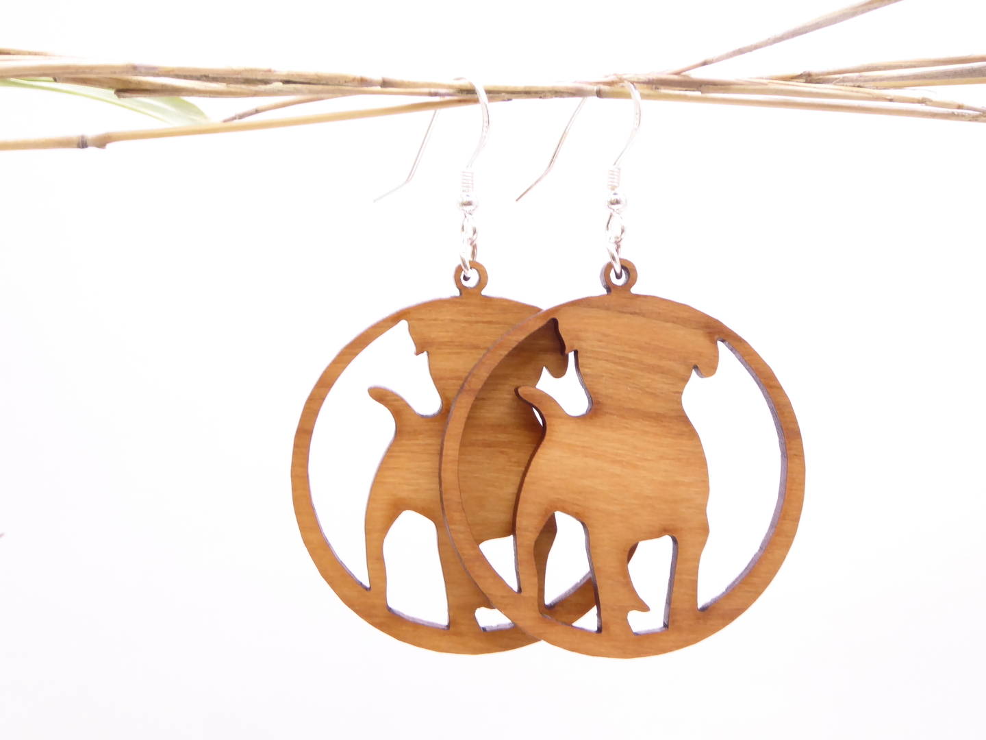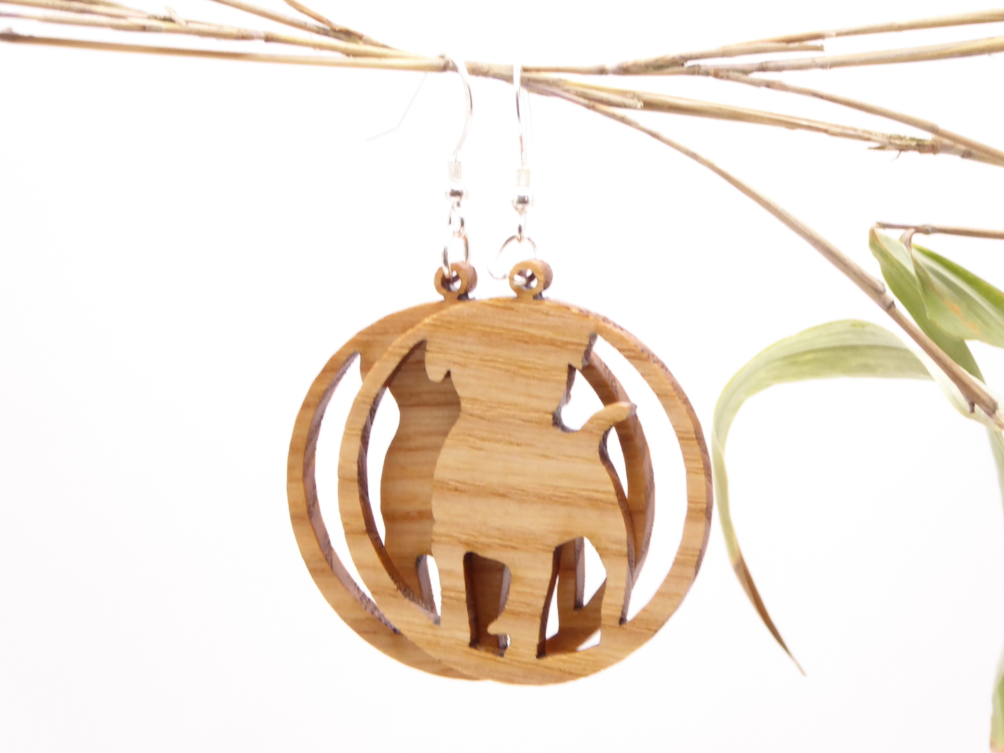 Boucles d’oreilles en bois massif, apprêts en argent 925.