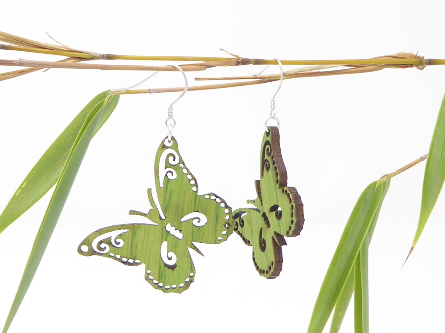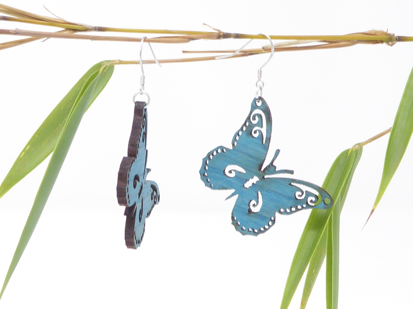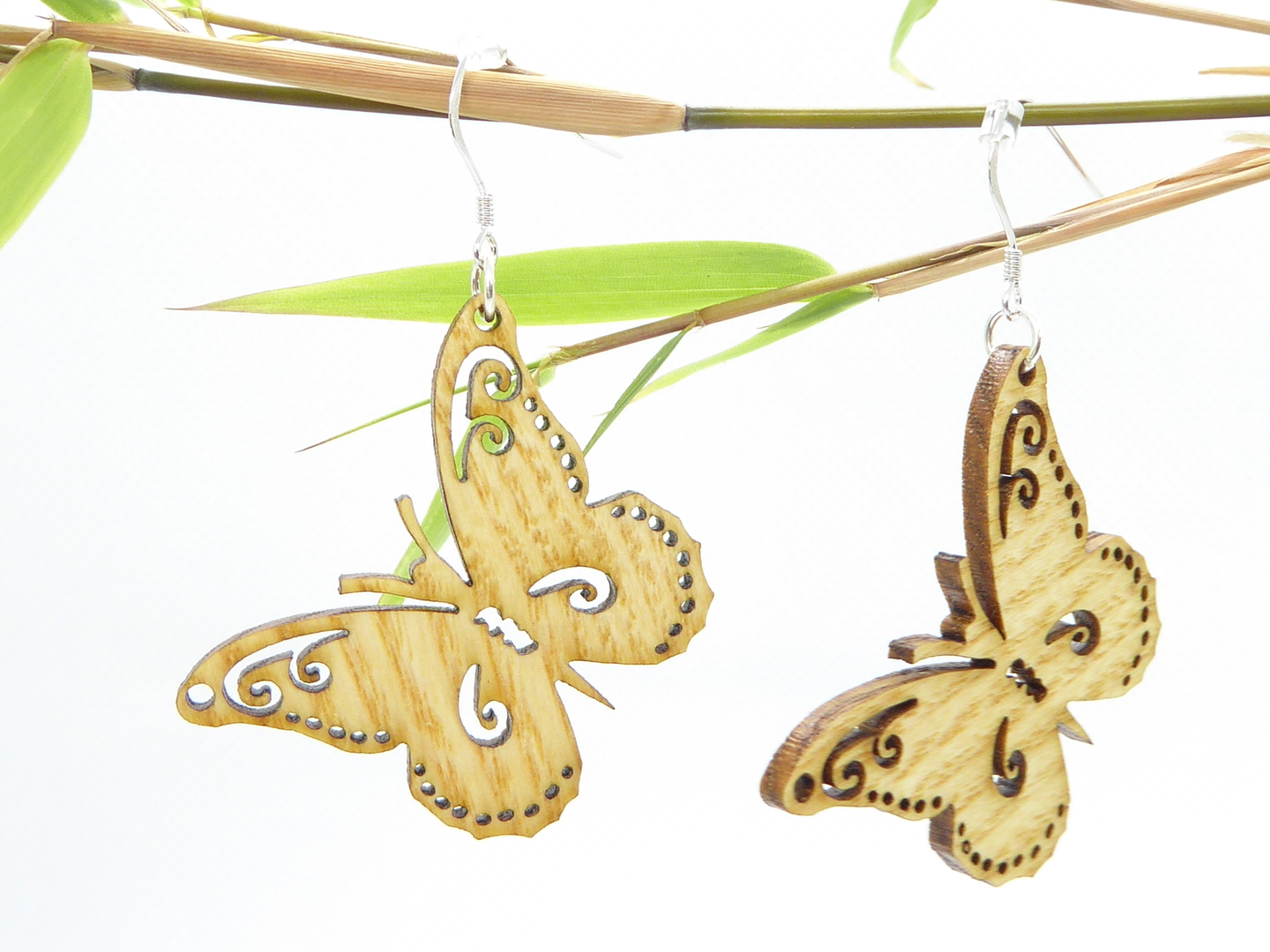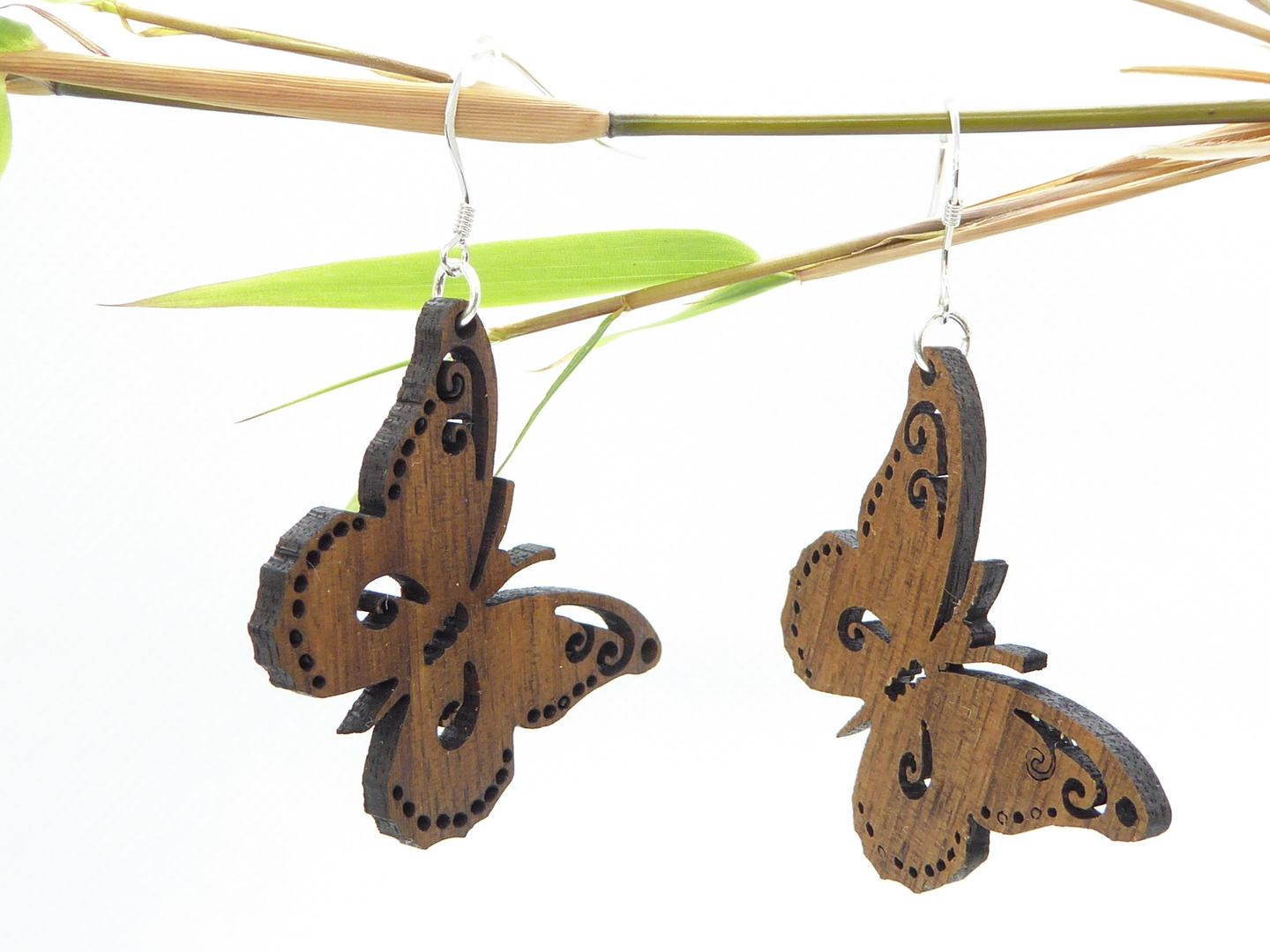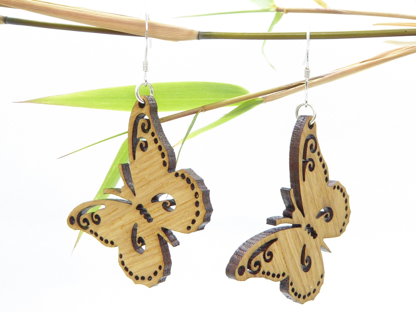 Boucles d’oreilles en bois massif, apprêts en argent 925.