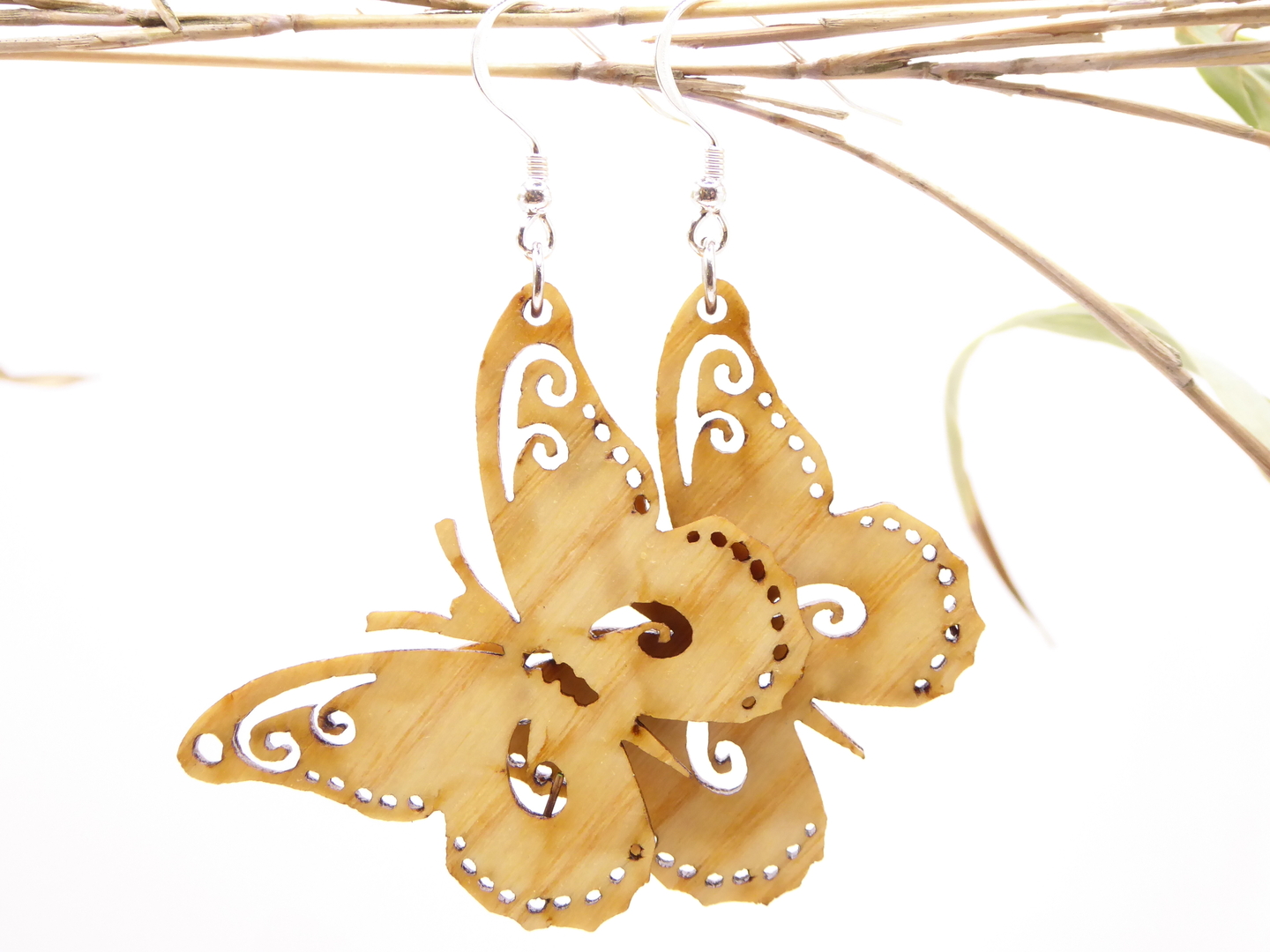 Bois;Argent;animal;papillion;Dimensions du pendant : Hauteur 42mm/ Largeur : 42mm