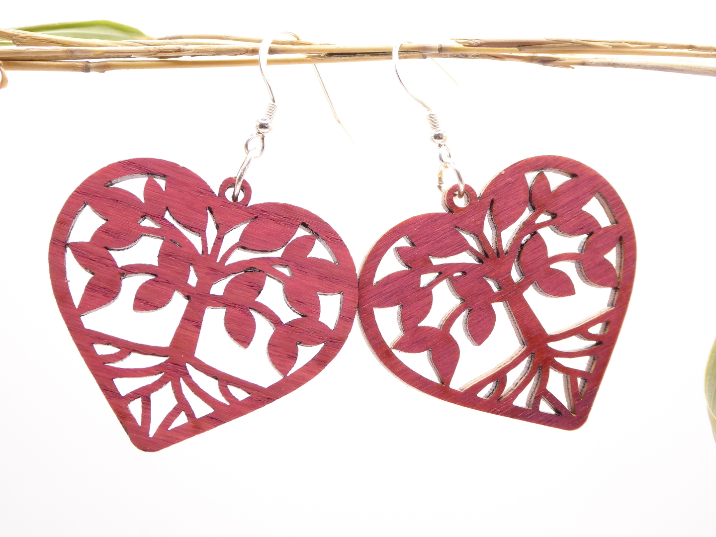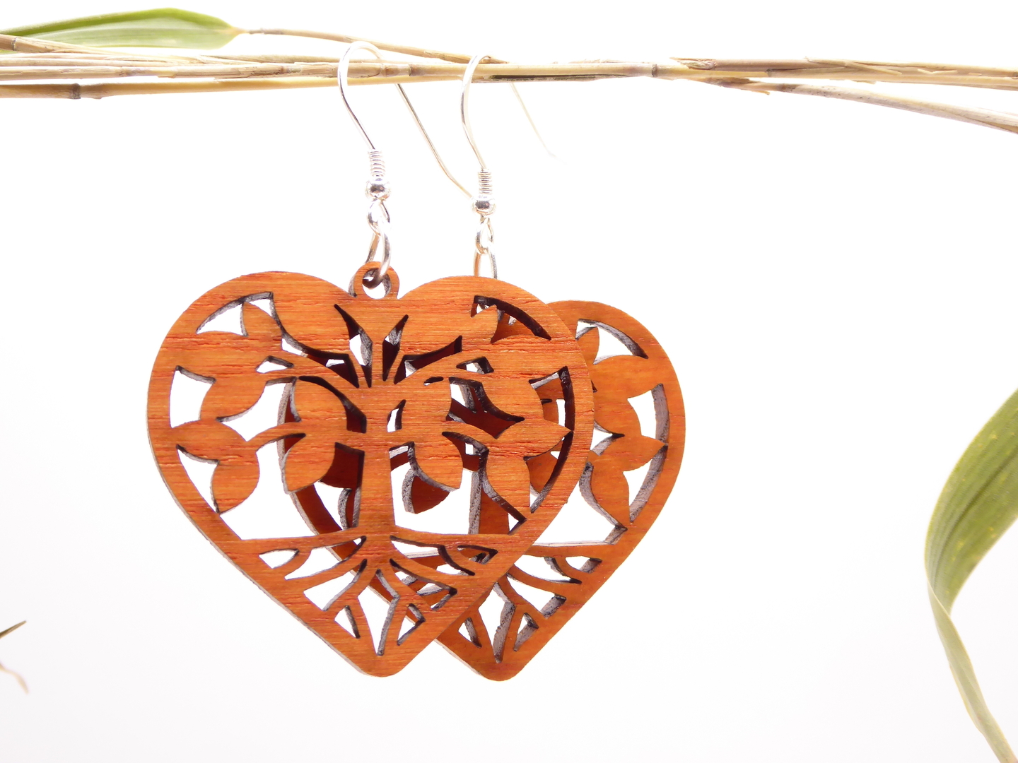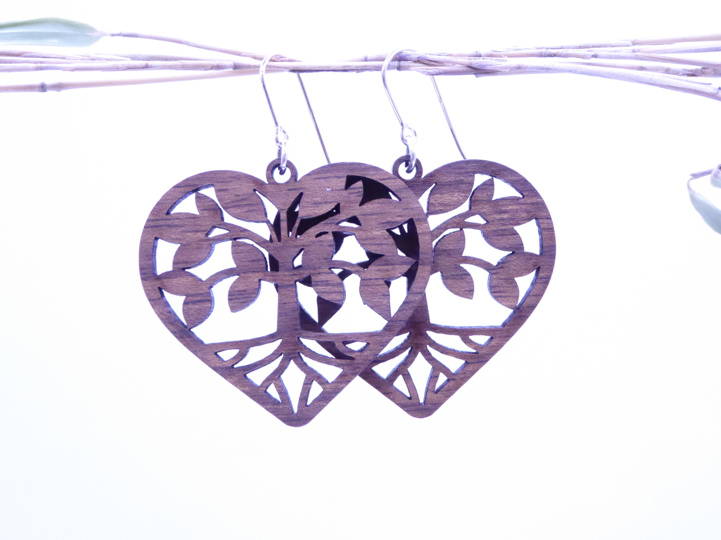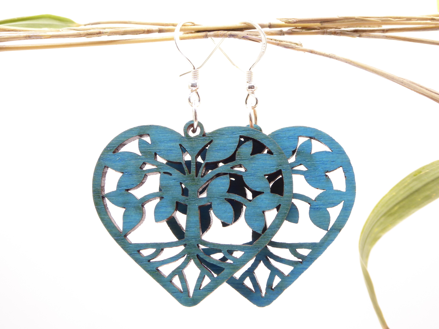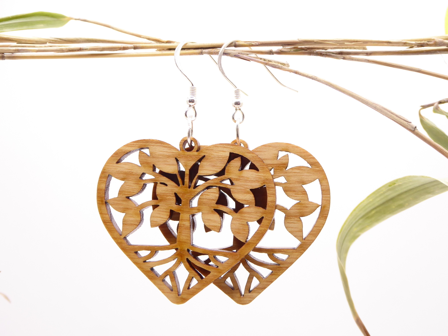 Boucles d’oreilles en bois massif, apprêts en argent 925.