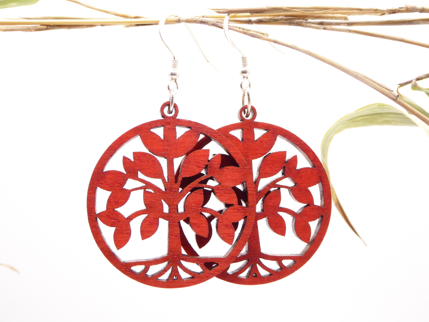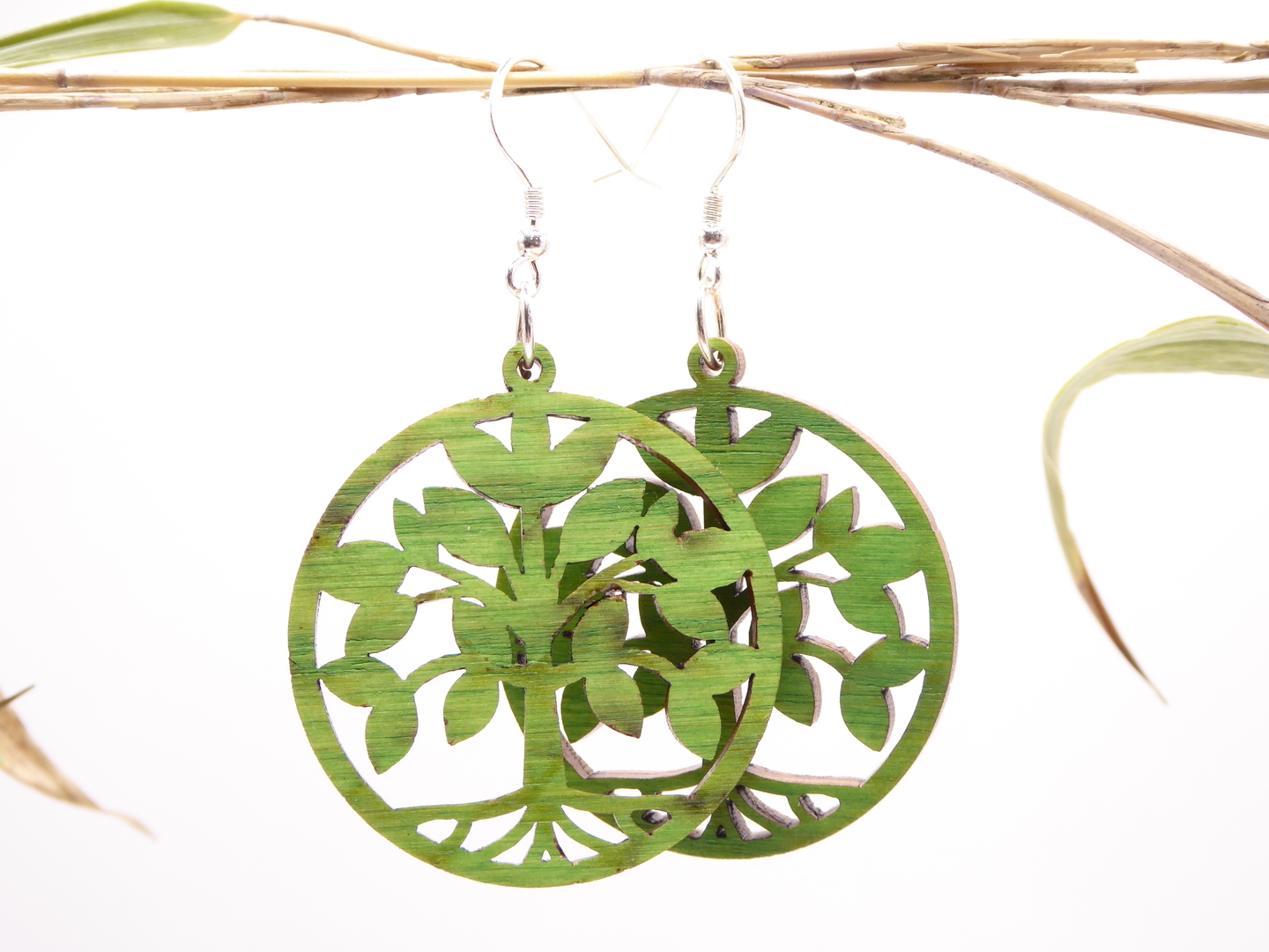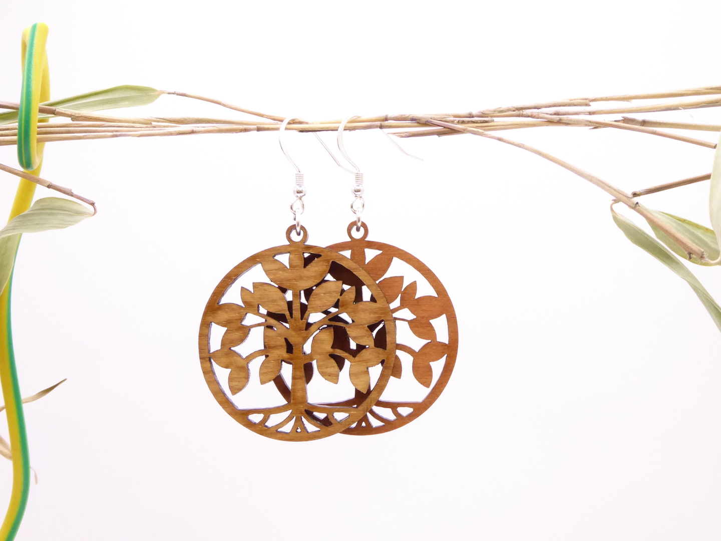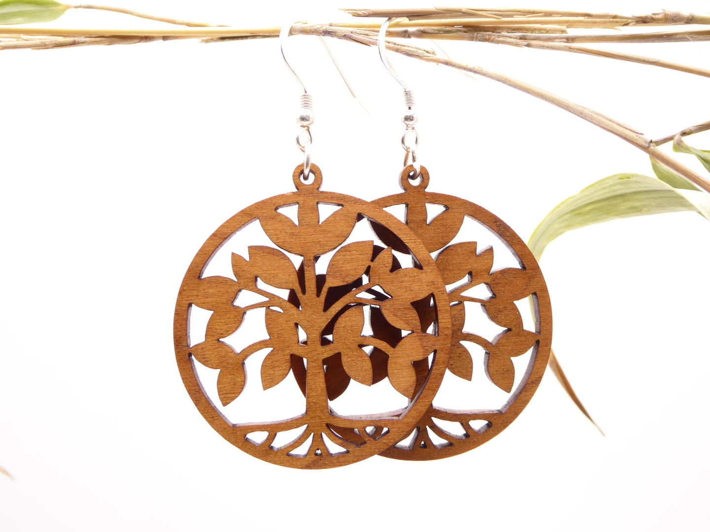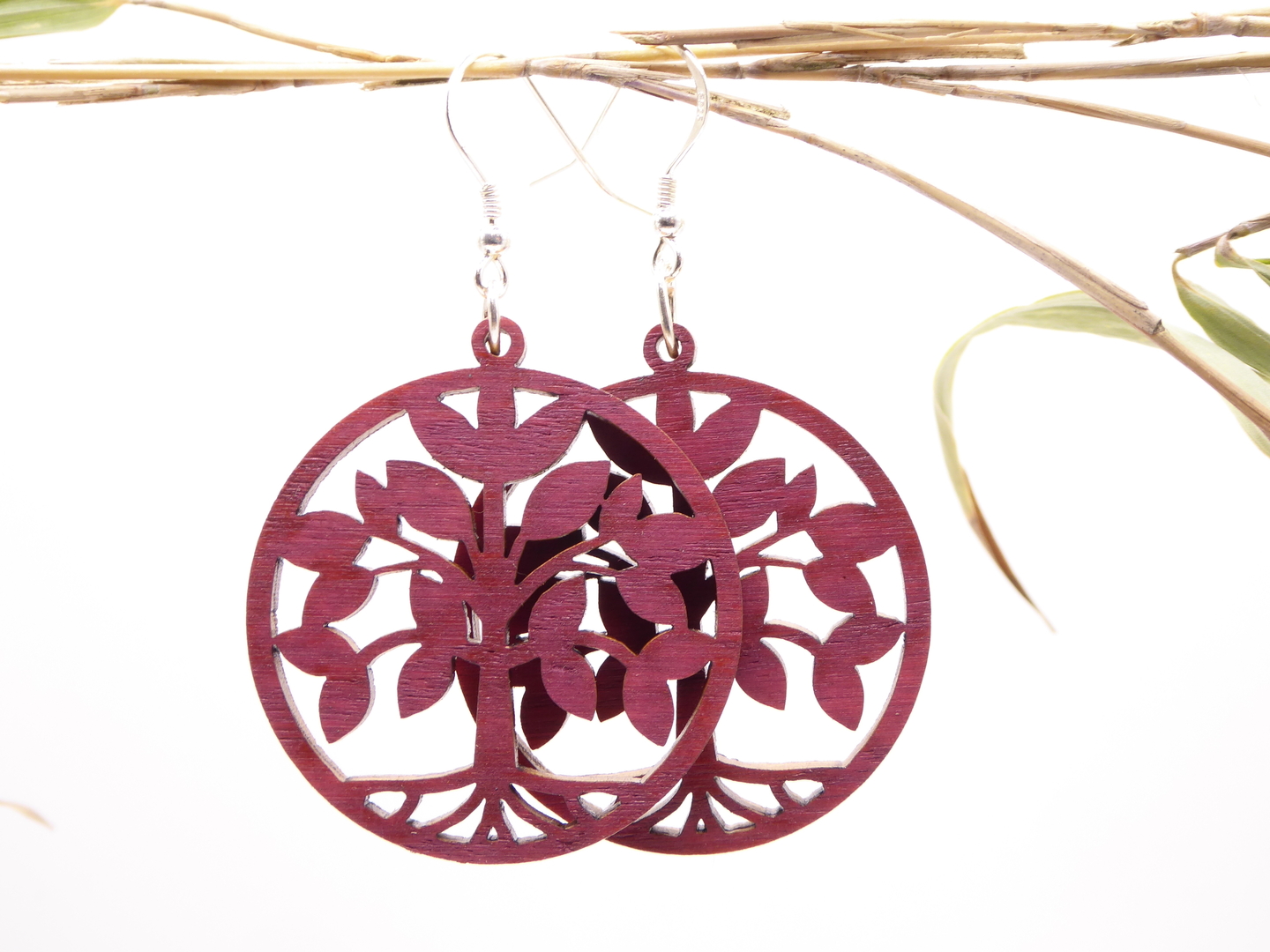 Boucles d’oreilles en bois massif, apprêts en argent 925.