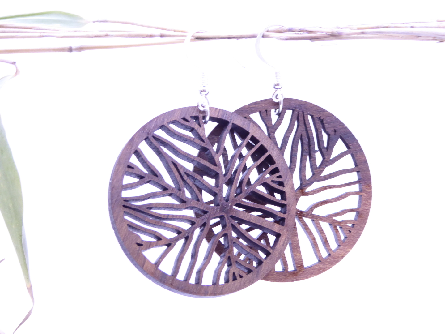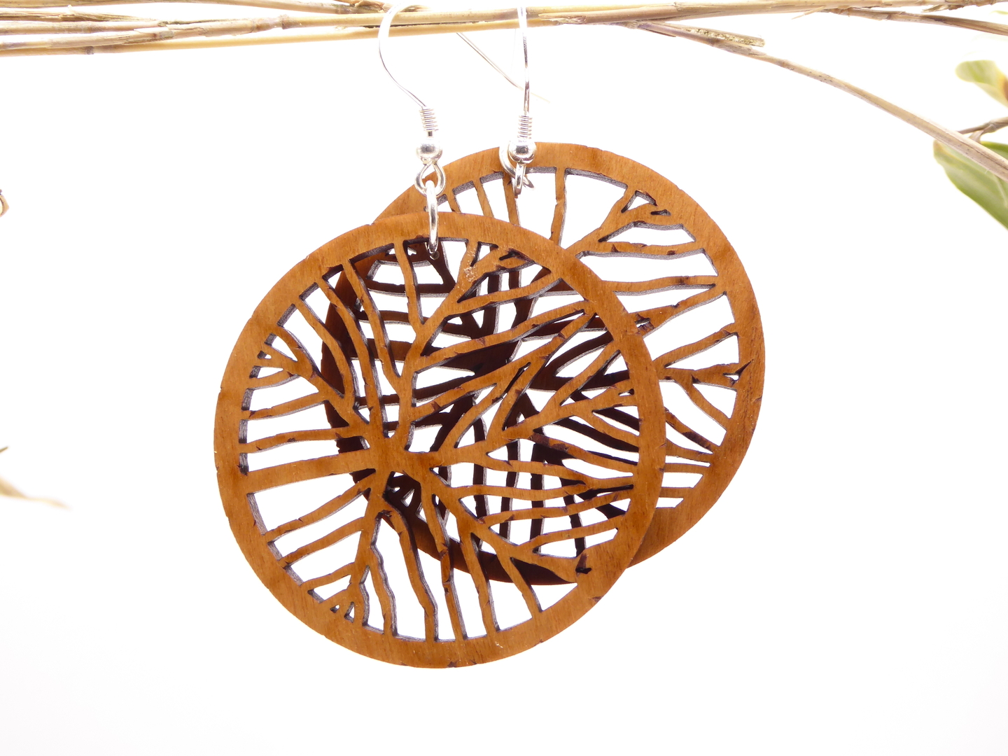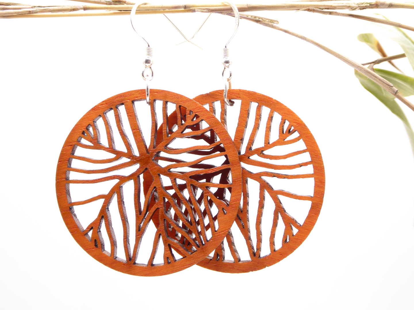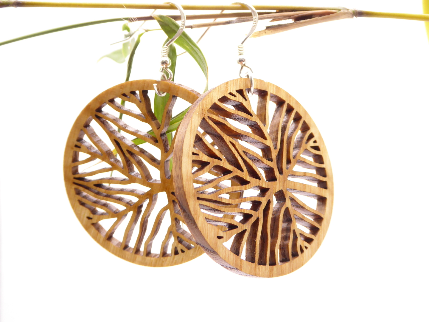 Boucles d’oreilles en bois massif, apprêts en argent 925.