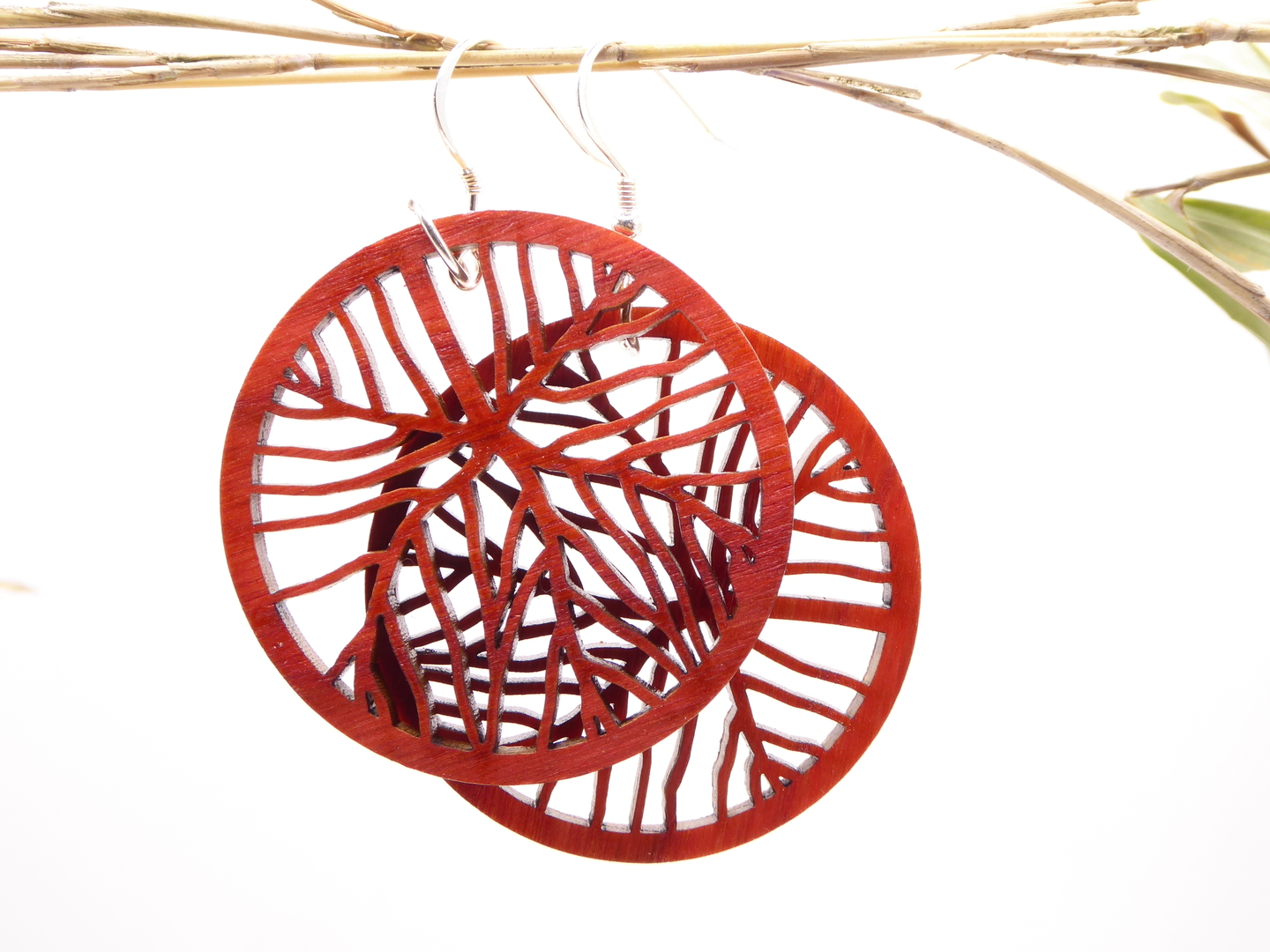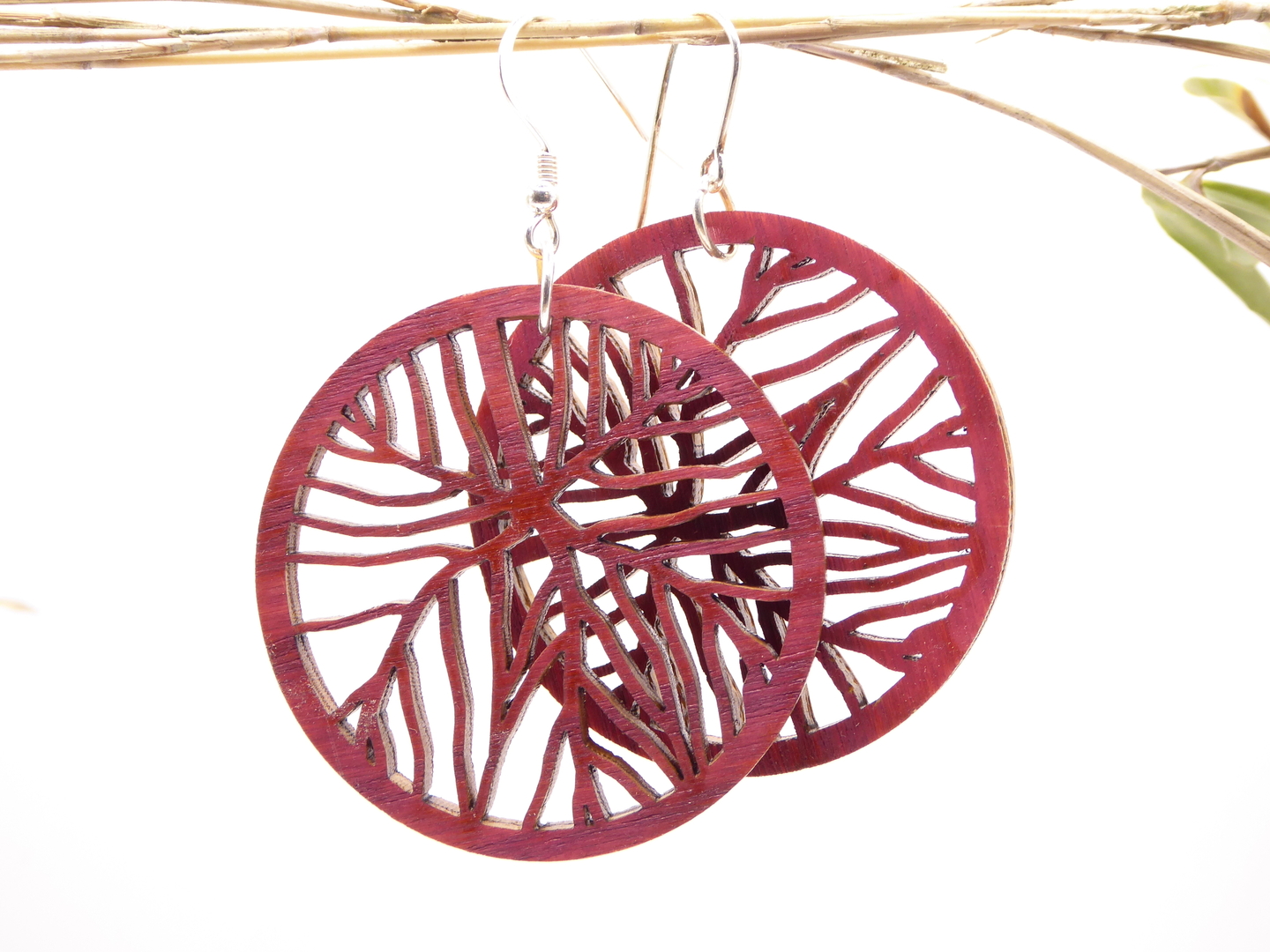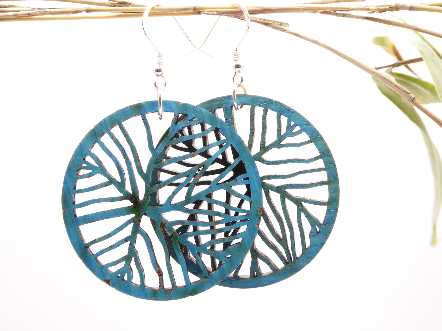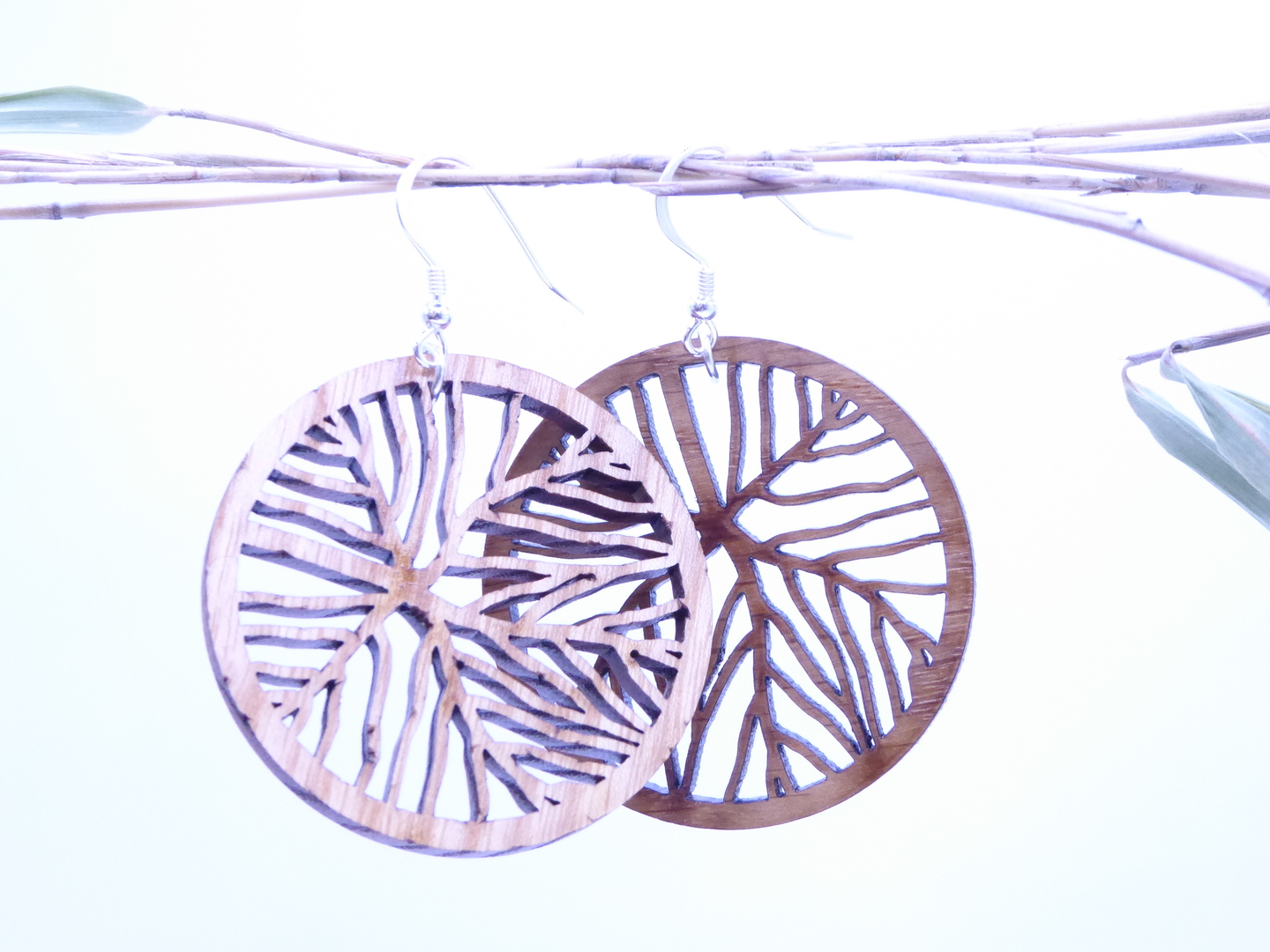 Boucles d’oreilles en bois massif, apprêts en argent 925.