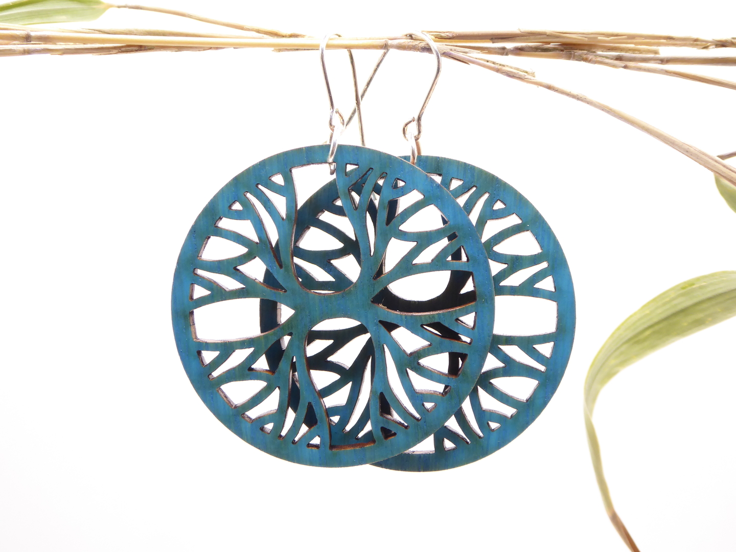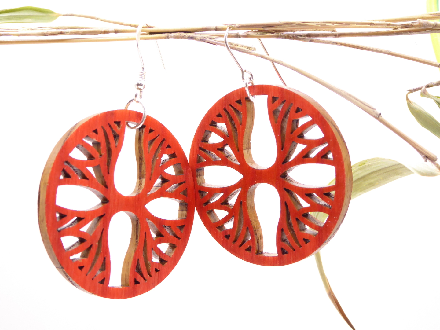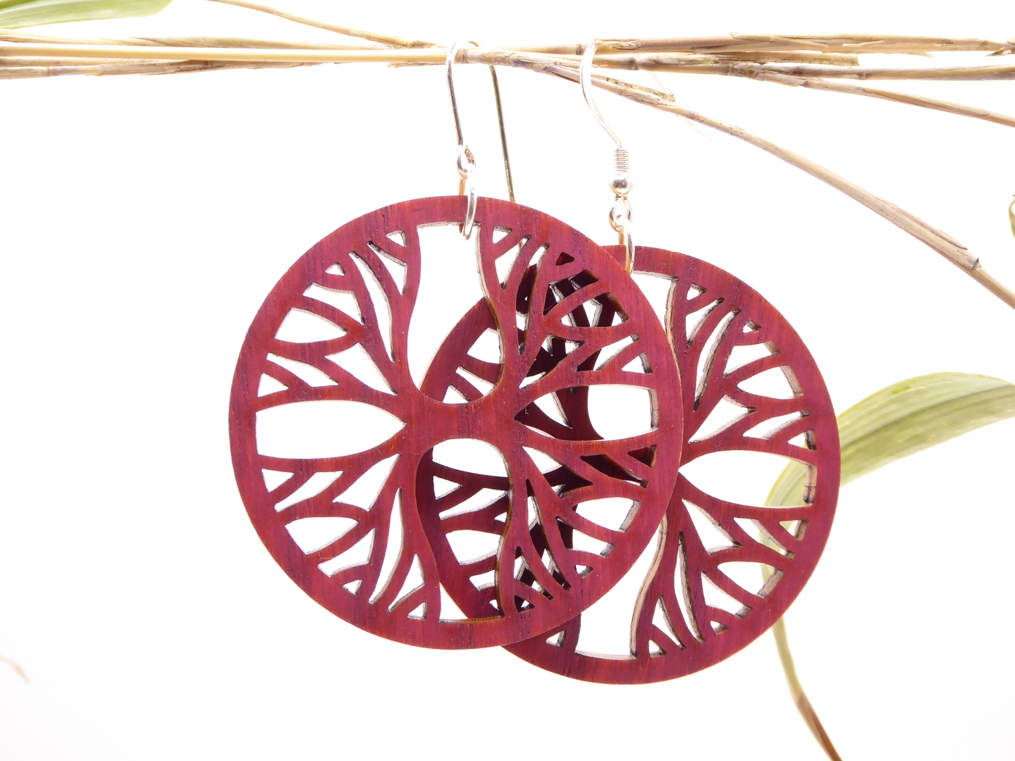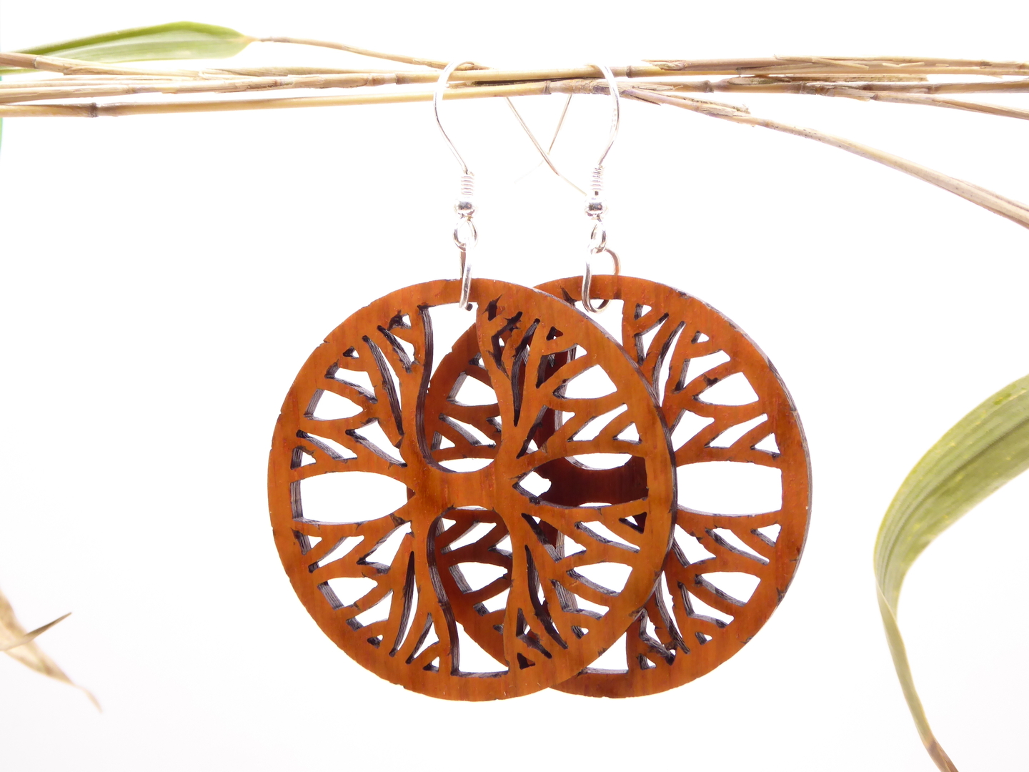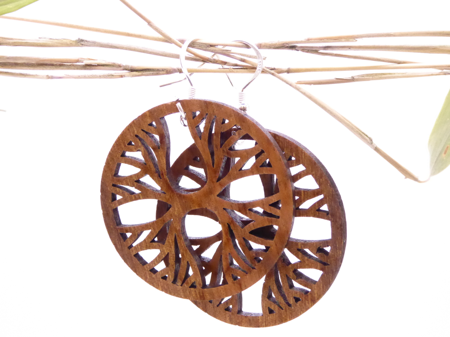 Boucles d’oreilles en bois massif, apprêts en argent 925.