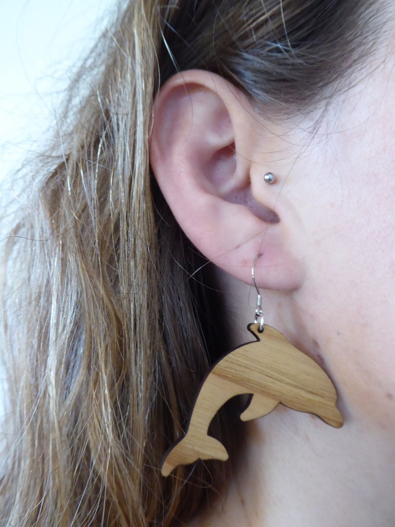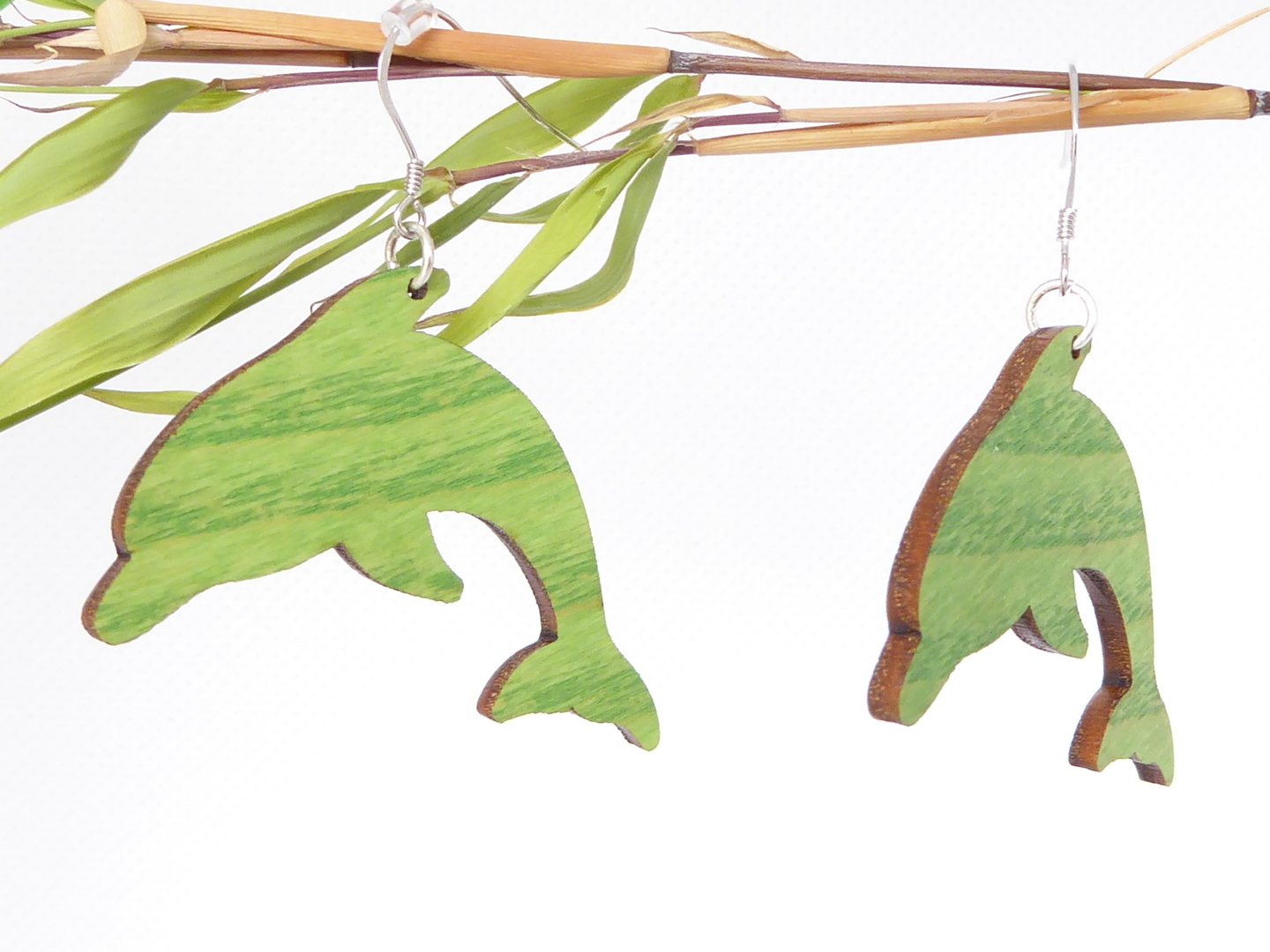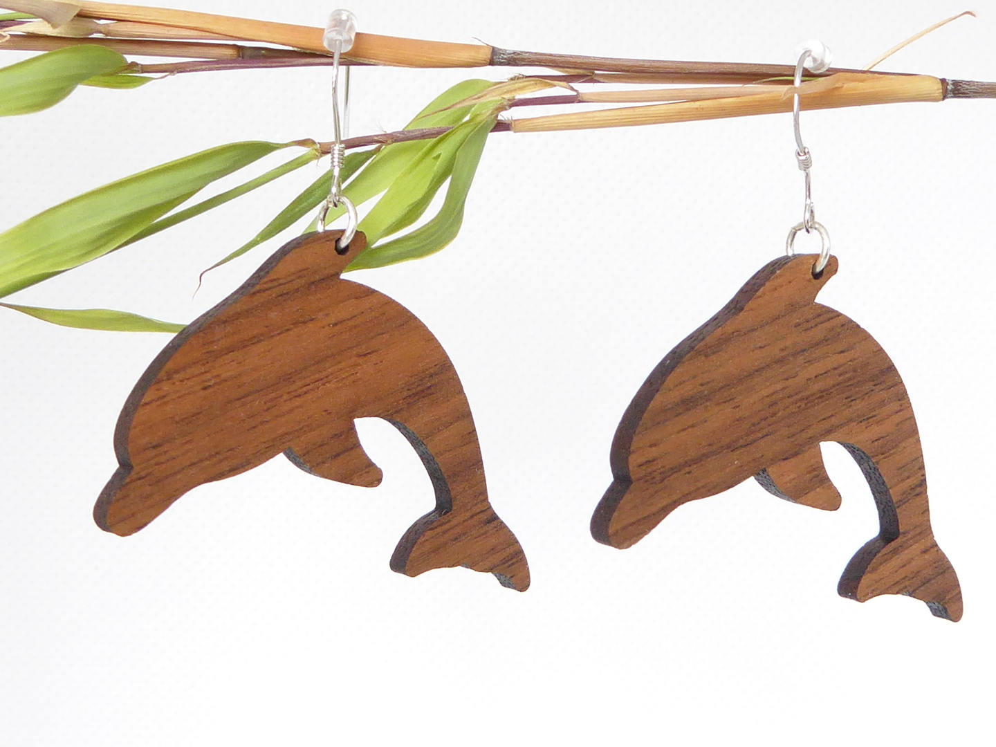 Boucles d’oreilles en bois massif, apprêts en argent 925.