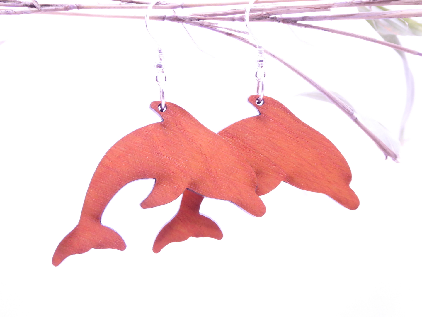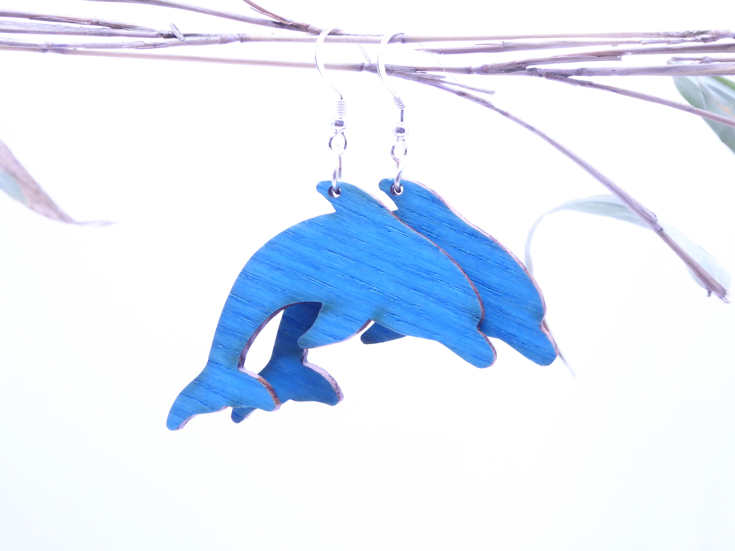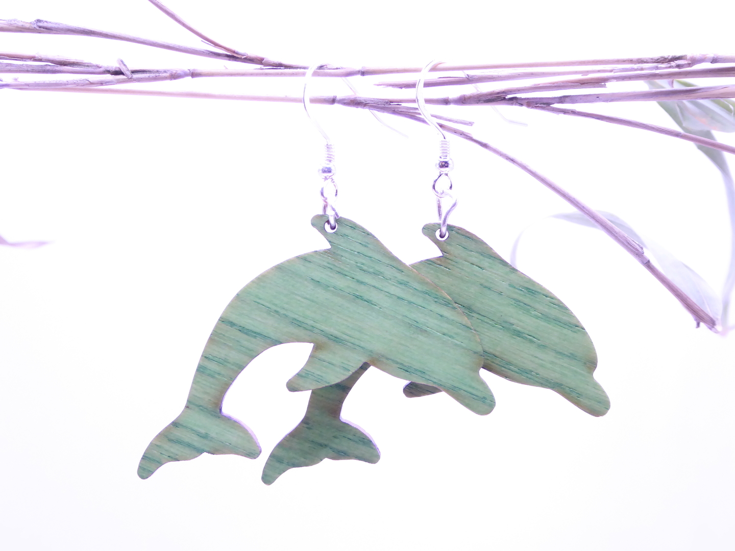 Boucles d’oreilles en bois massif, apprêts en argent 925.