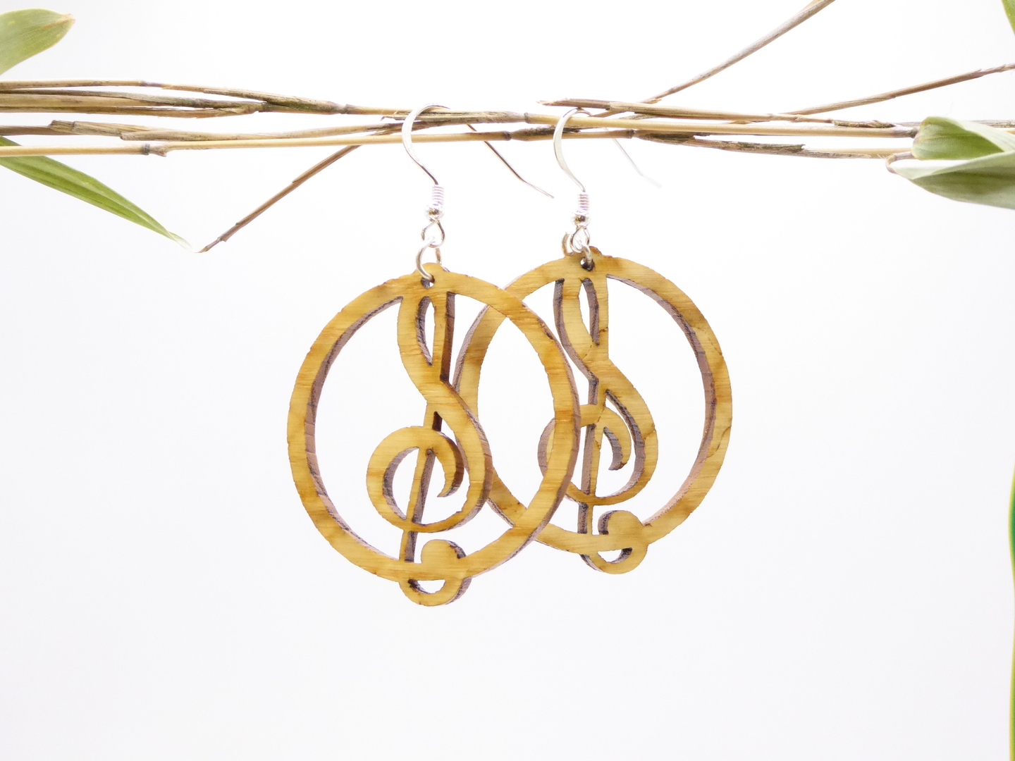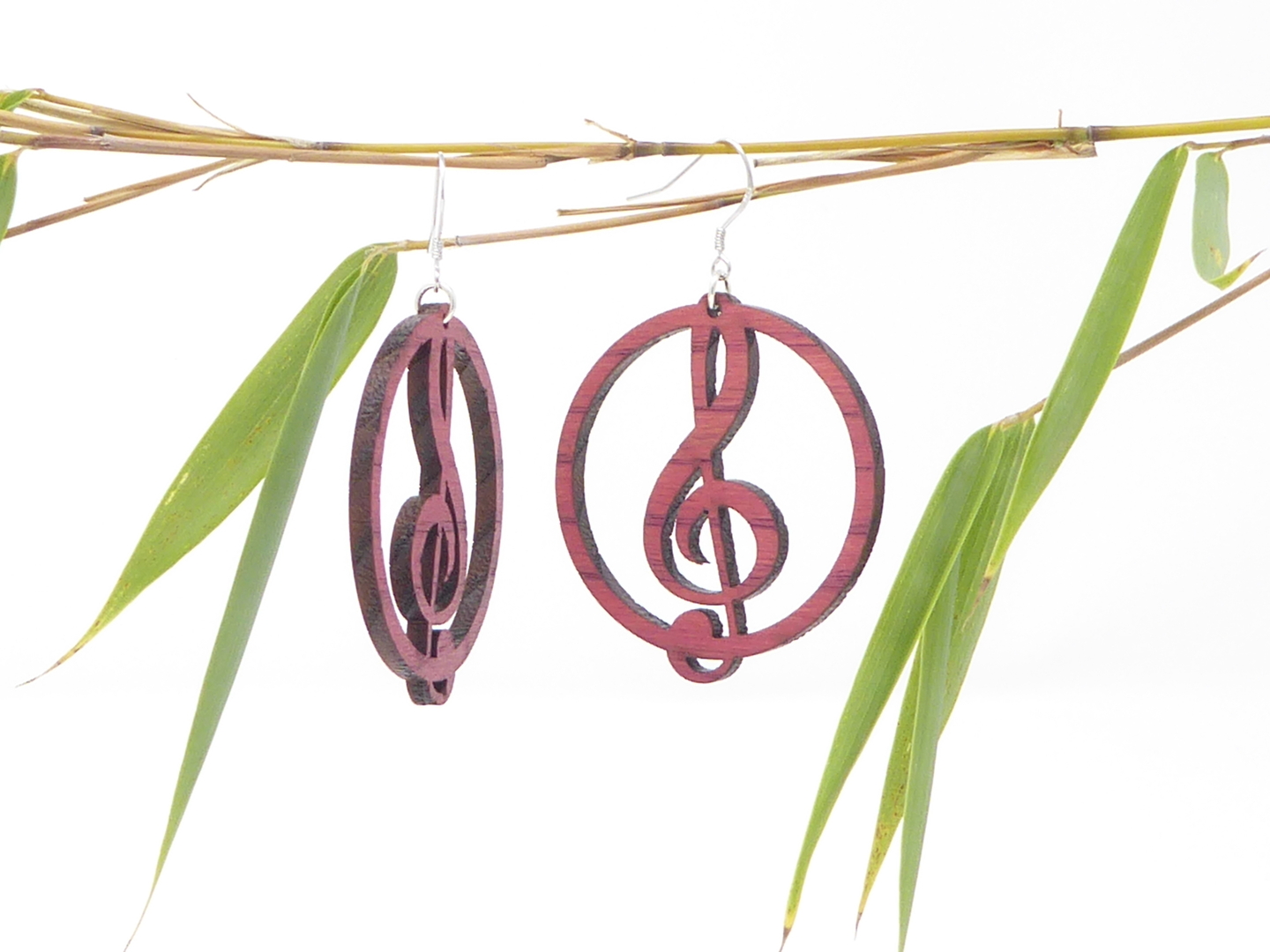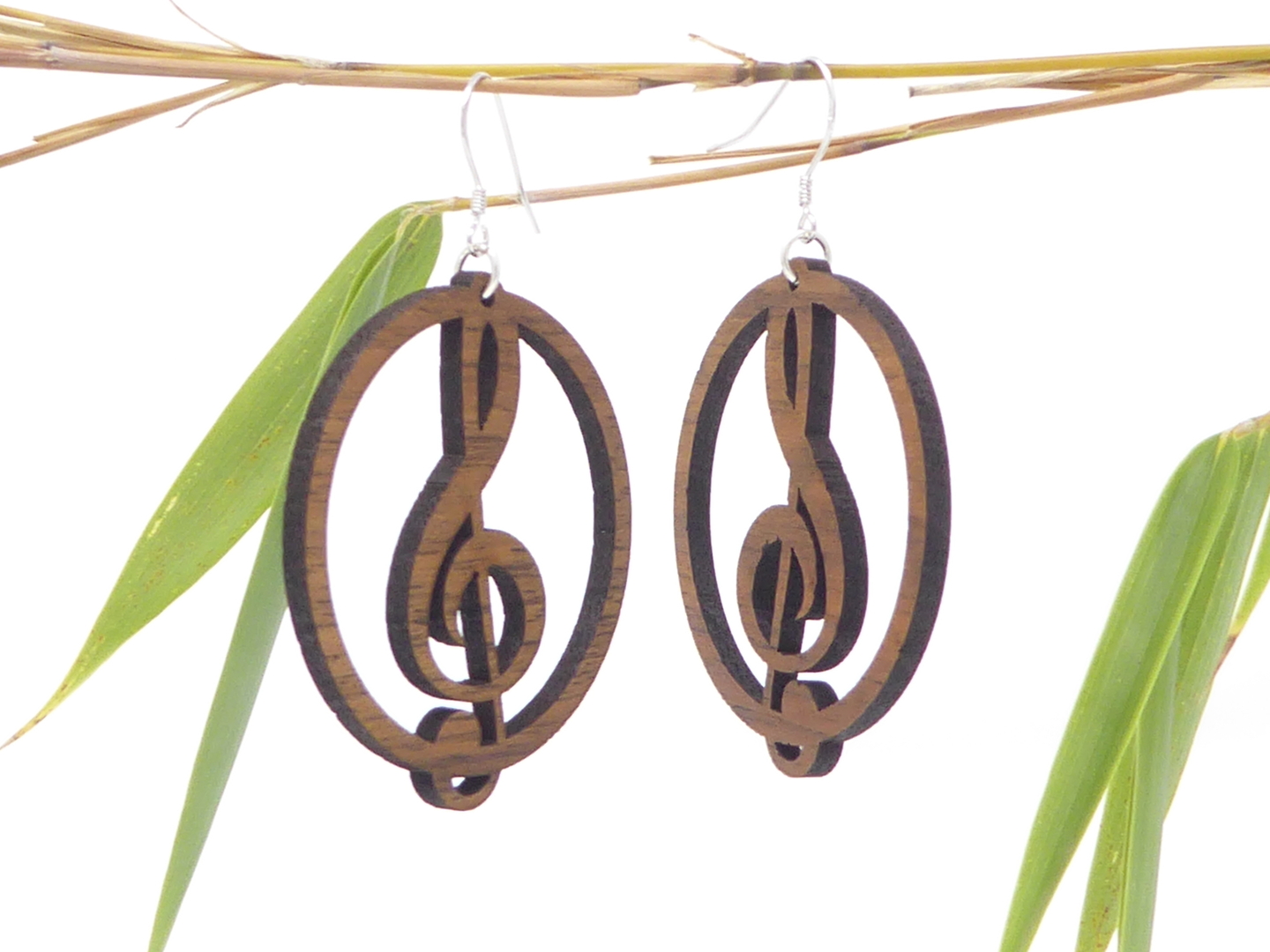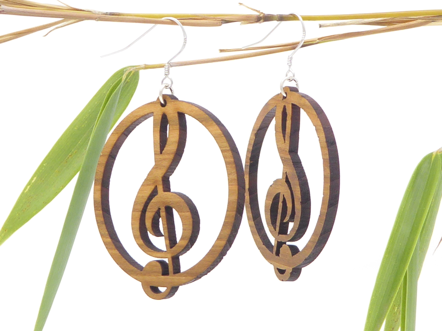 Boucles d’oreilles en bois massif, apprêts en argent 925.