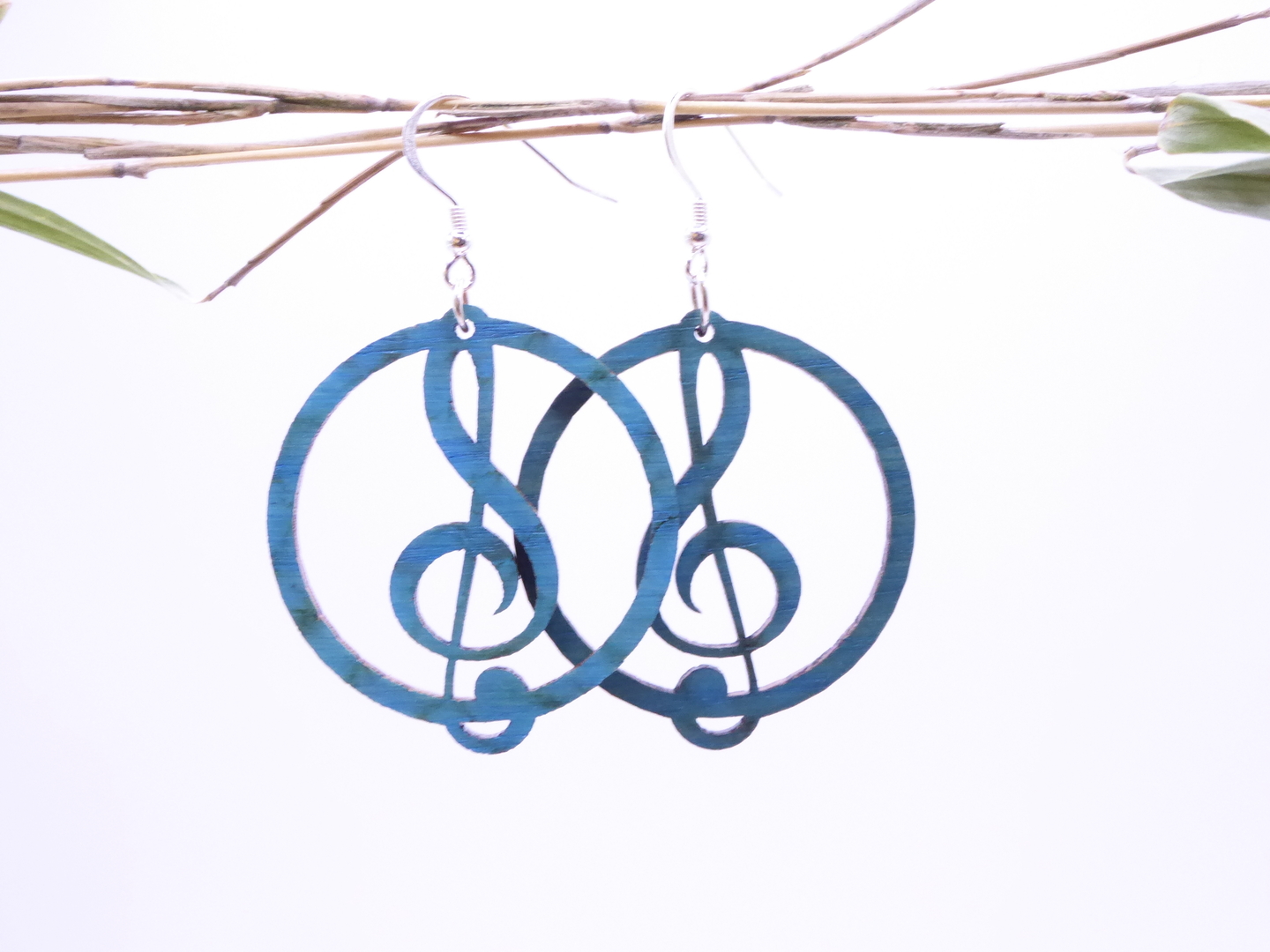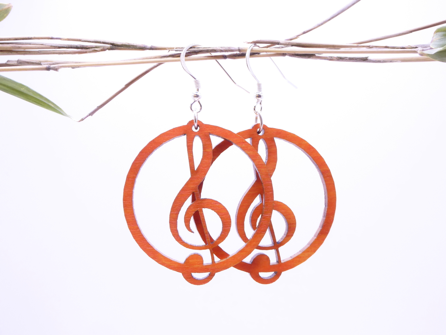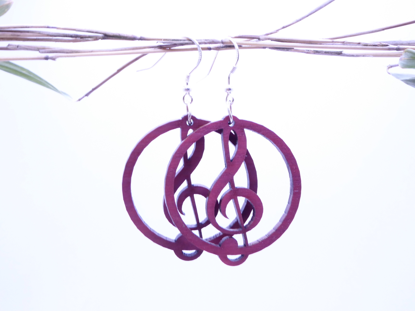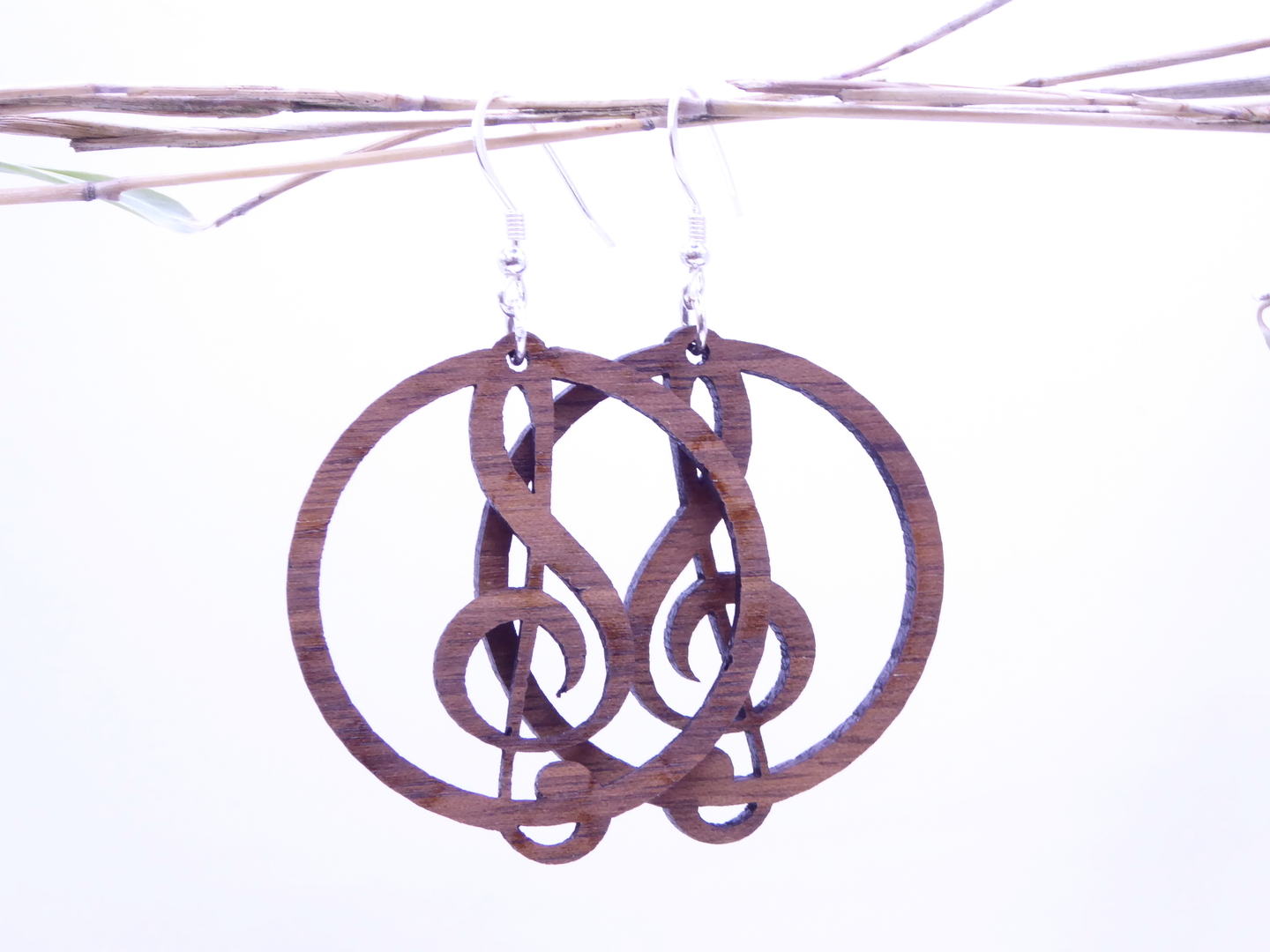 Boucles d’oreilles en bois massif, apprêts en argent 925.