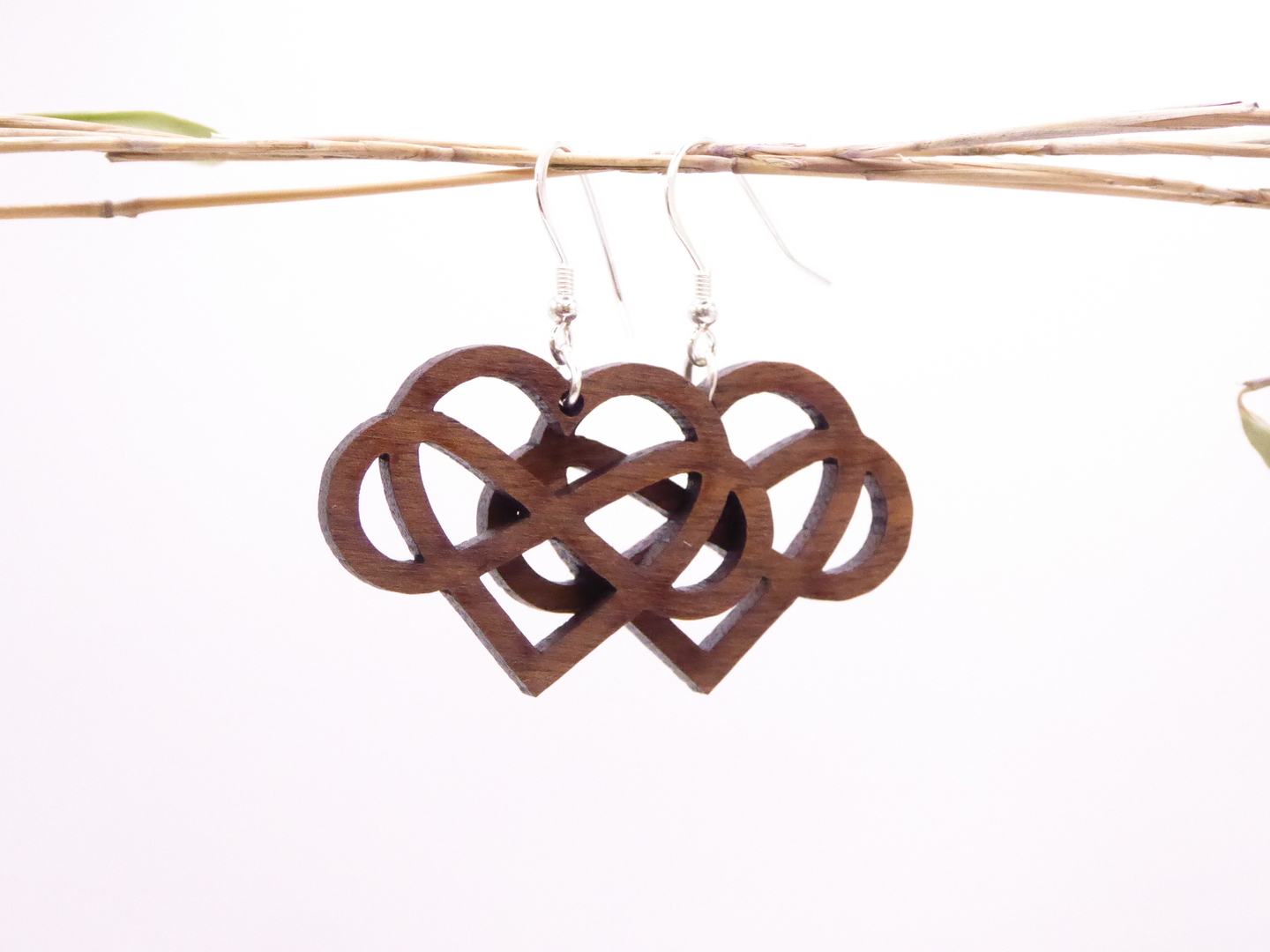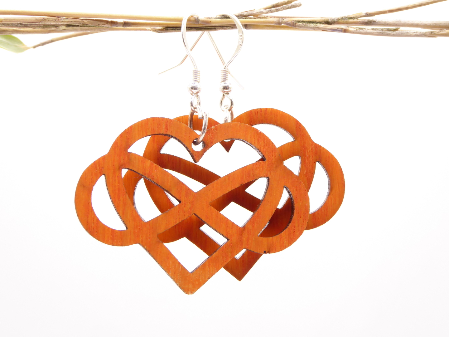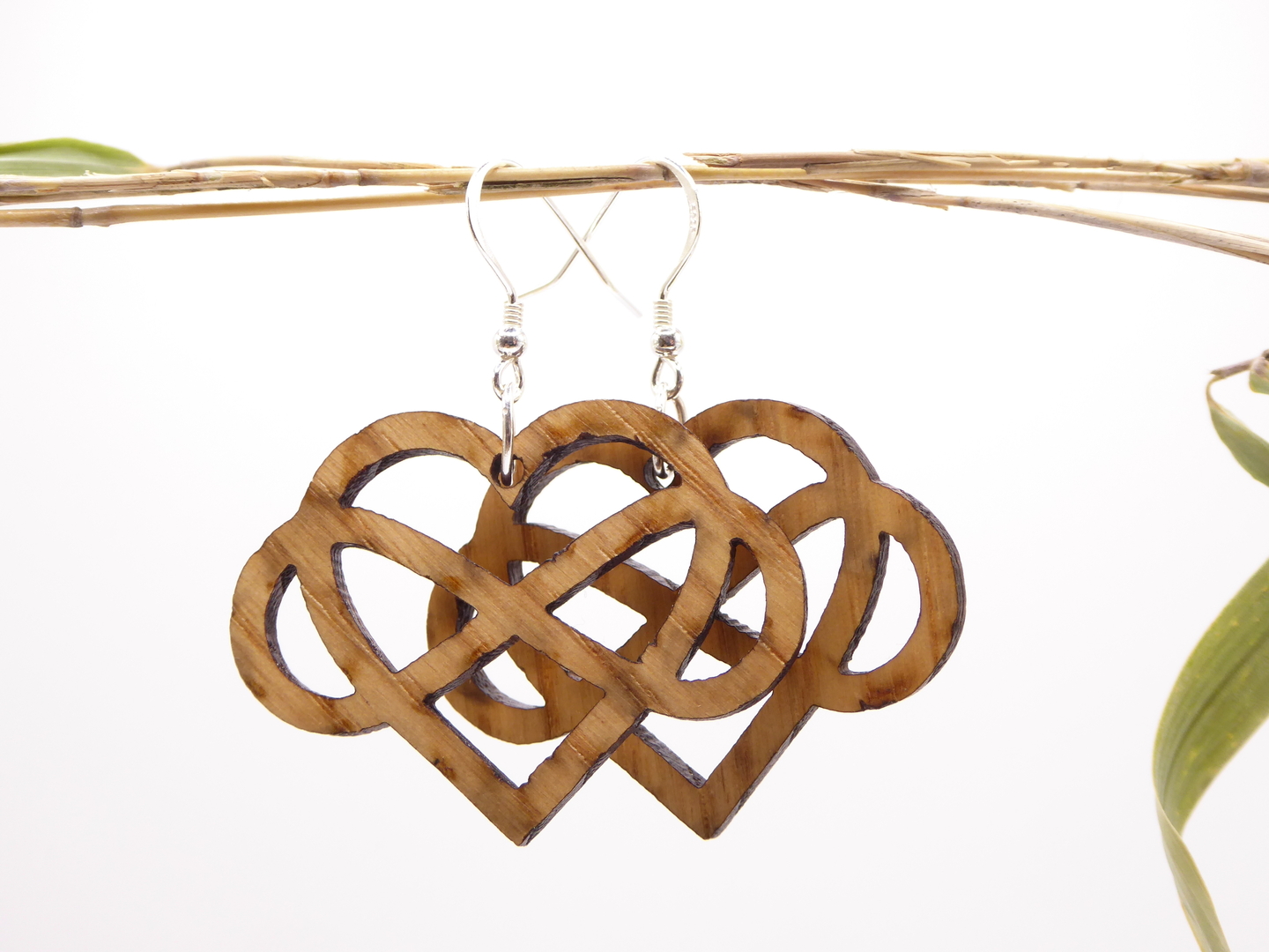 Boucles d’oreilles en bois massif, apprêts en argent 925.