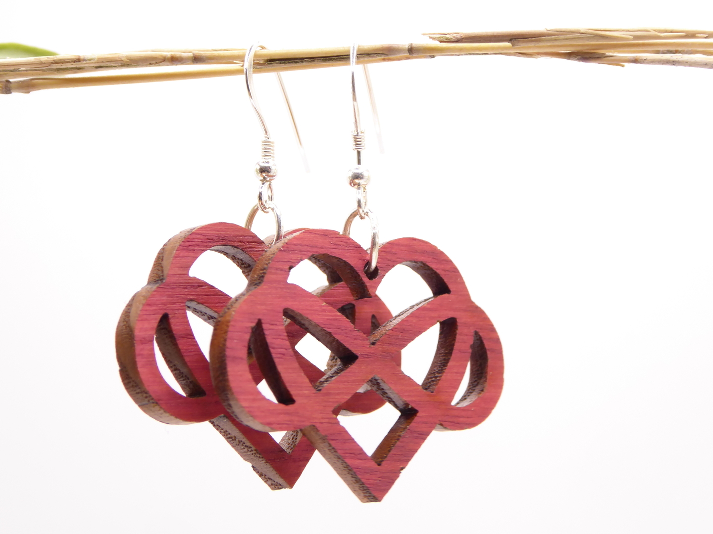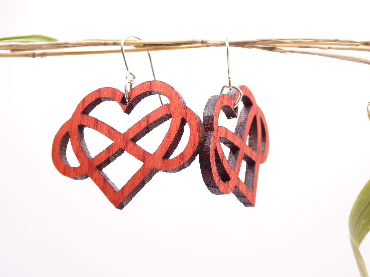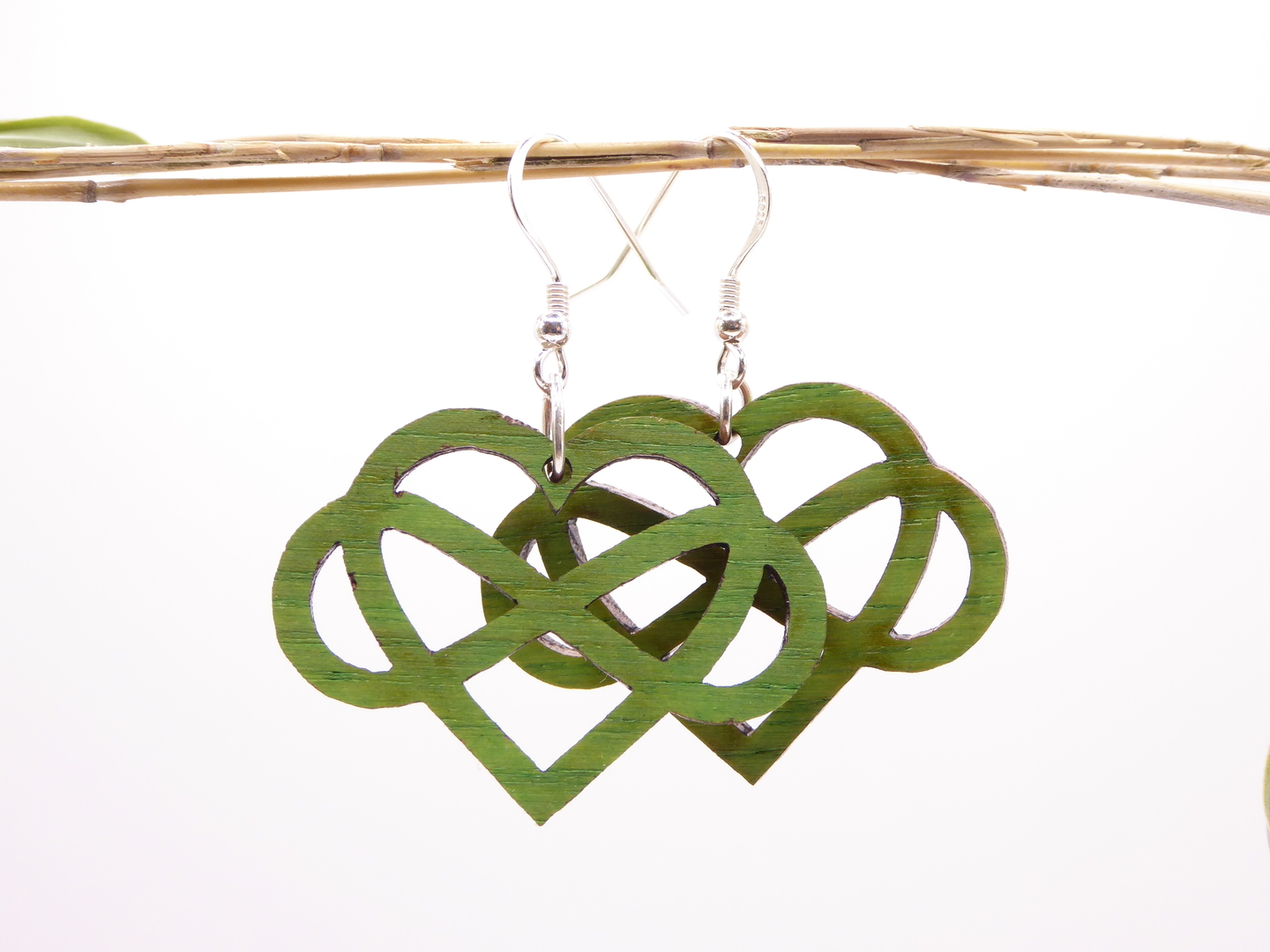 Boucles d’oreilles en bois massif, apprêts en argent 925.