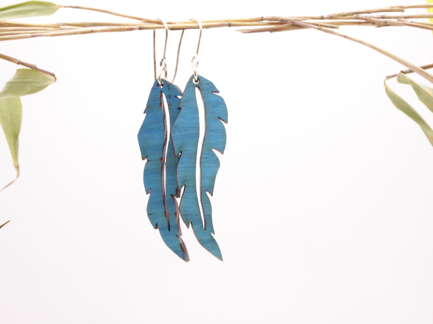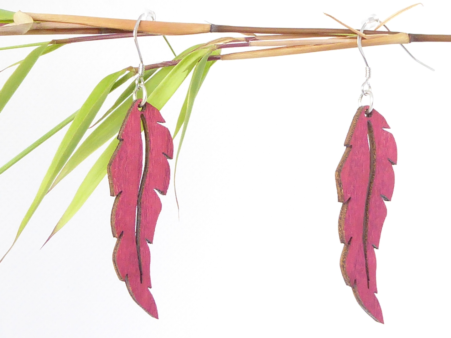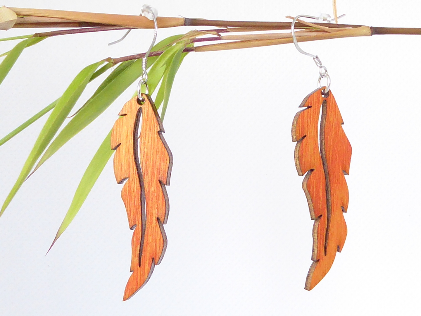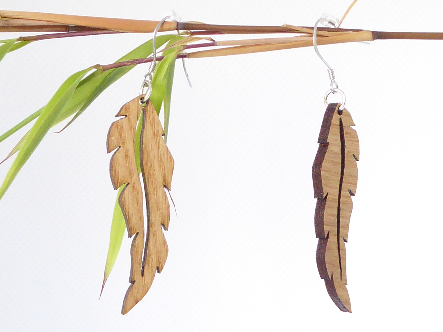 Boucles d’oreilles en bois massif, apprêts en argent 925.
