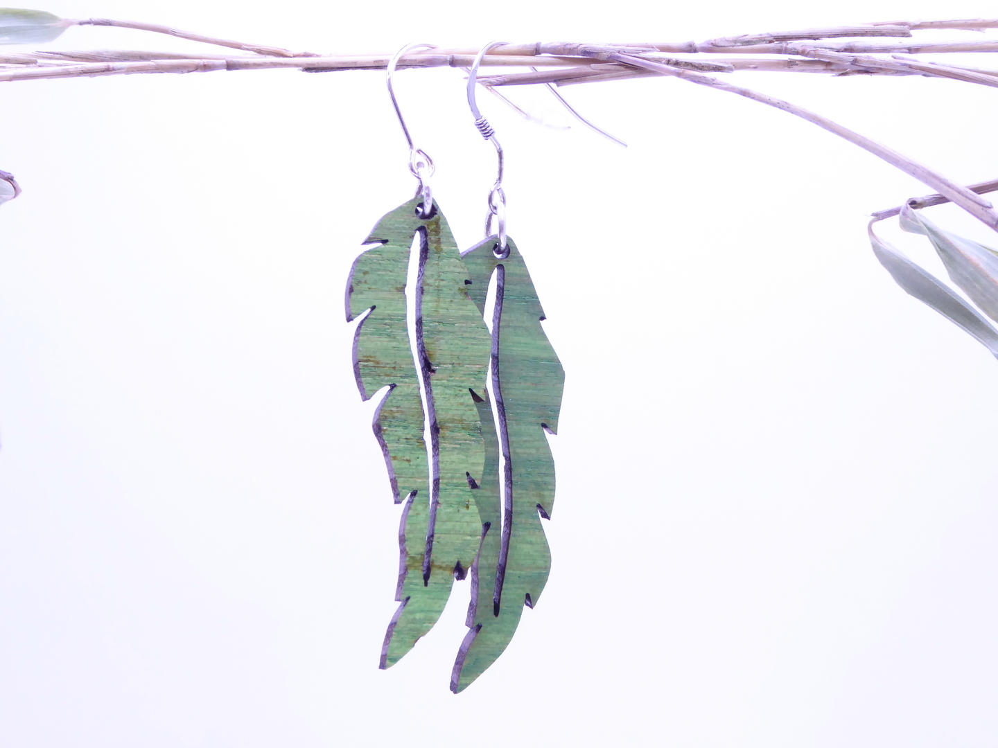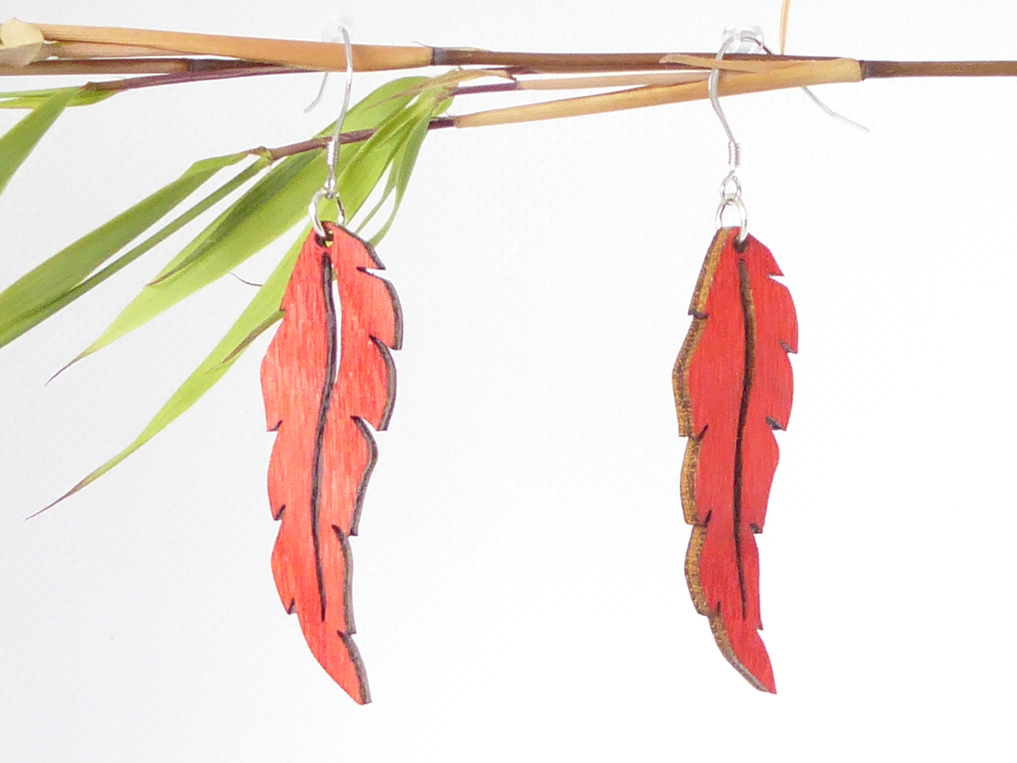 Bois;Argent;fantaisie;plume;Dimensions du pendant : Hauteur 44mm/ Largeur : 14mm