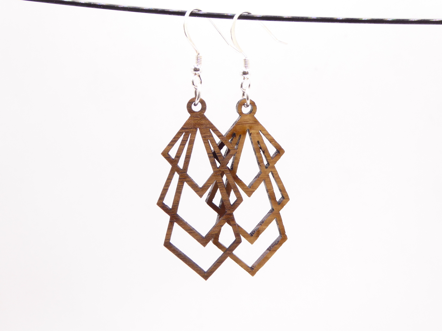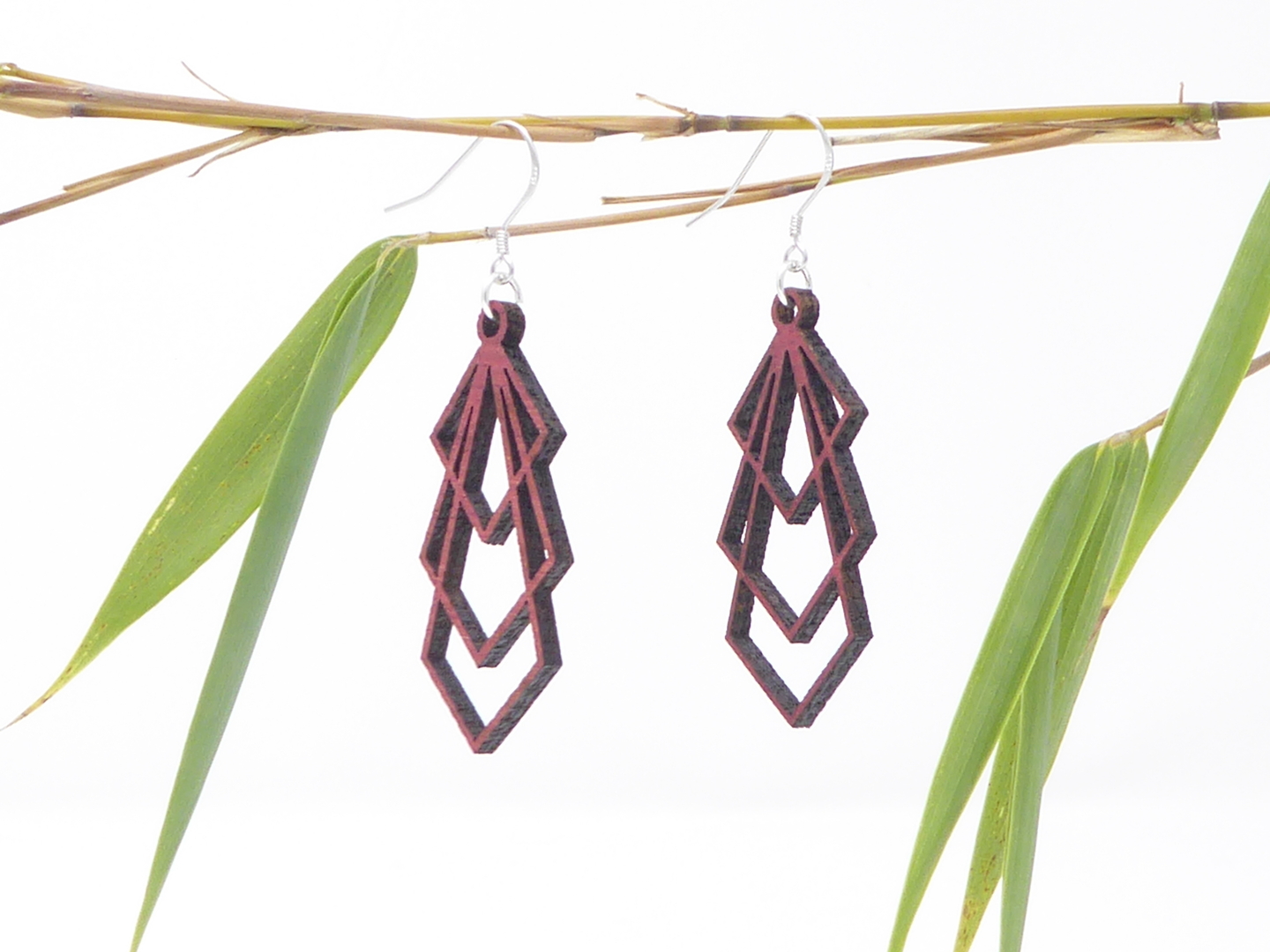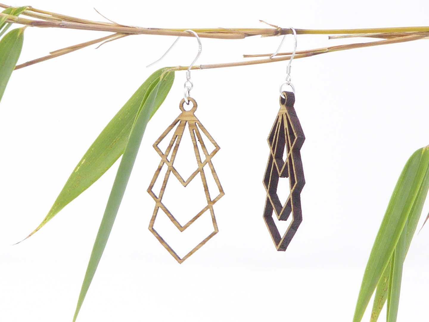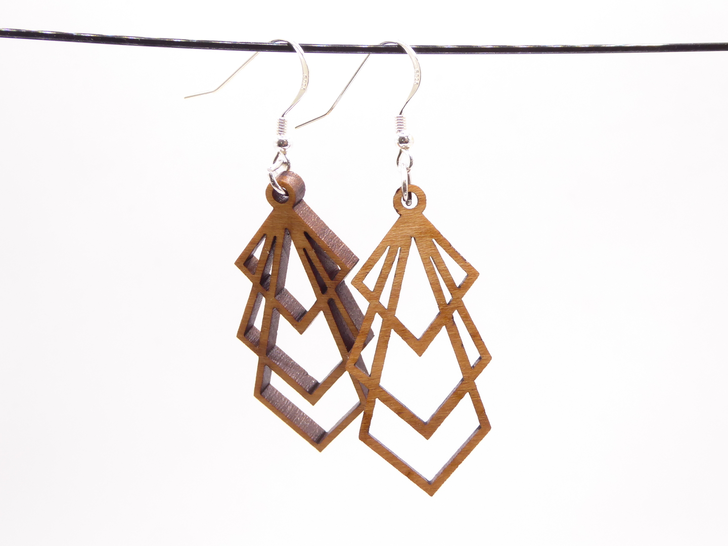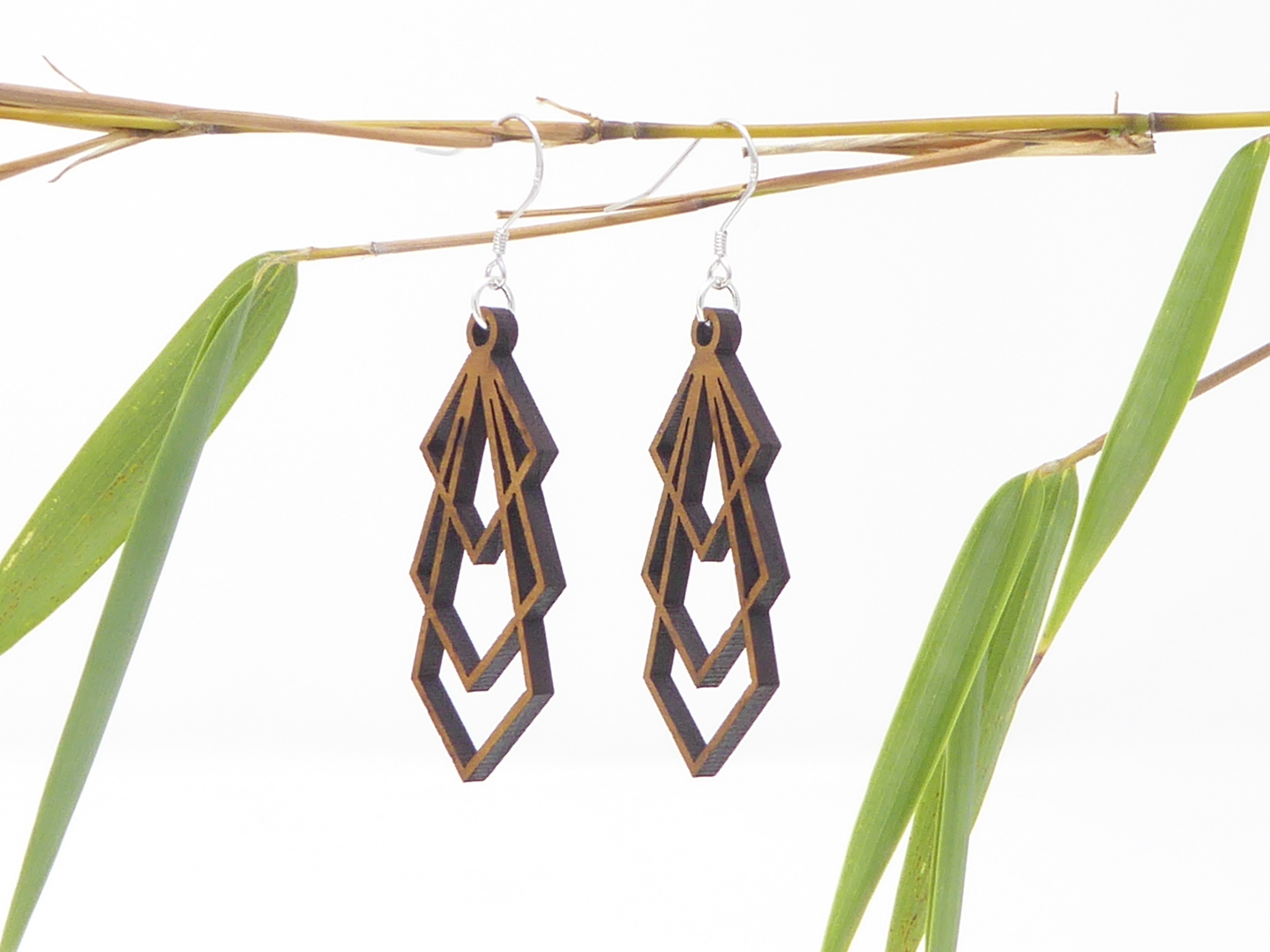 Boucles d’oreilles en bois massif, apprêts en argent 925.