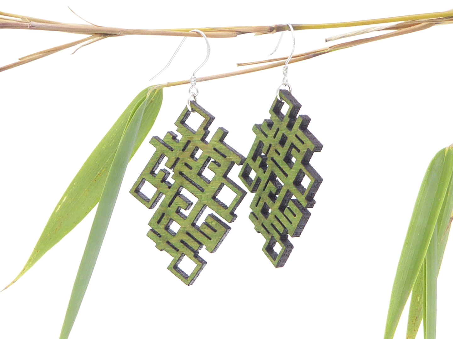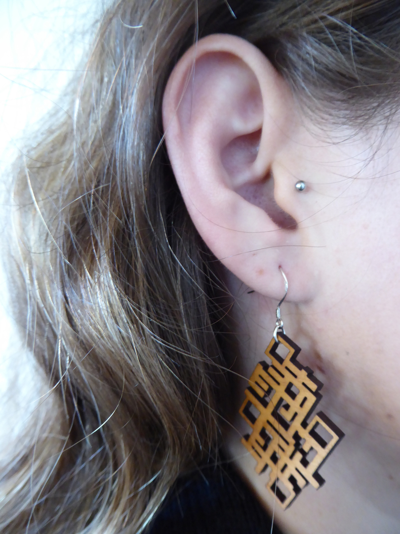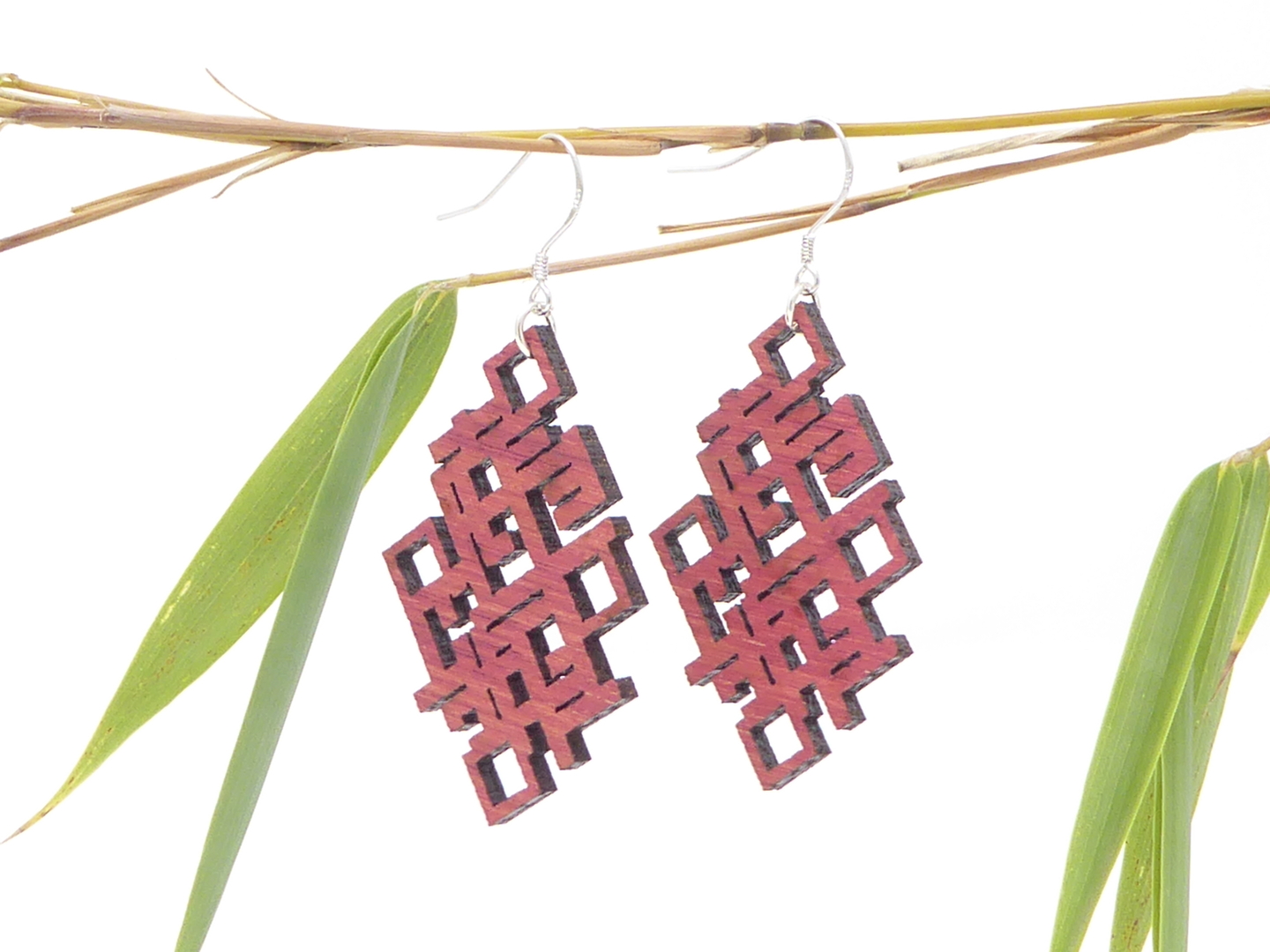 Boucles d’oreilles en bois massif, apprêts en argent 925.