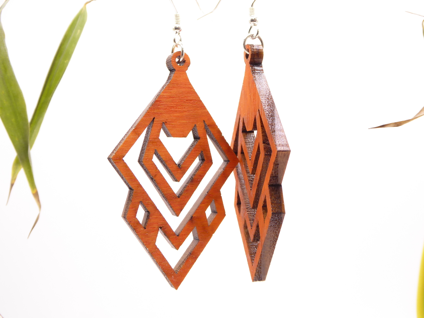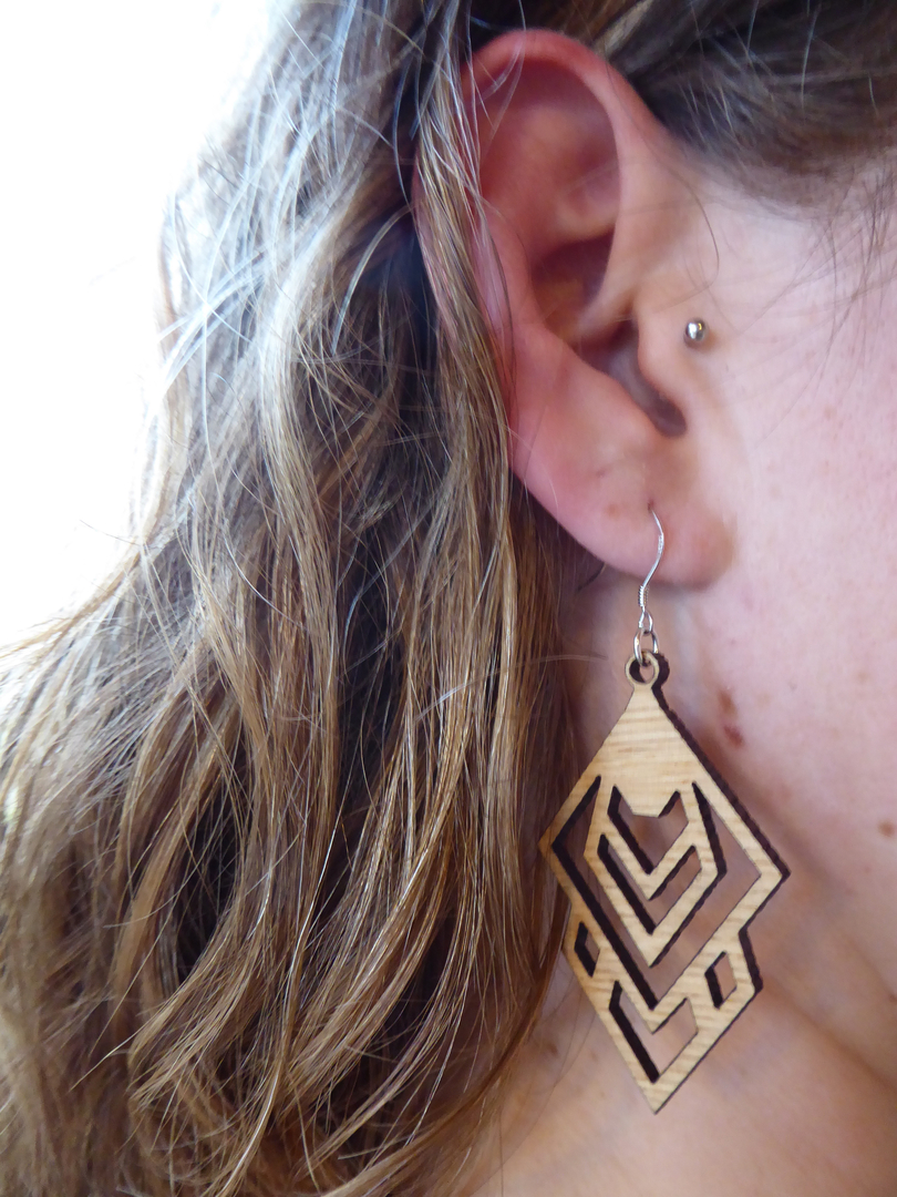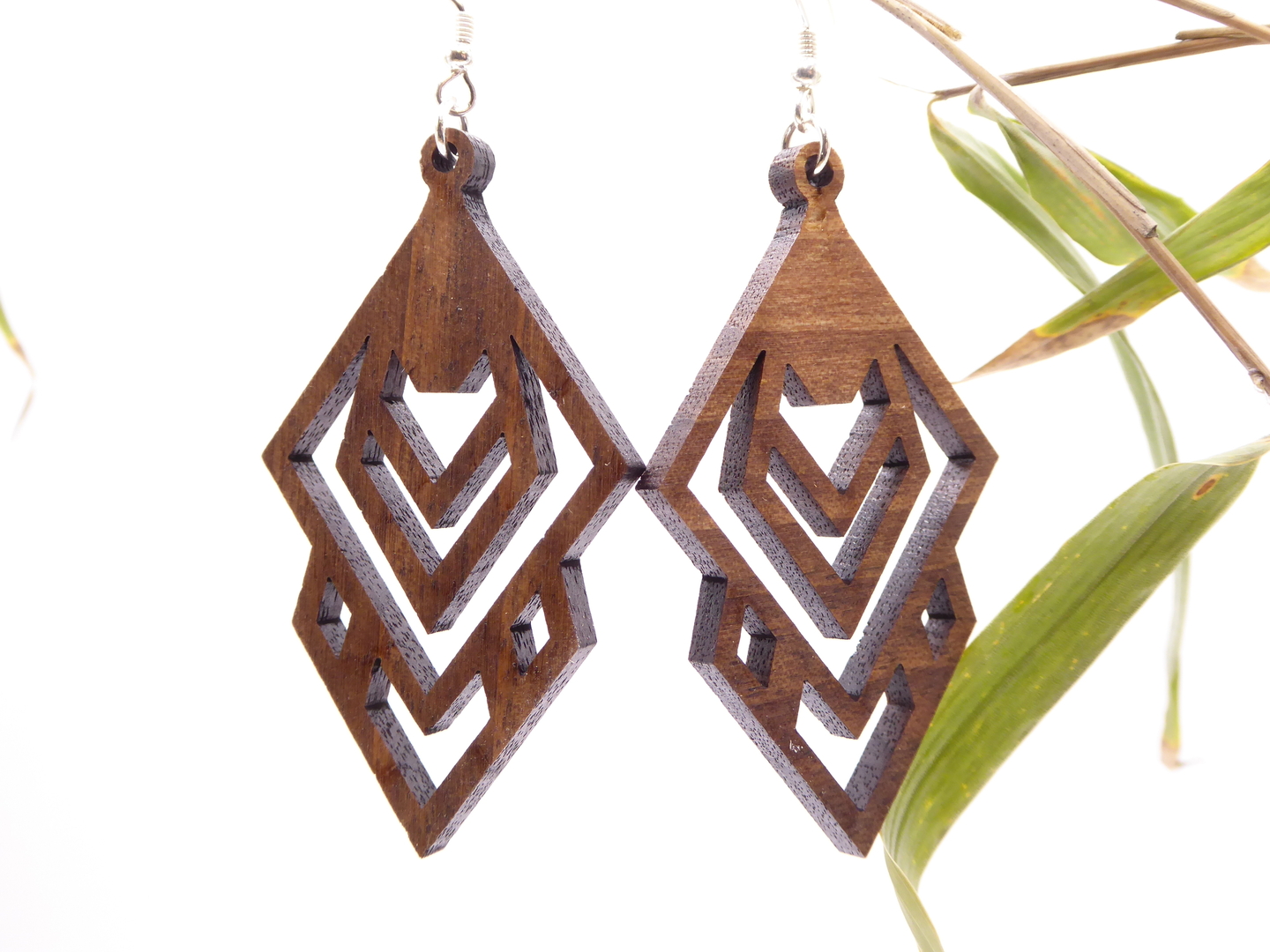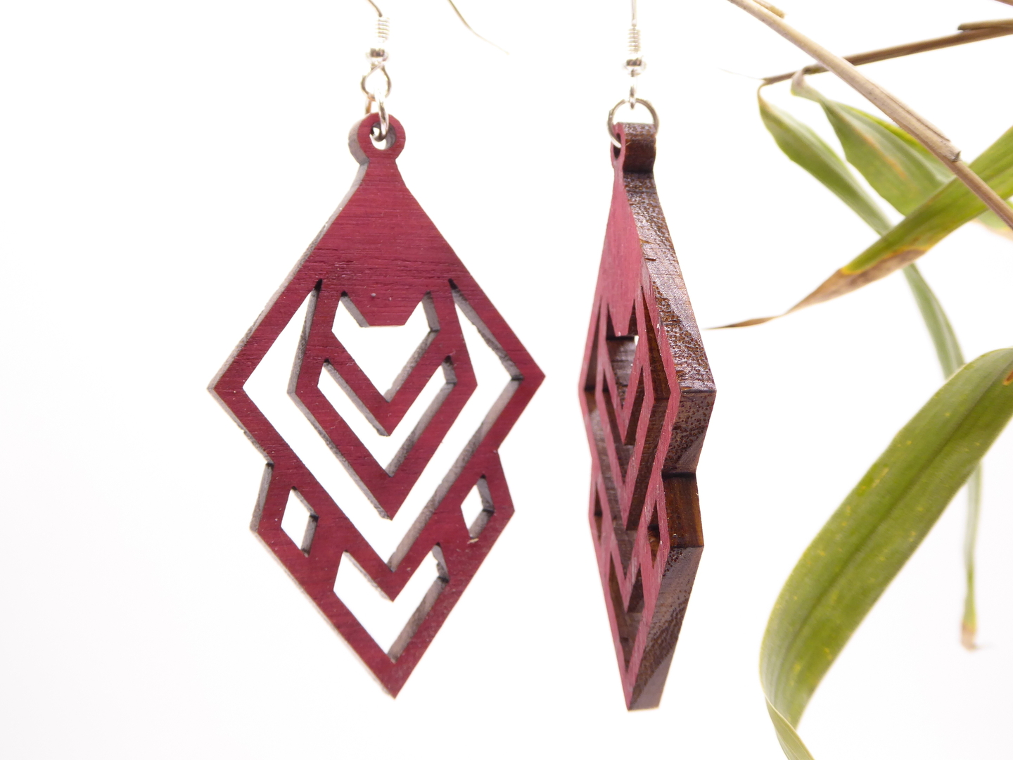 Boucles d’oreilles en bois massif, apprêts en argent 925.