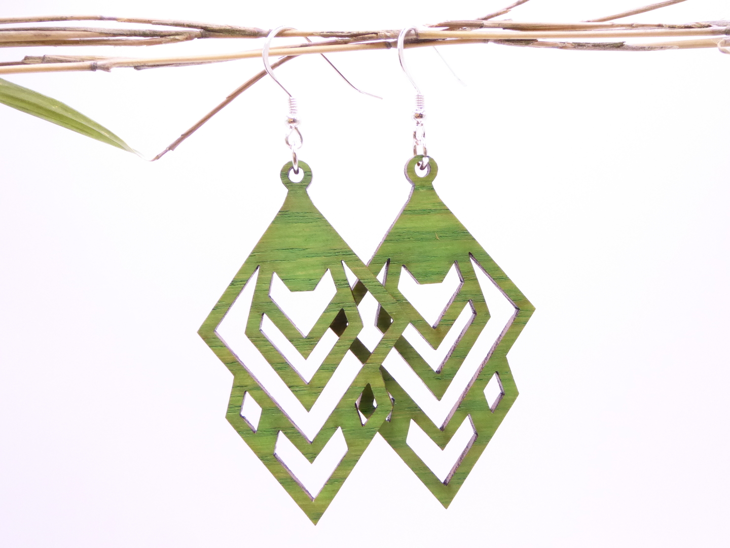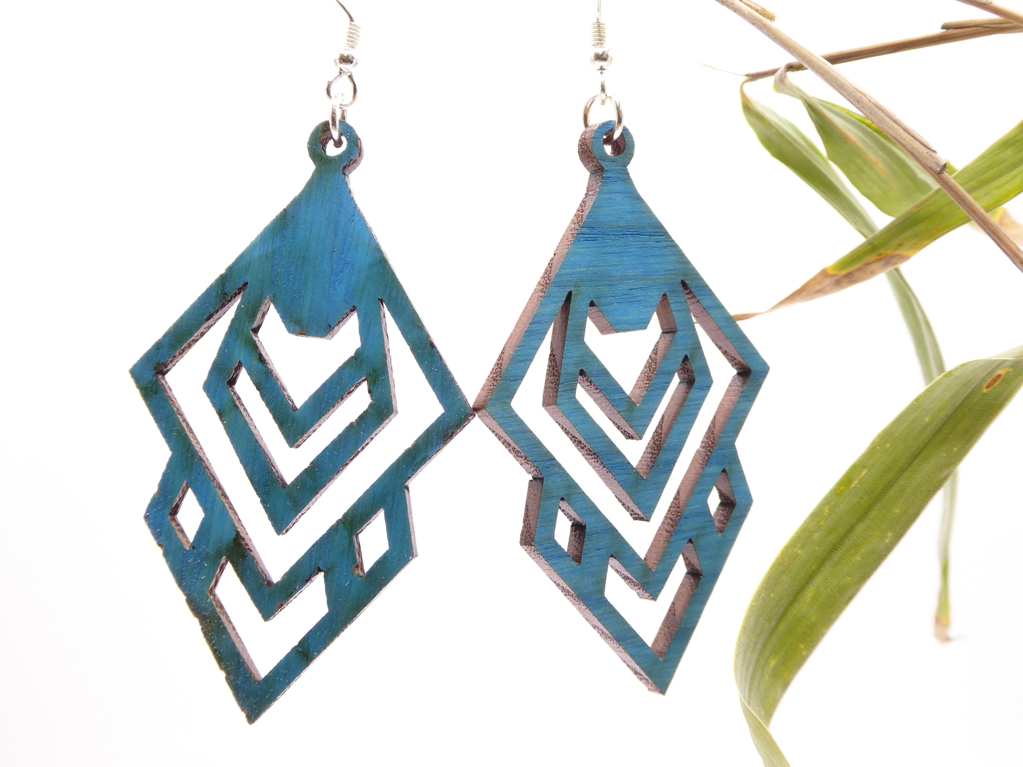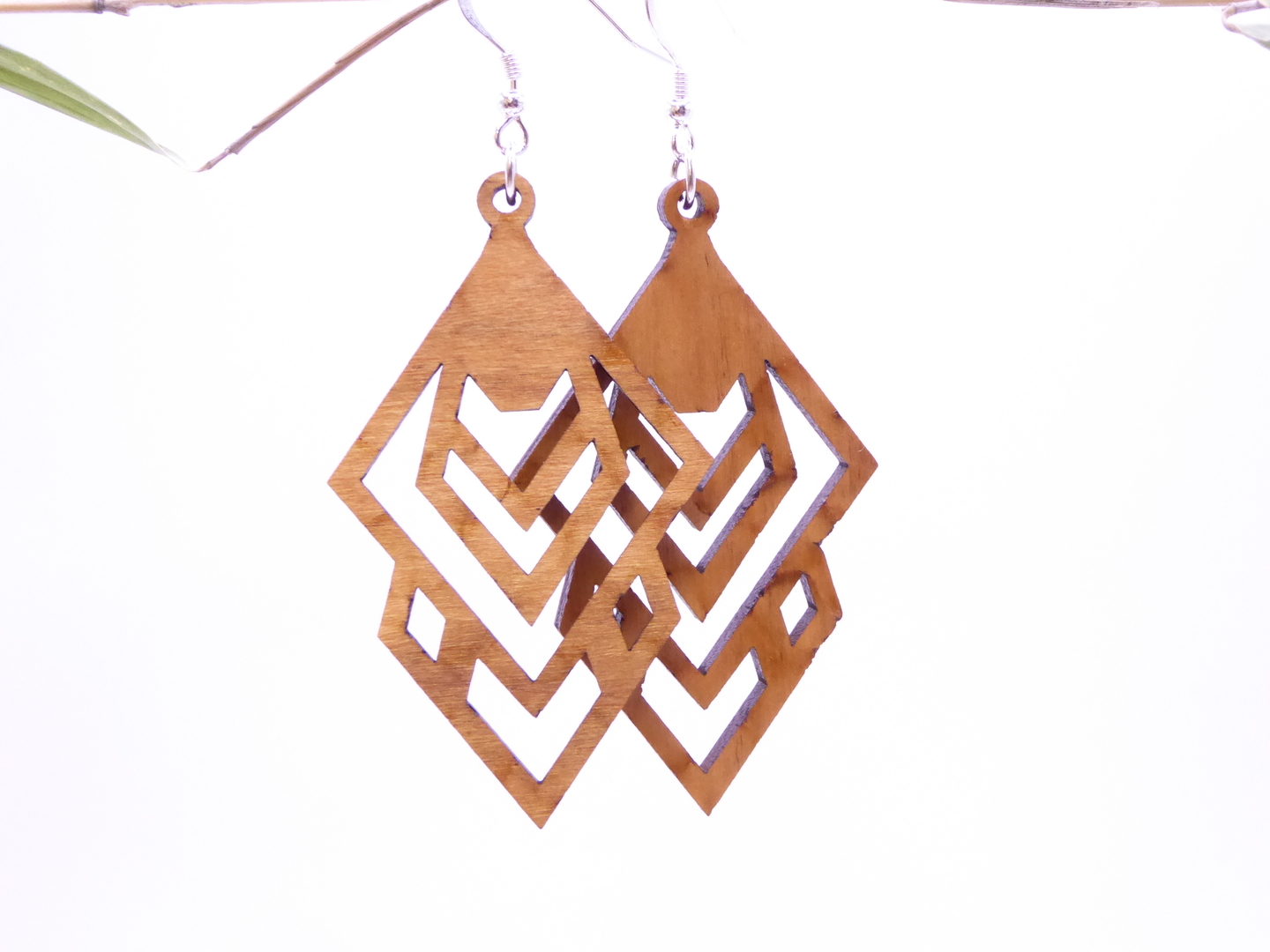 Boucles d’oreilles en bois massif, apprêts en argent 925.