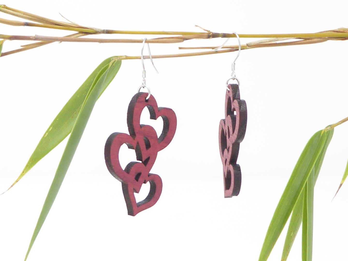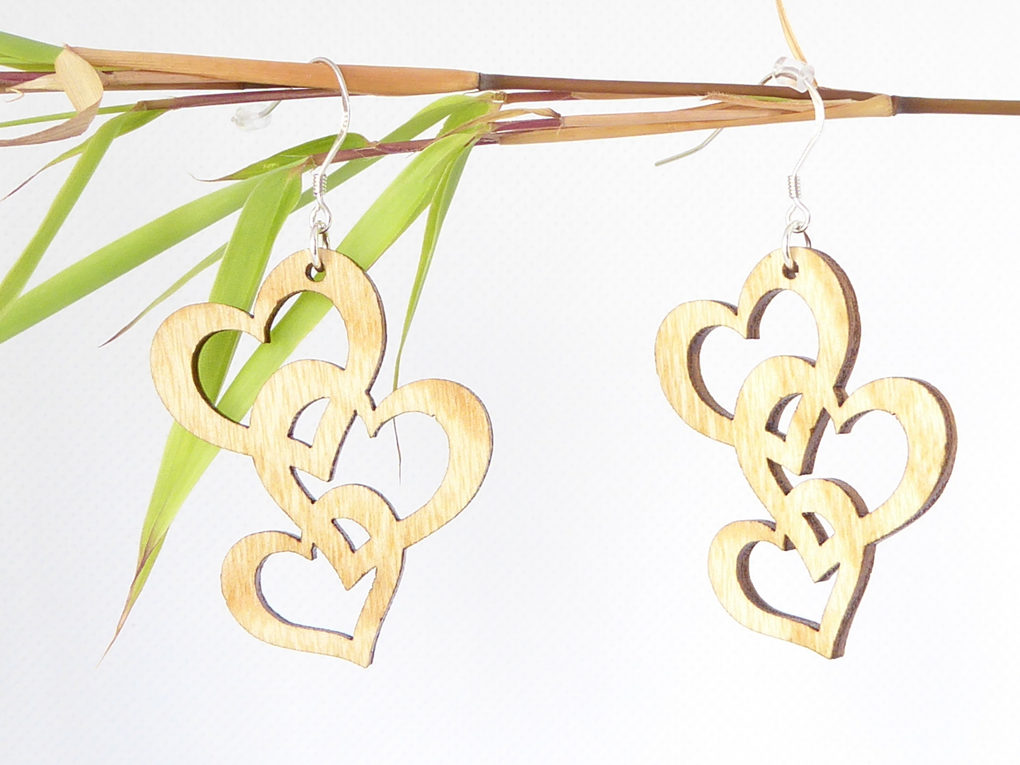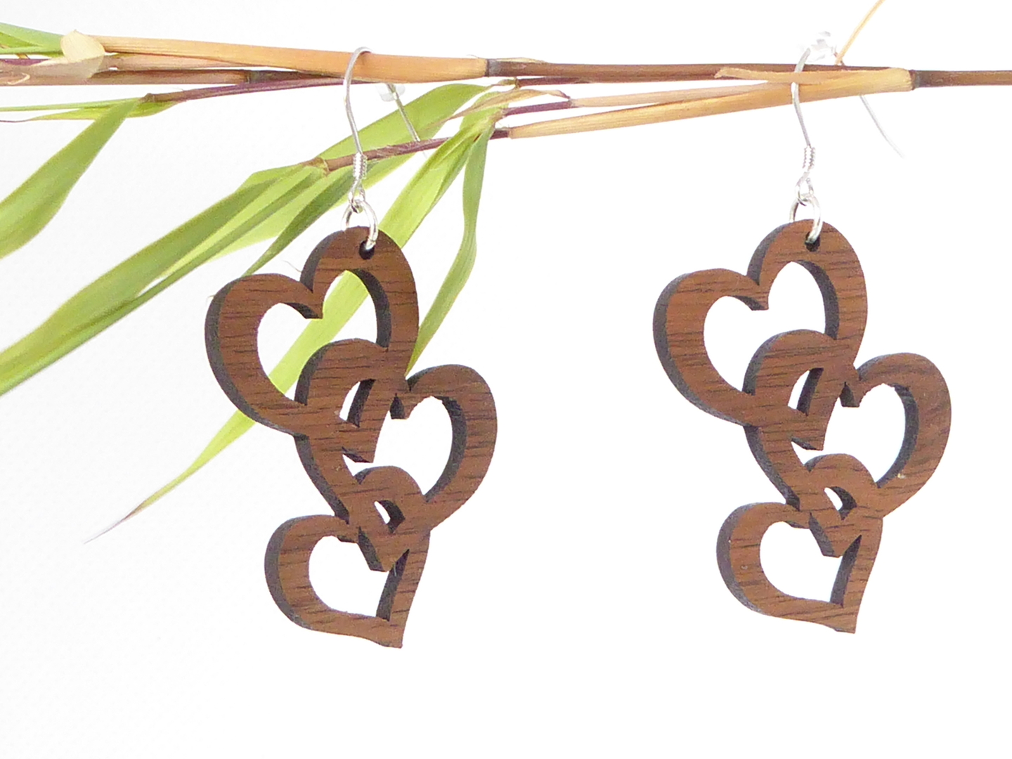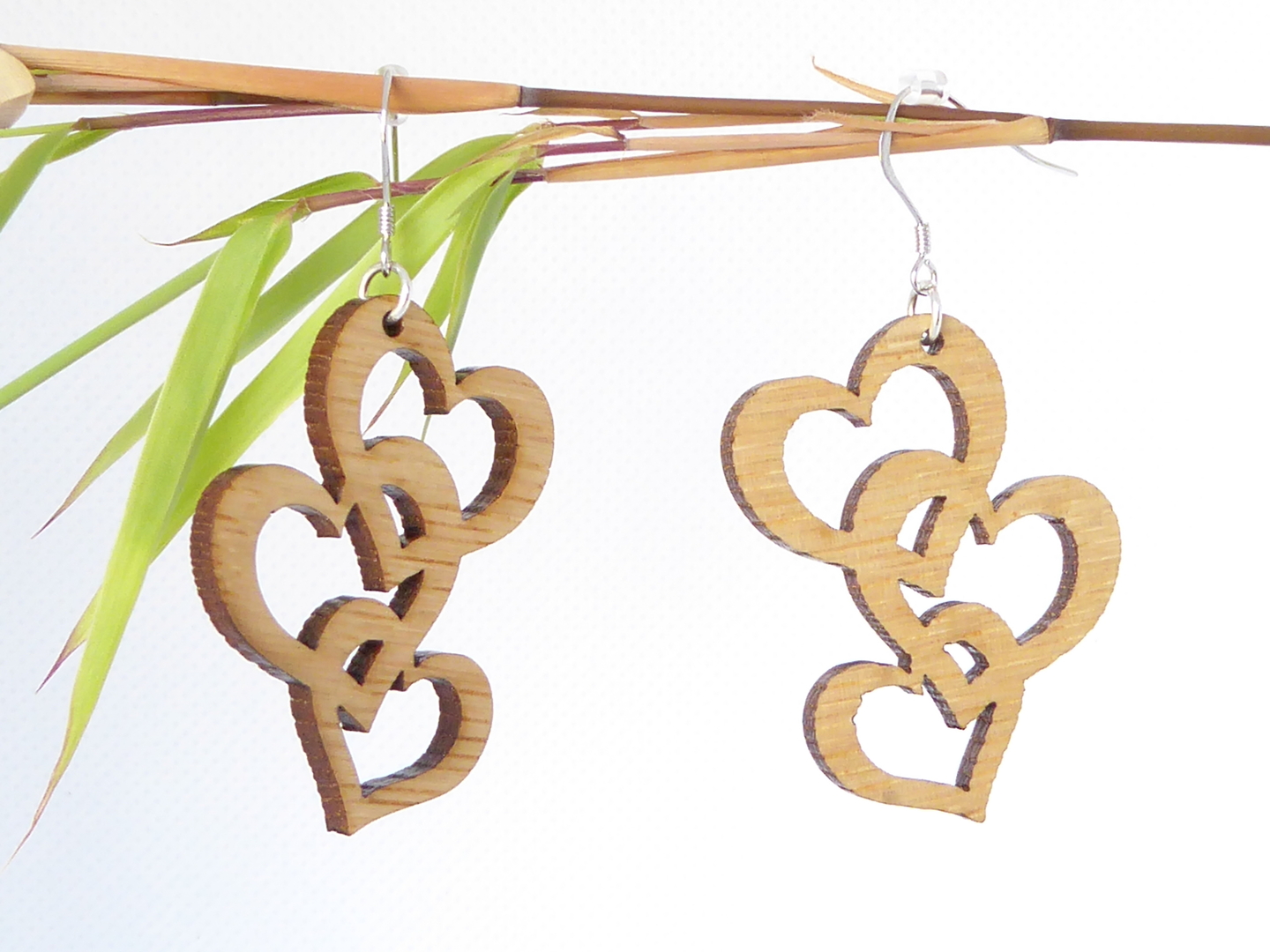 Boucles d’oreilles en bois massif, apprêts en argent 925.