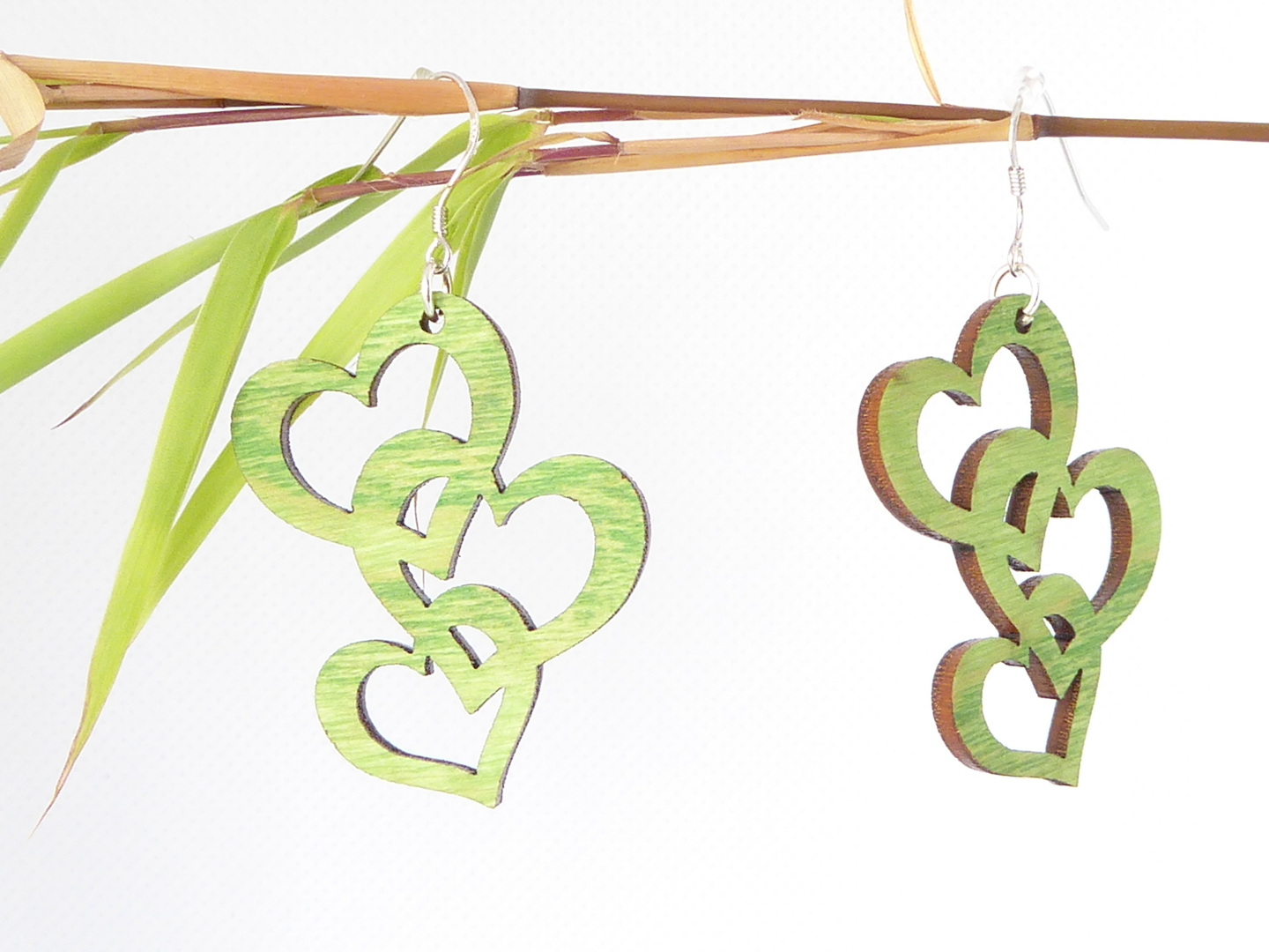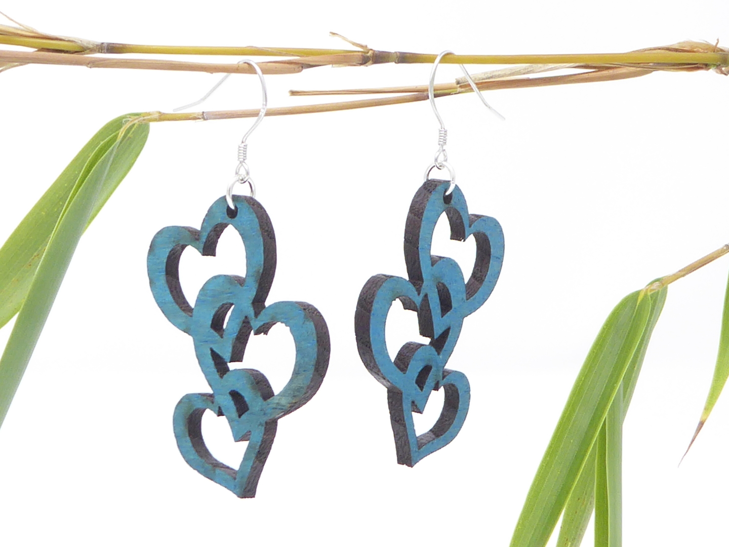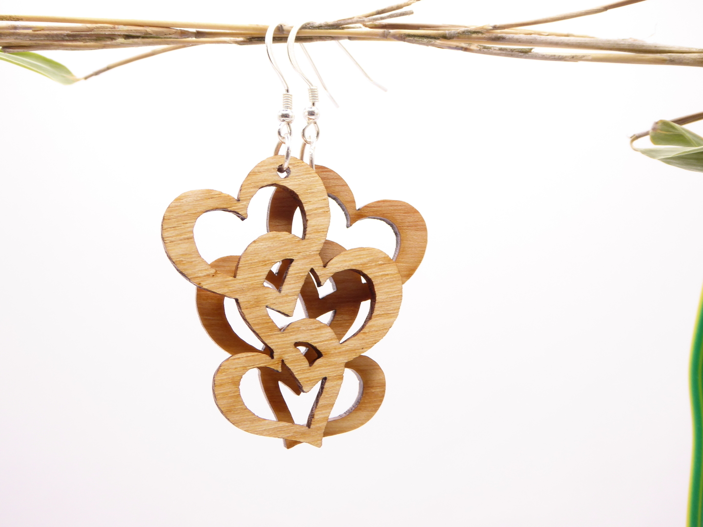 Boucles d’oreilles en bois massif, apprêts en argent 925.