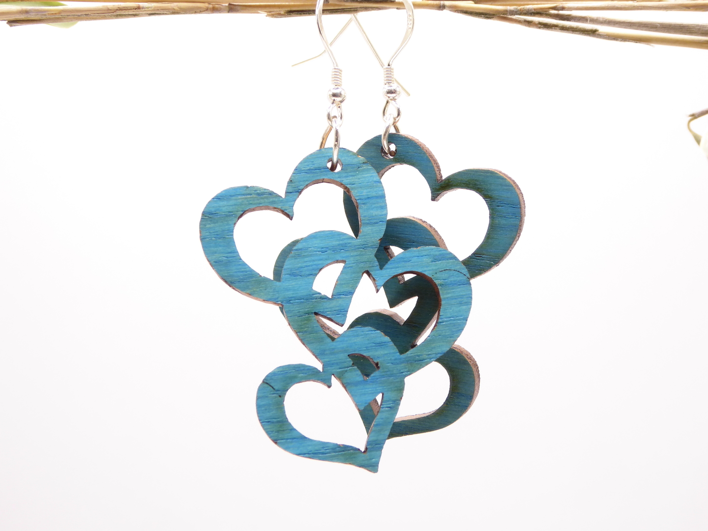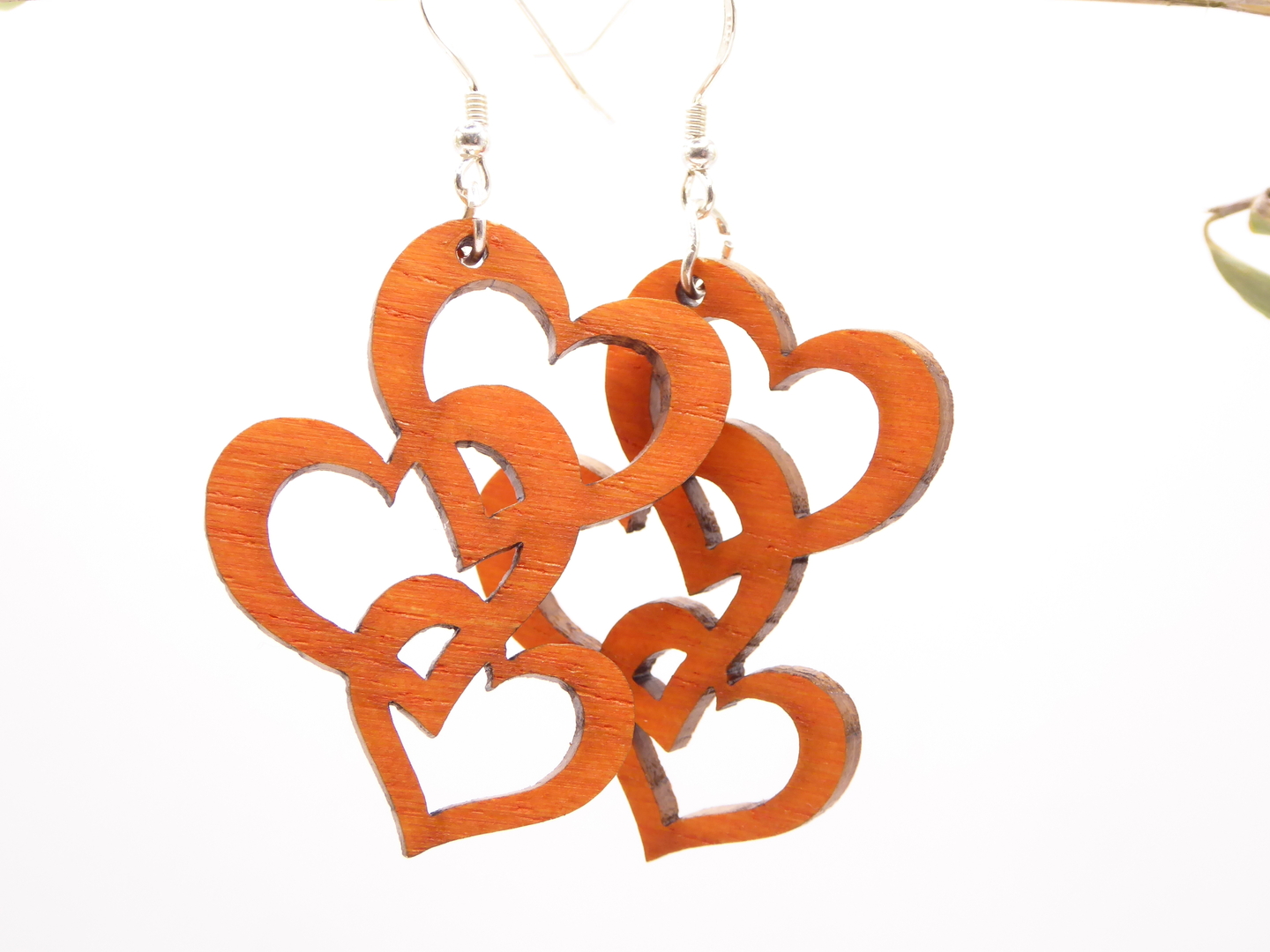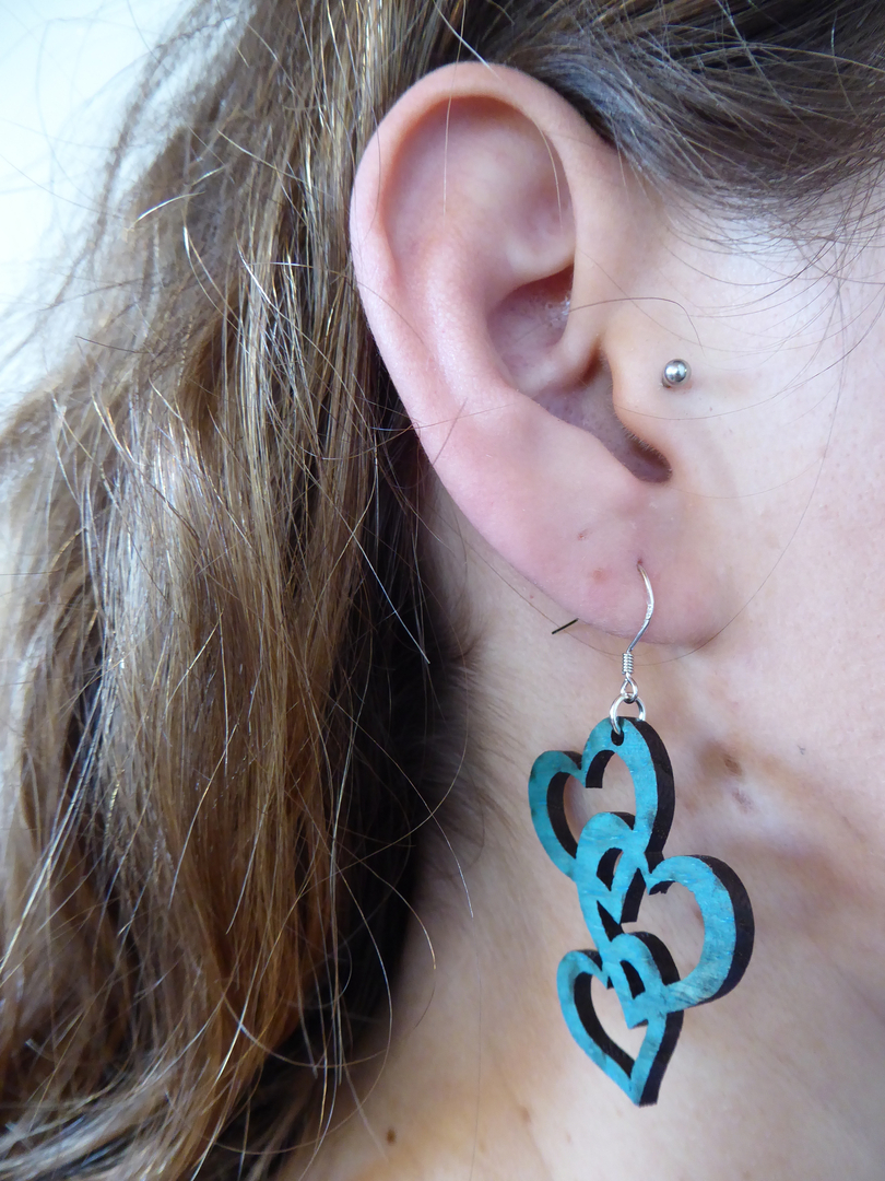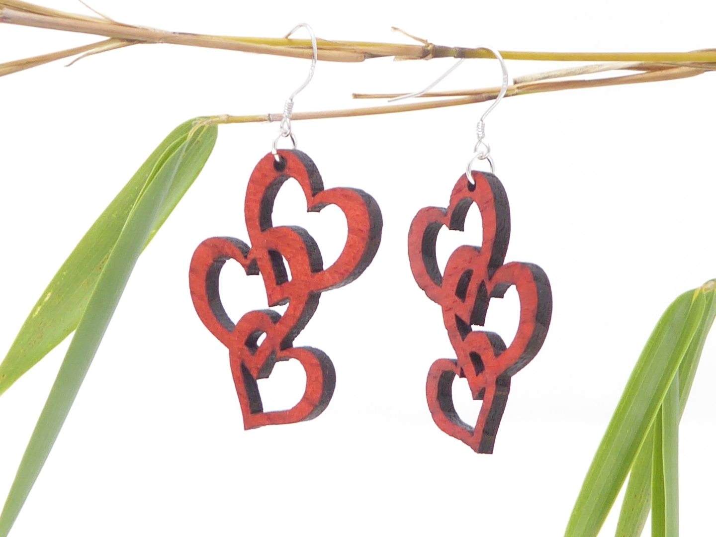 Boucles d’oreilles en bois massif, apprêts en argent 925.