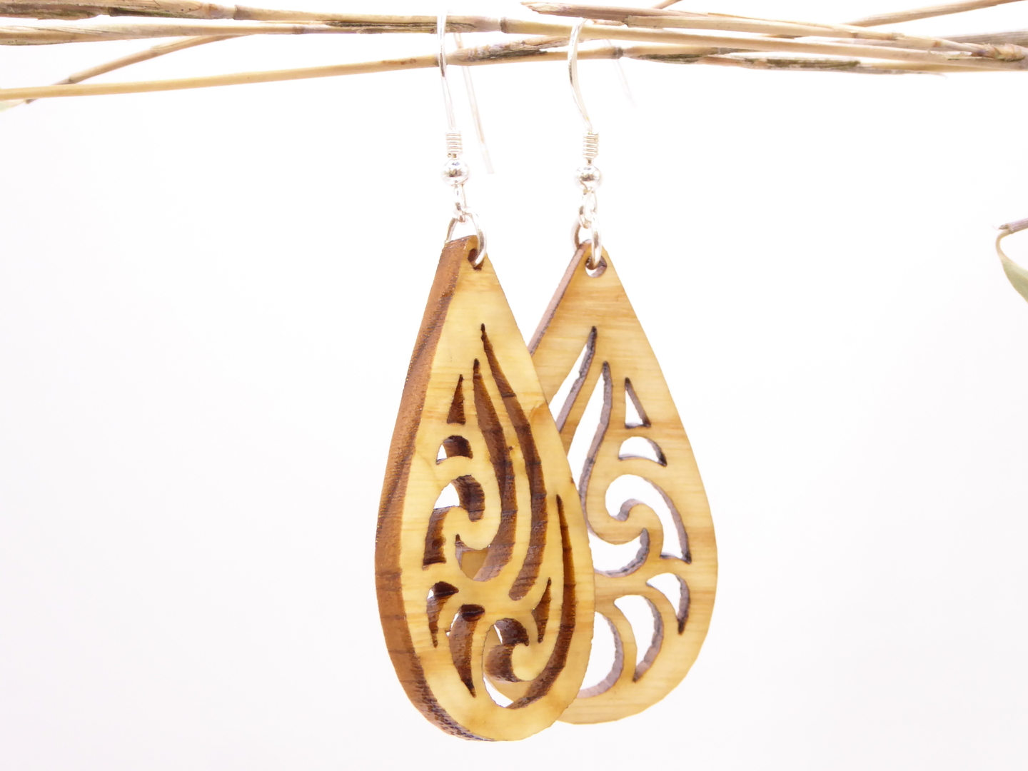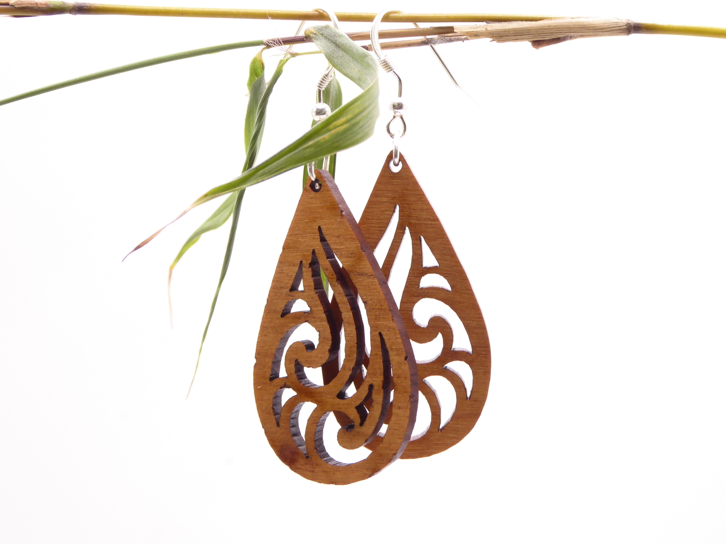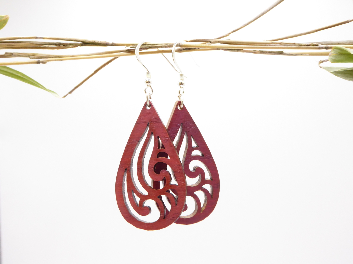 Boucles d’oreilles en bois massif, apprêts en argent 925.