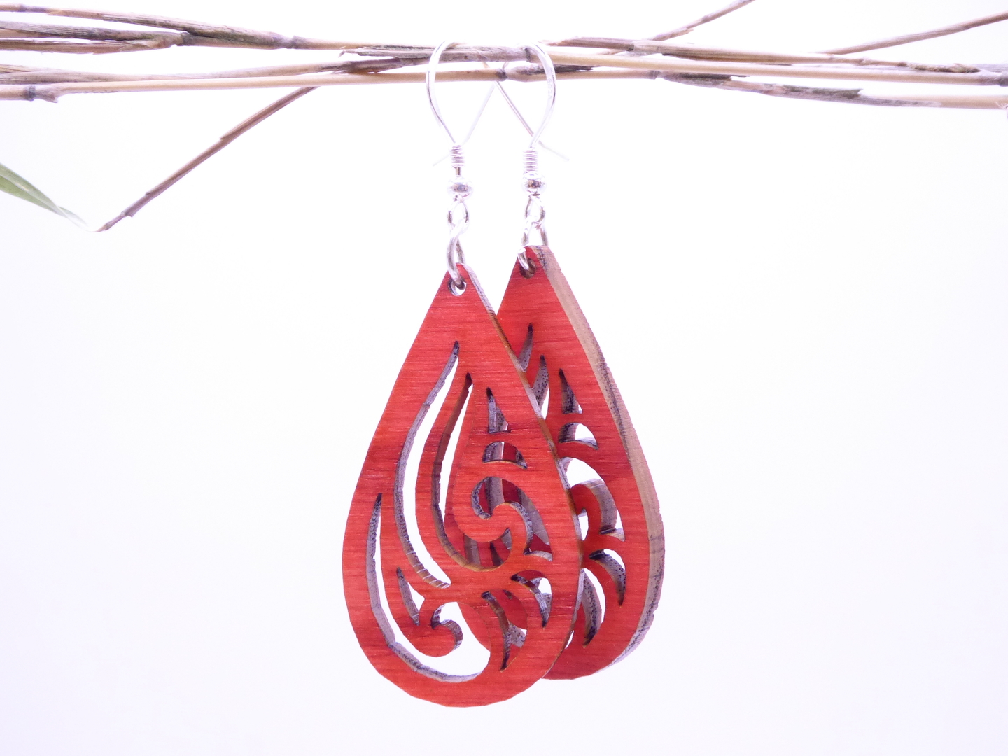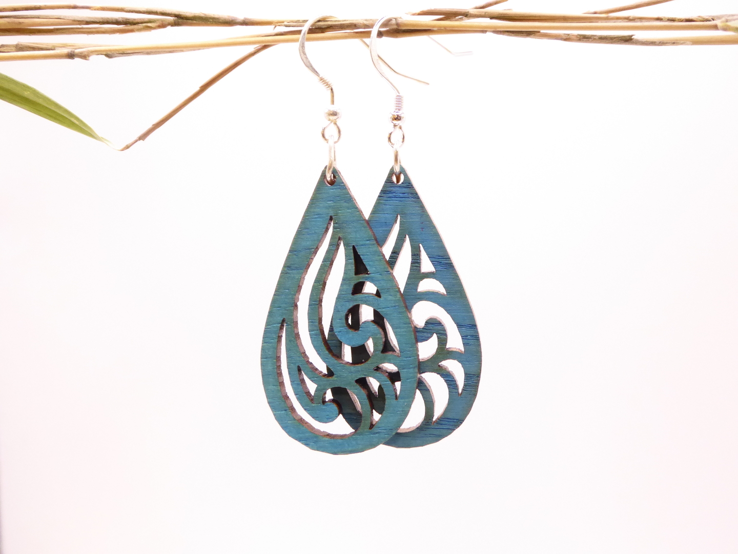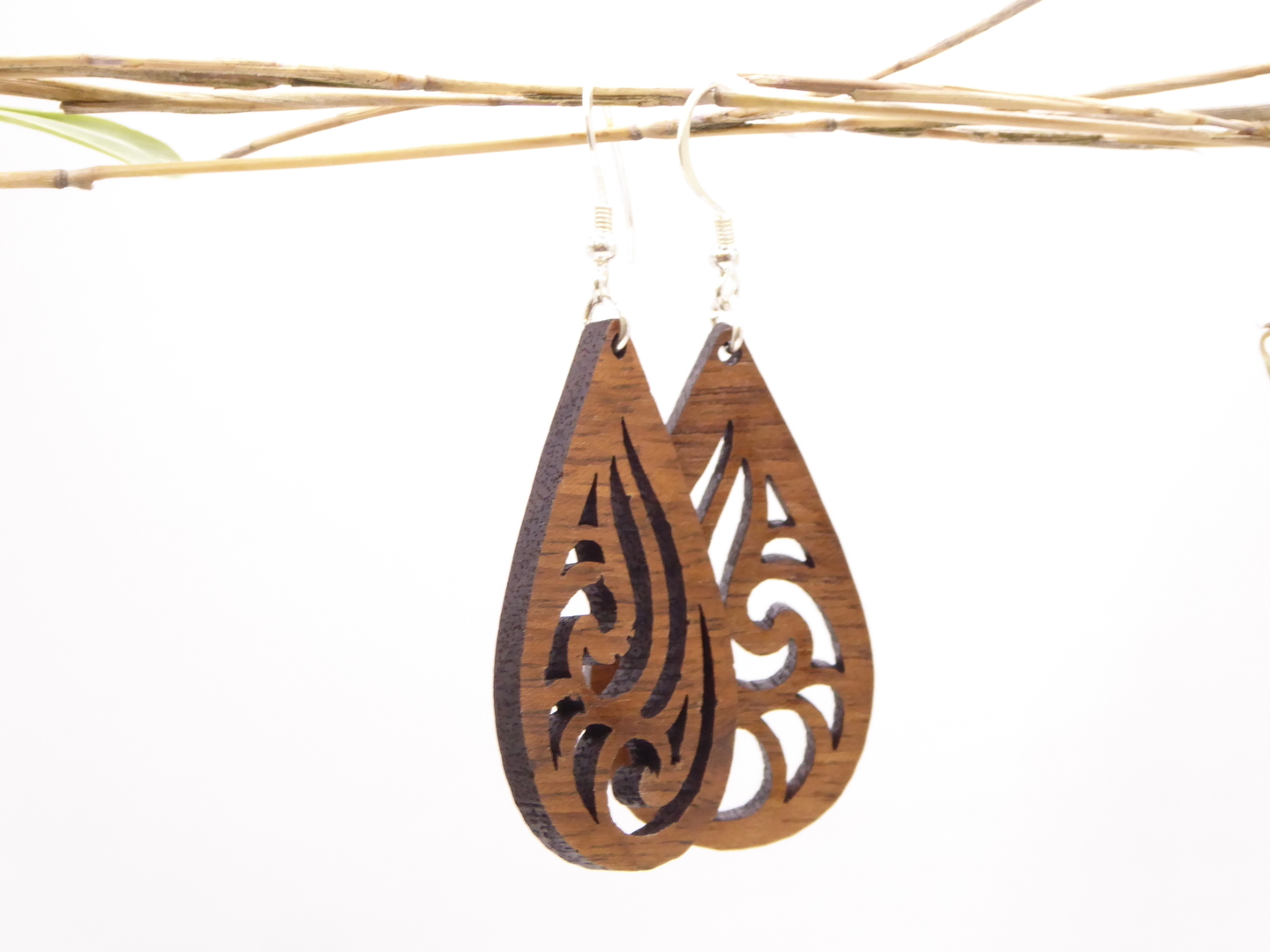 Boucles d’oreilles en bois massif, apprêts en argent 925.