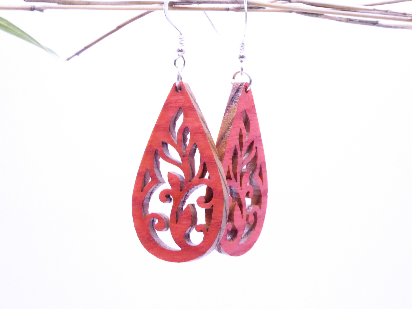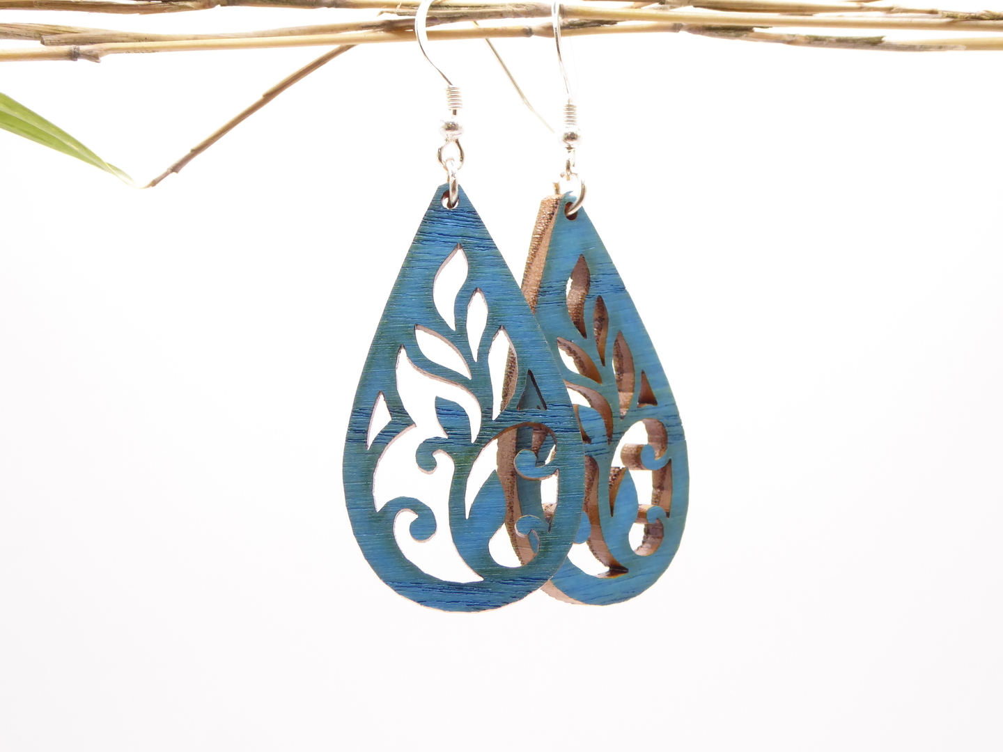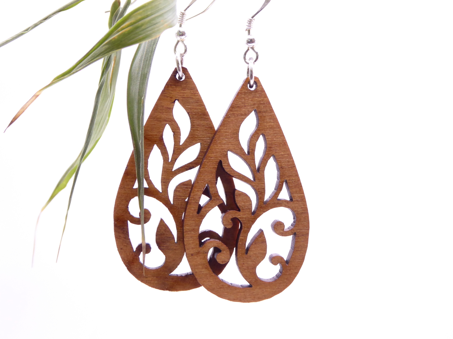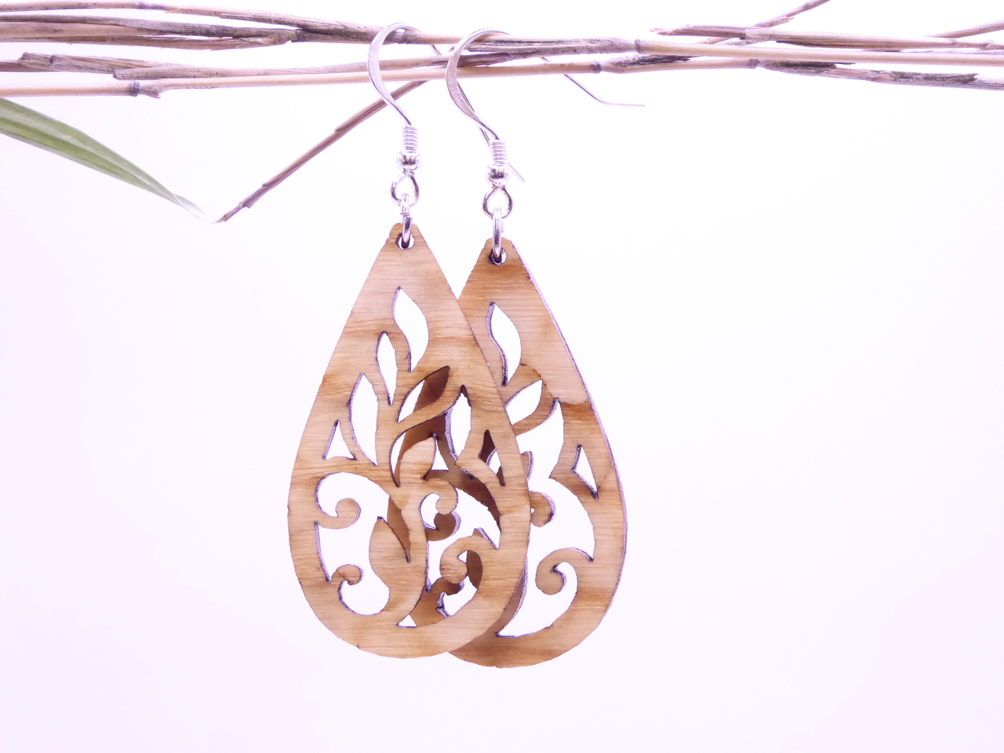 Boucles d’oreilles en bois massif, apprêts en argent 925.
