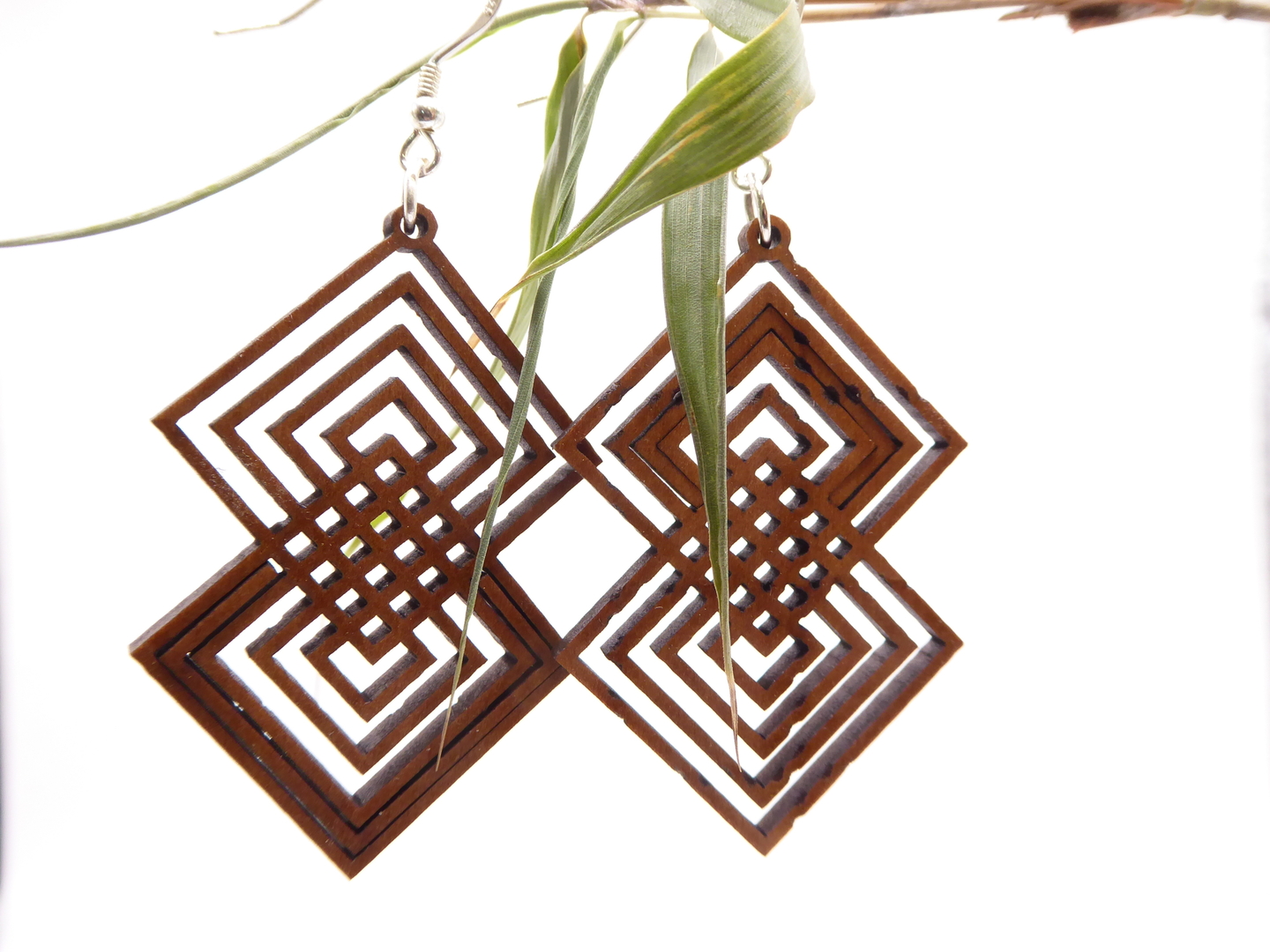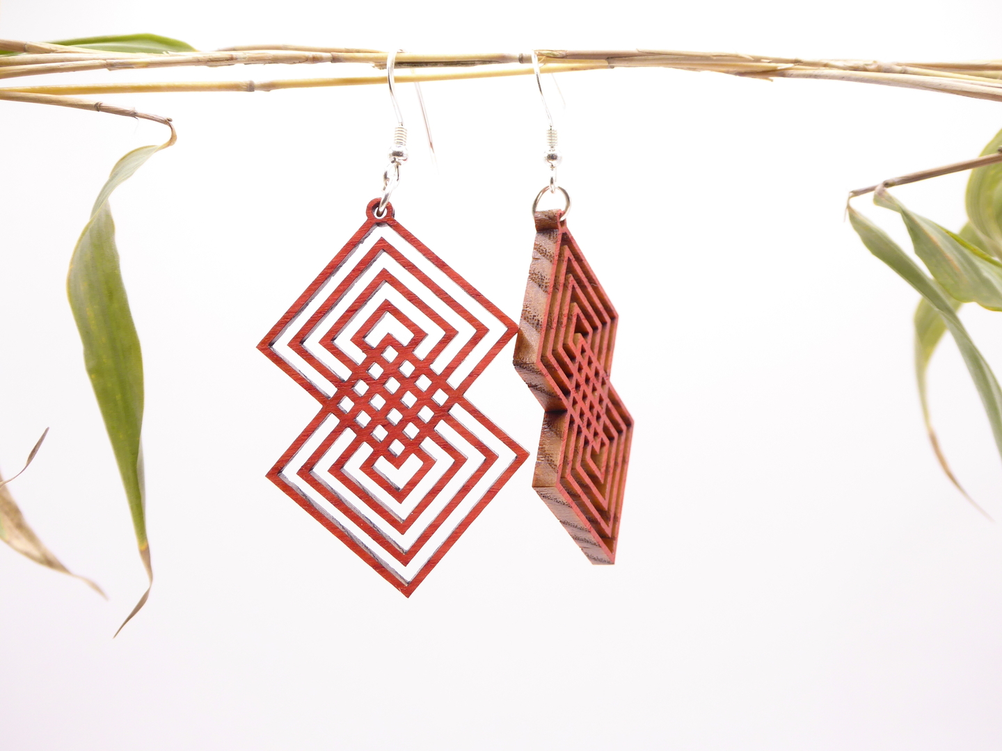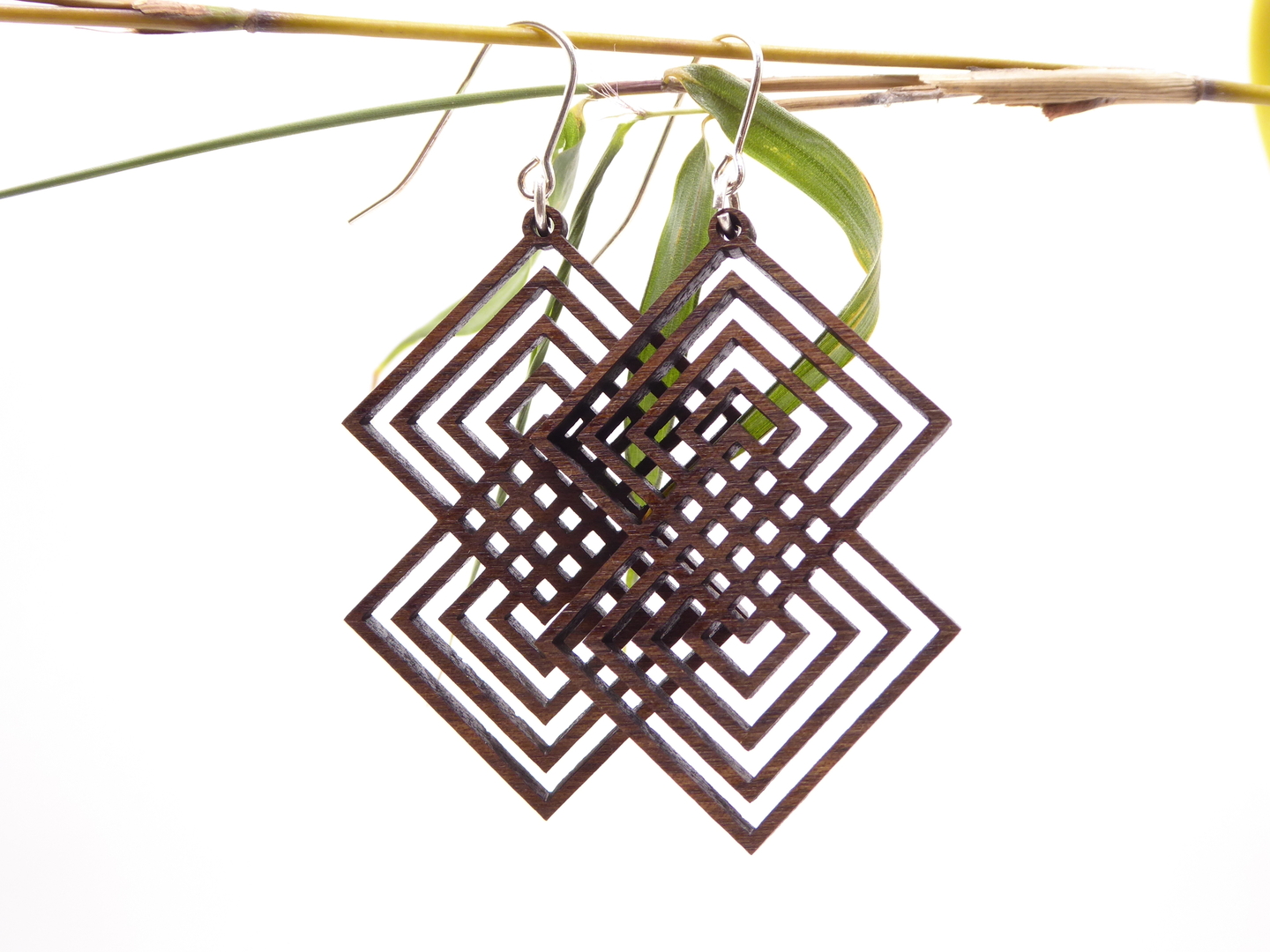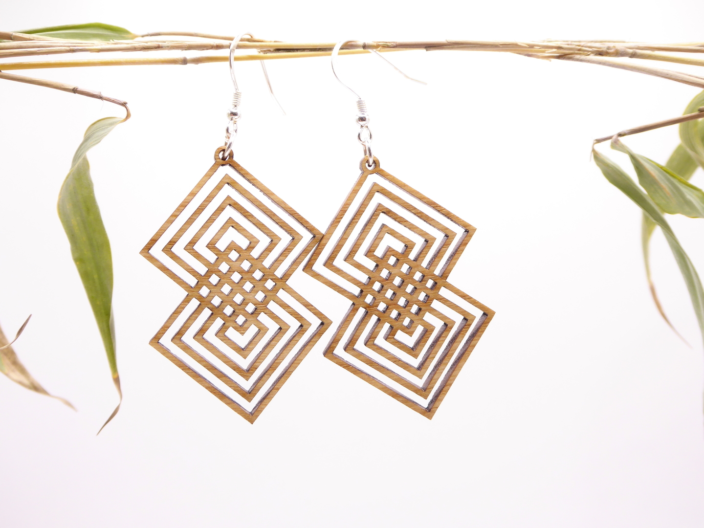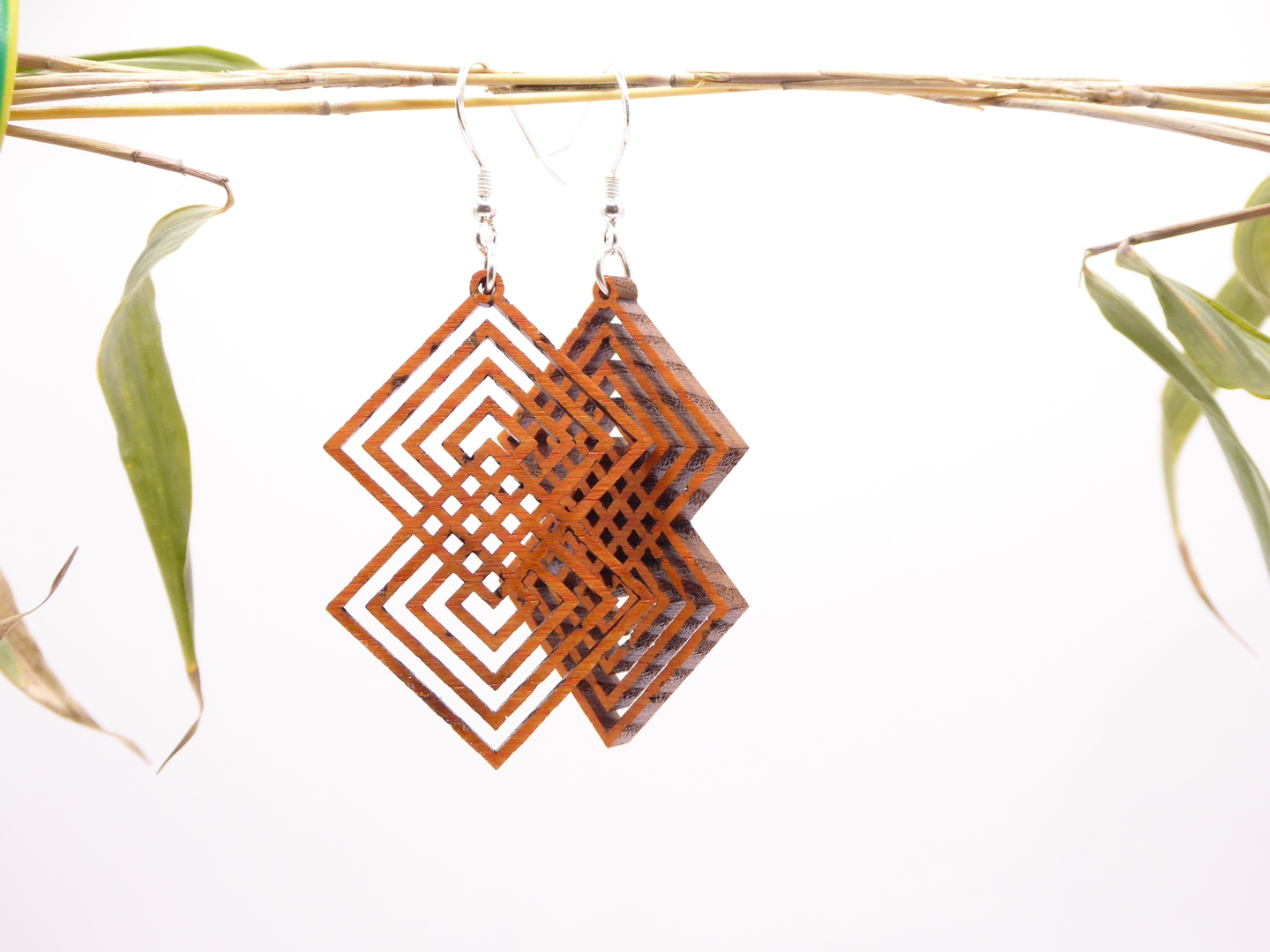 Boucles d’oreilles en bois massif, apprêts en argent 925.