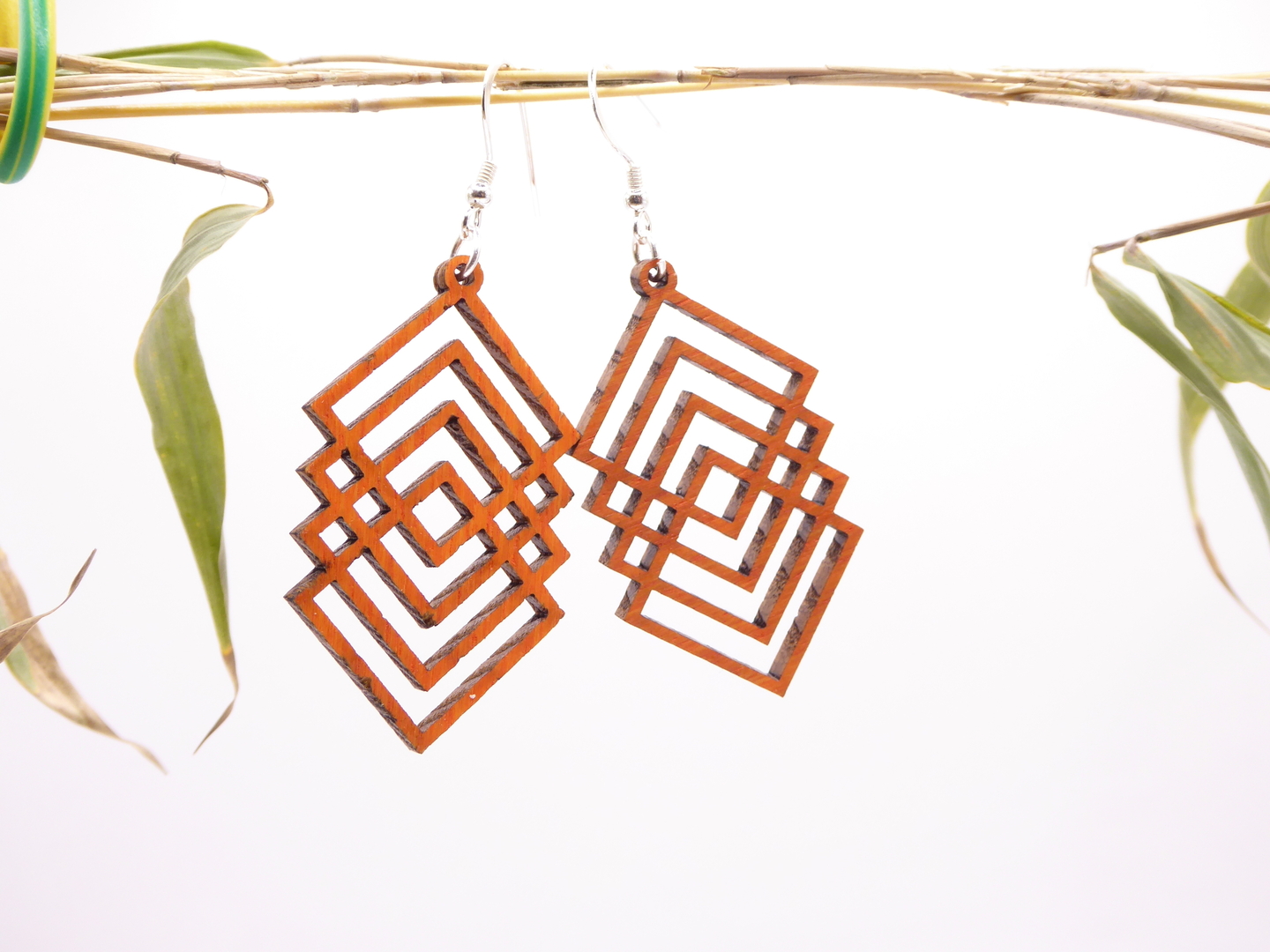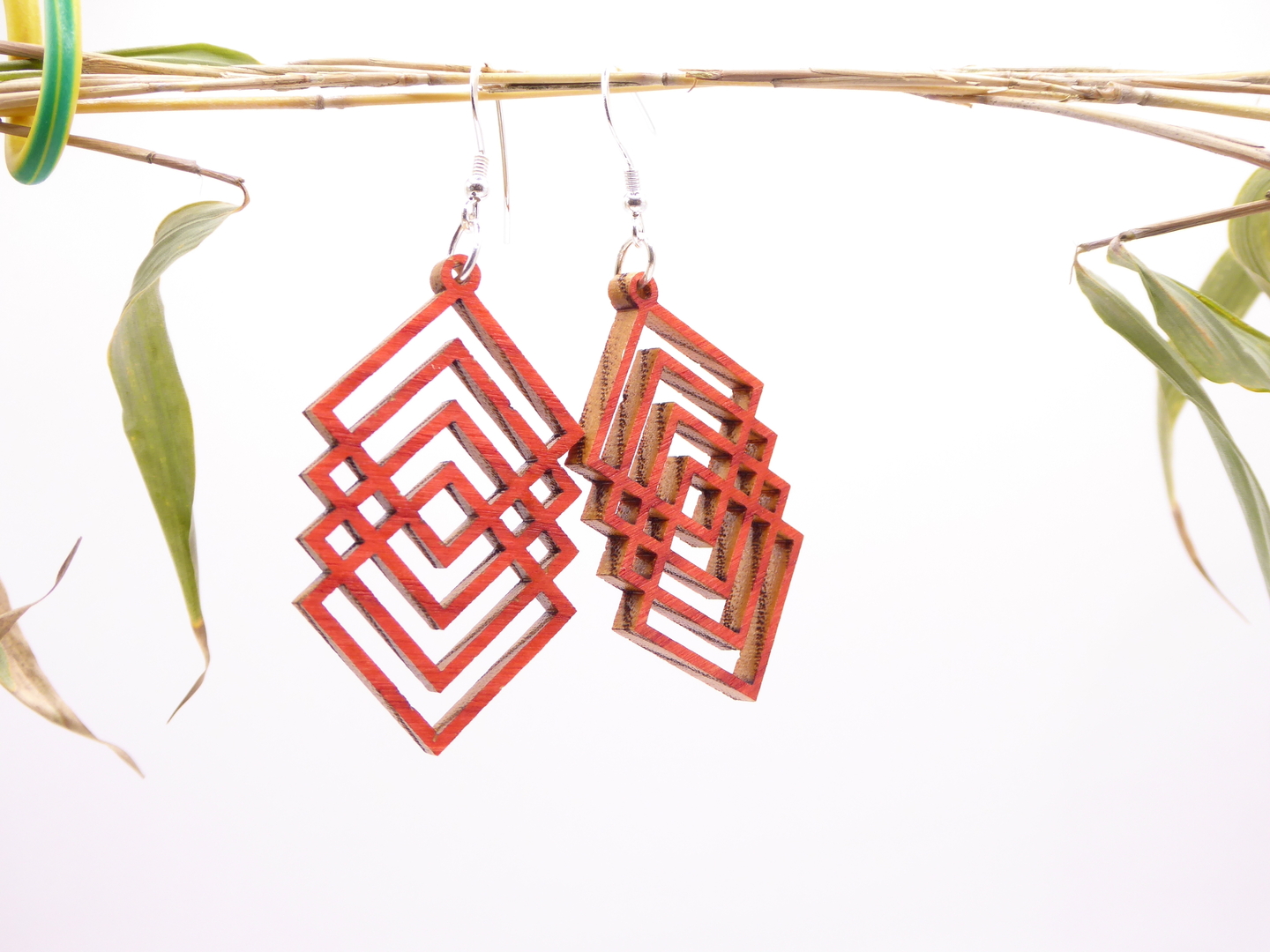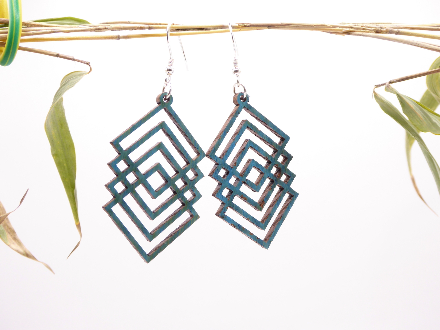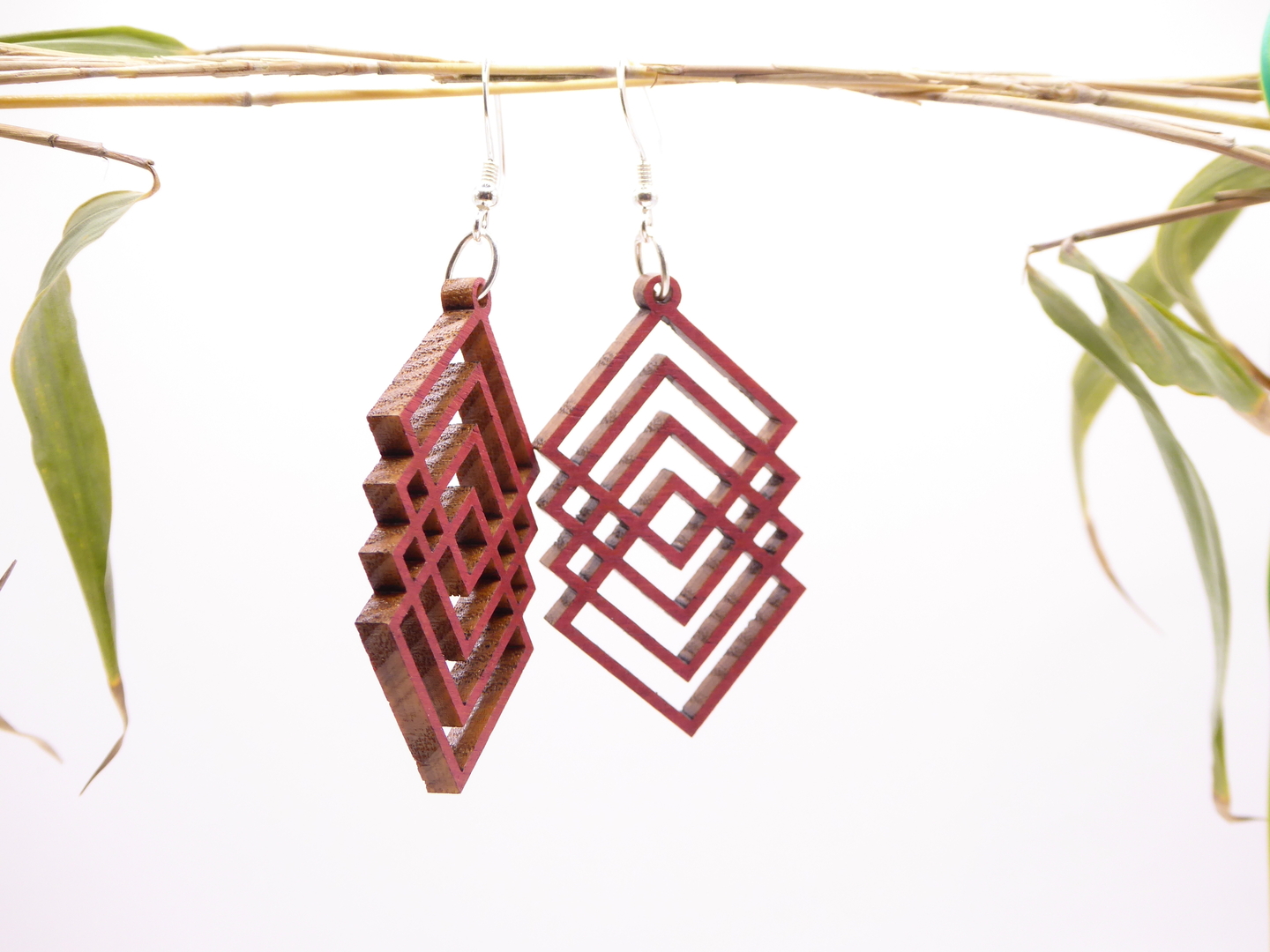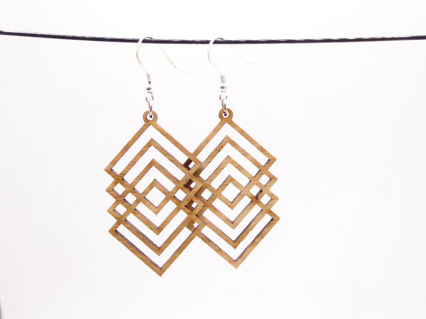 Bois;Argent;carré;dimensions : hauteur : 35mm / largeur : 35mm;Dimensions du pendant : Hauteur 44mm/ Largeur : 25mm