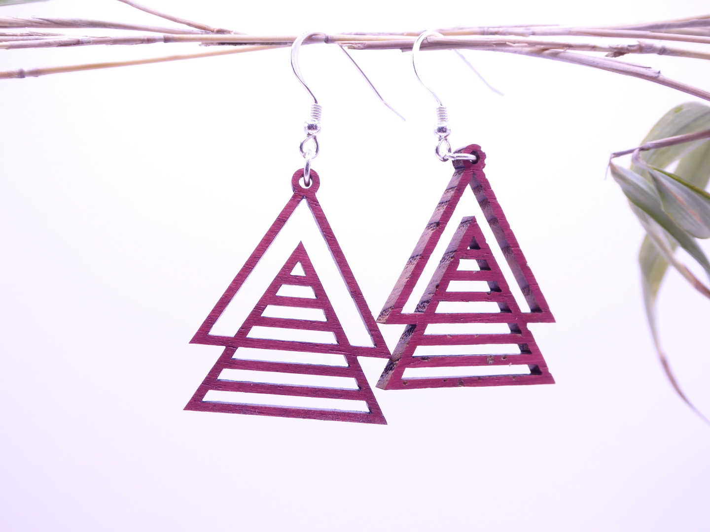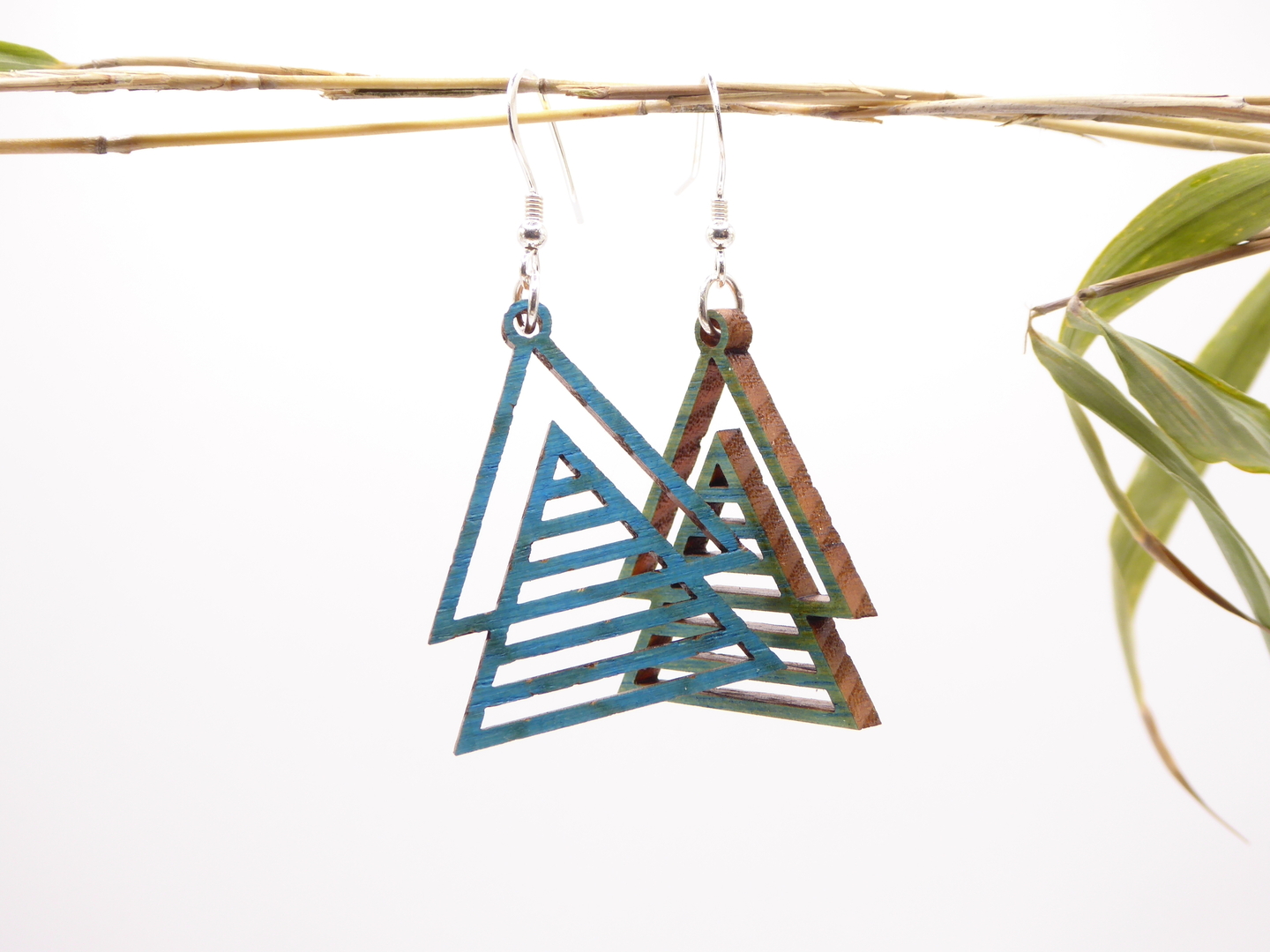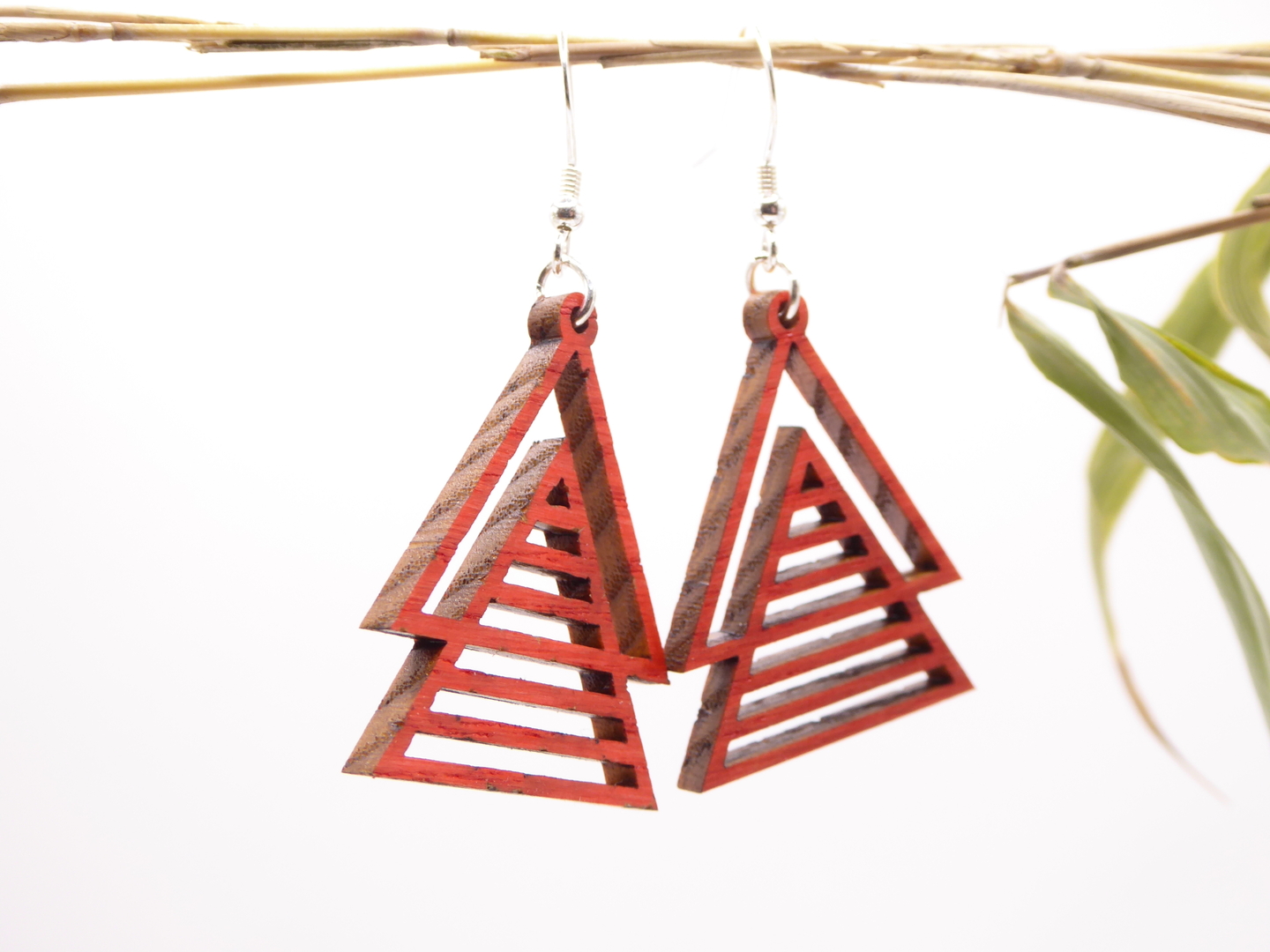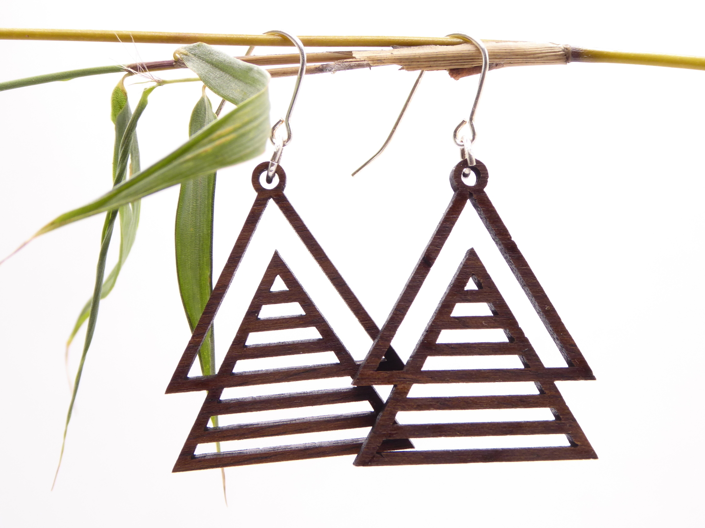 Boucles d’oreilles en bois massif, apprêts en argent 925.