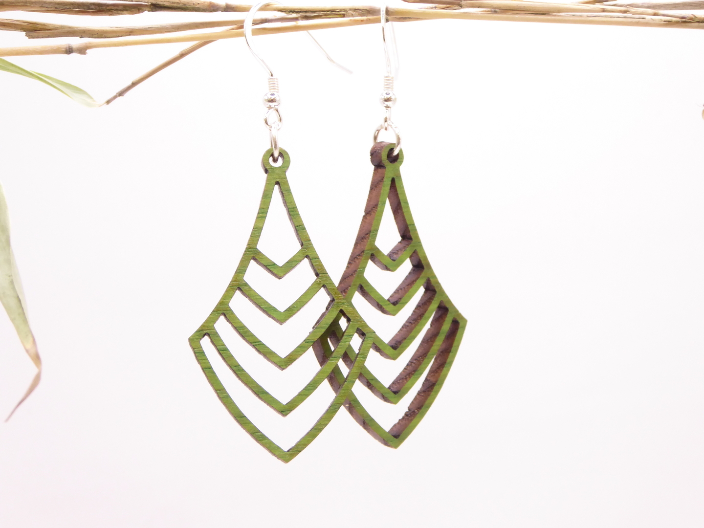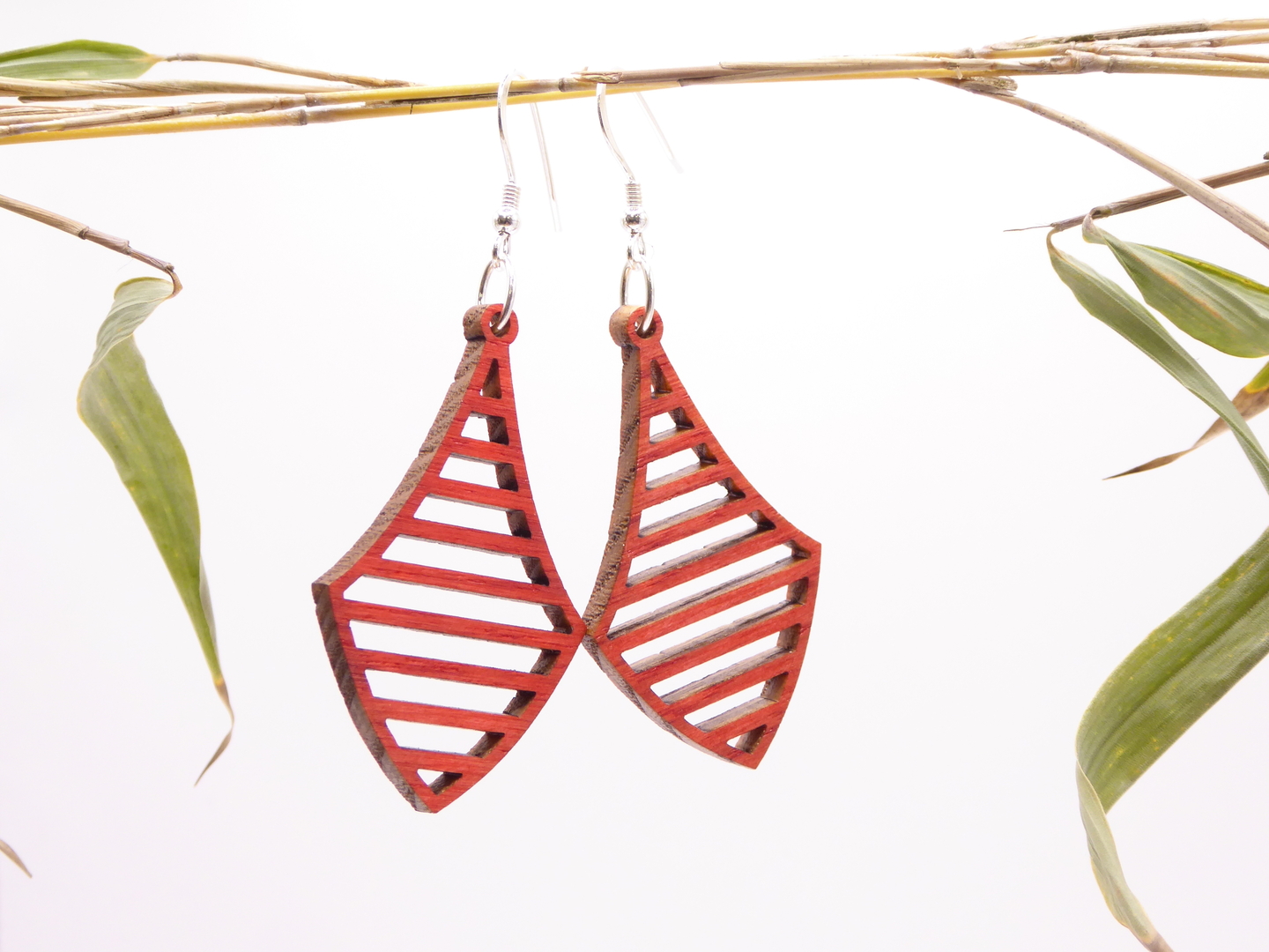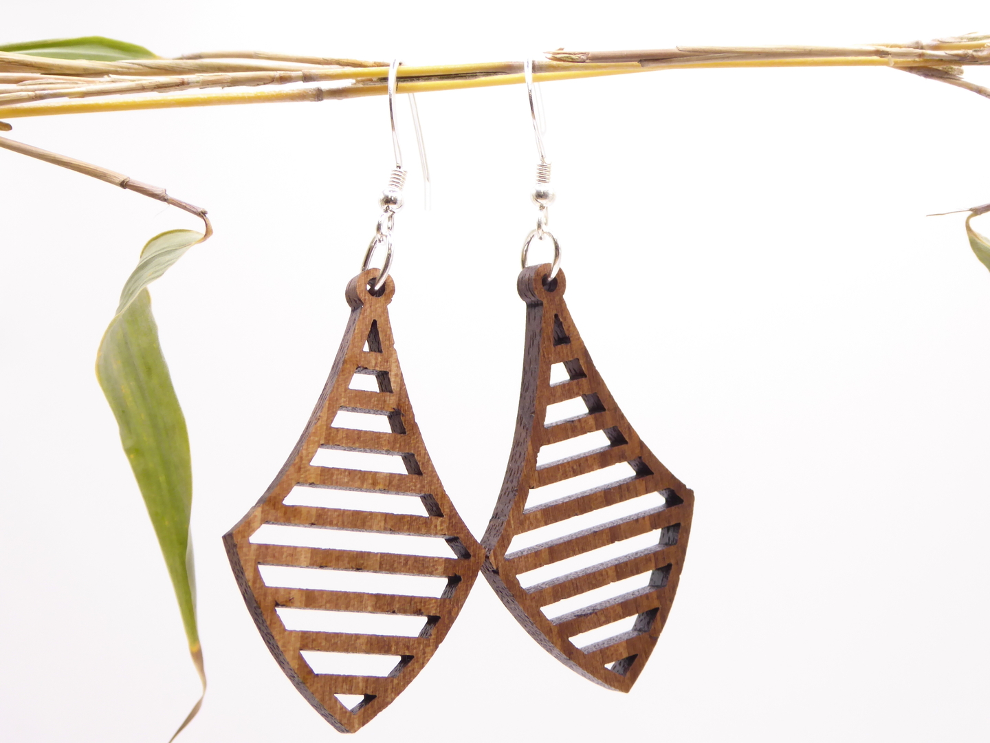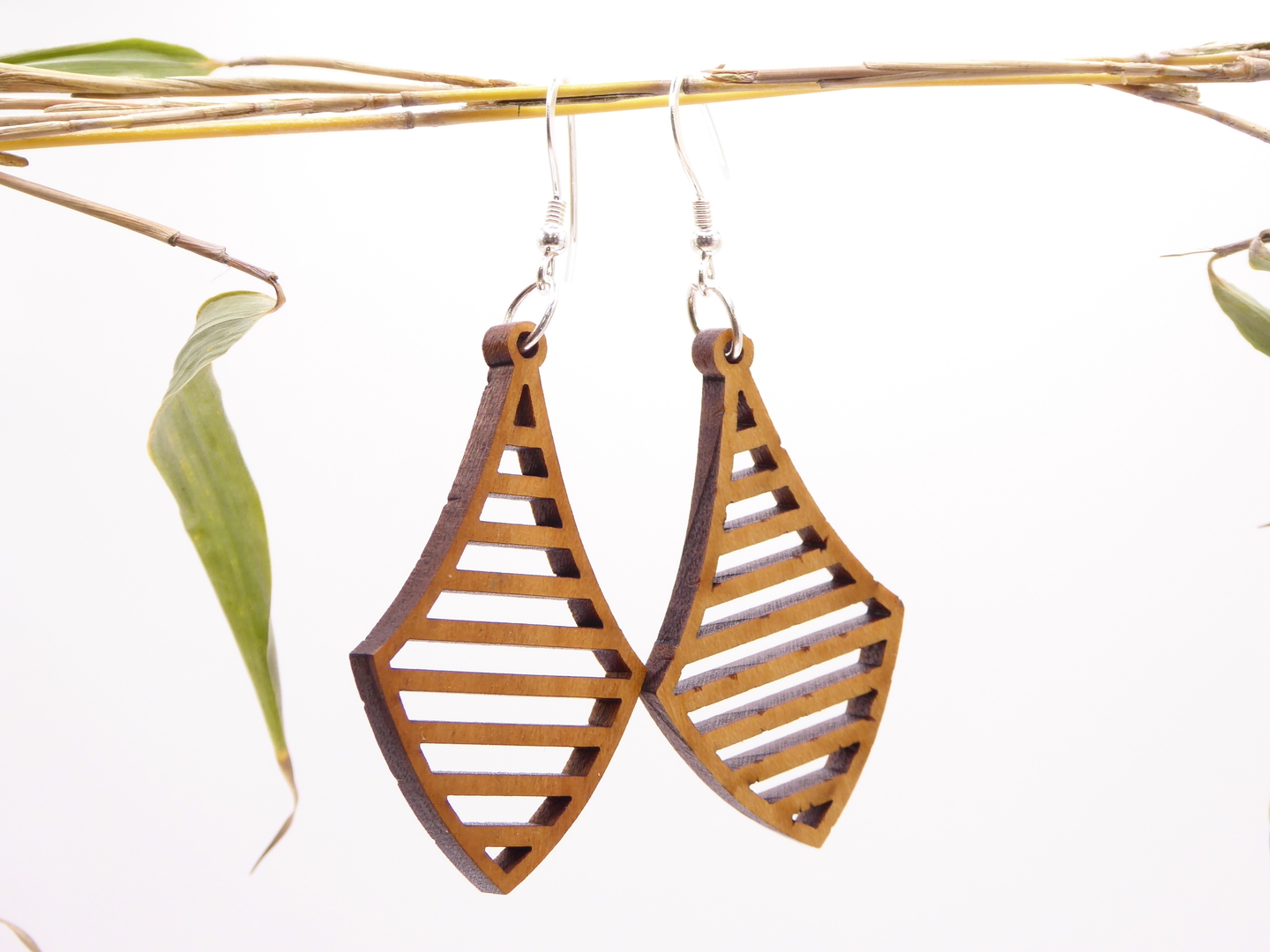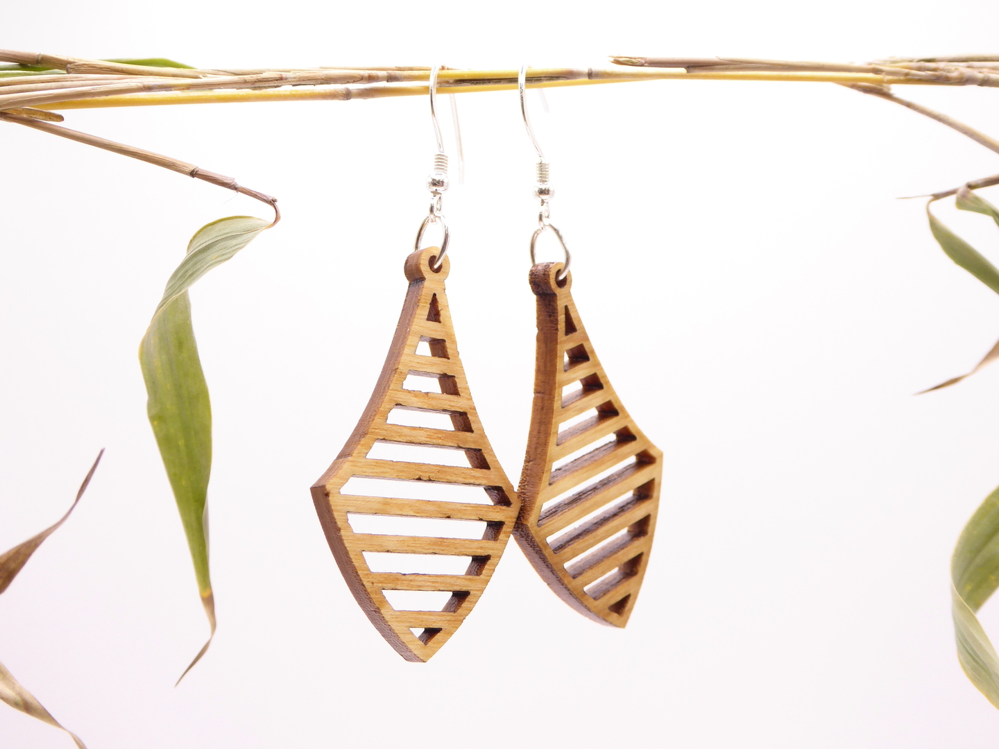Boucles d’oreilles en bois massif, apprêts en argent 925.