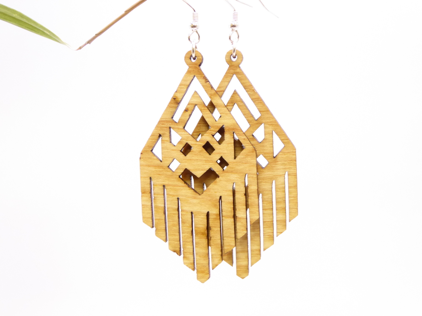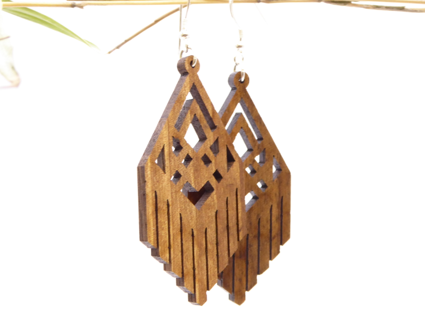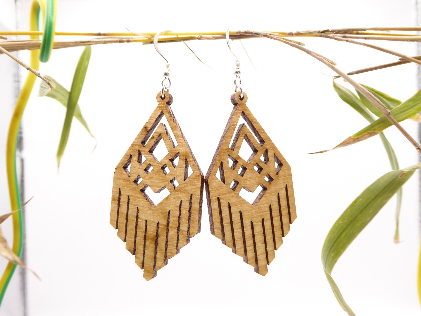 Boucles d’oreilles en bois massif, apprêts en argent 925.