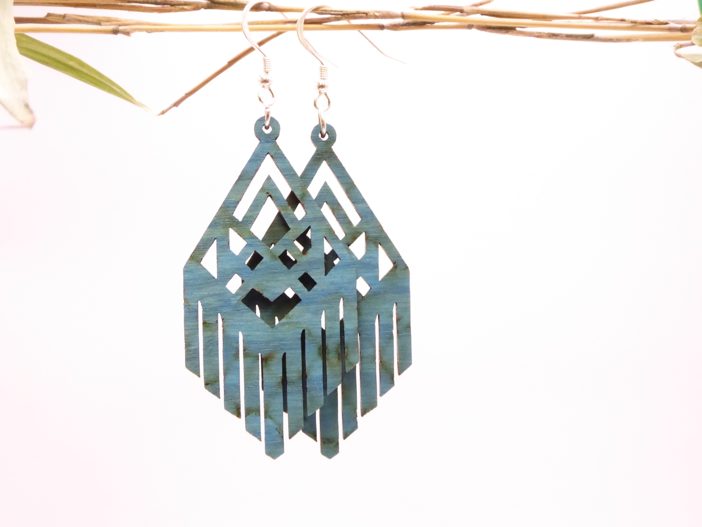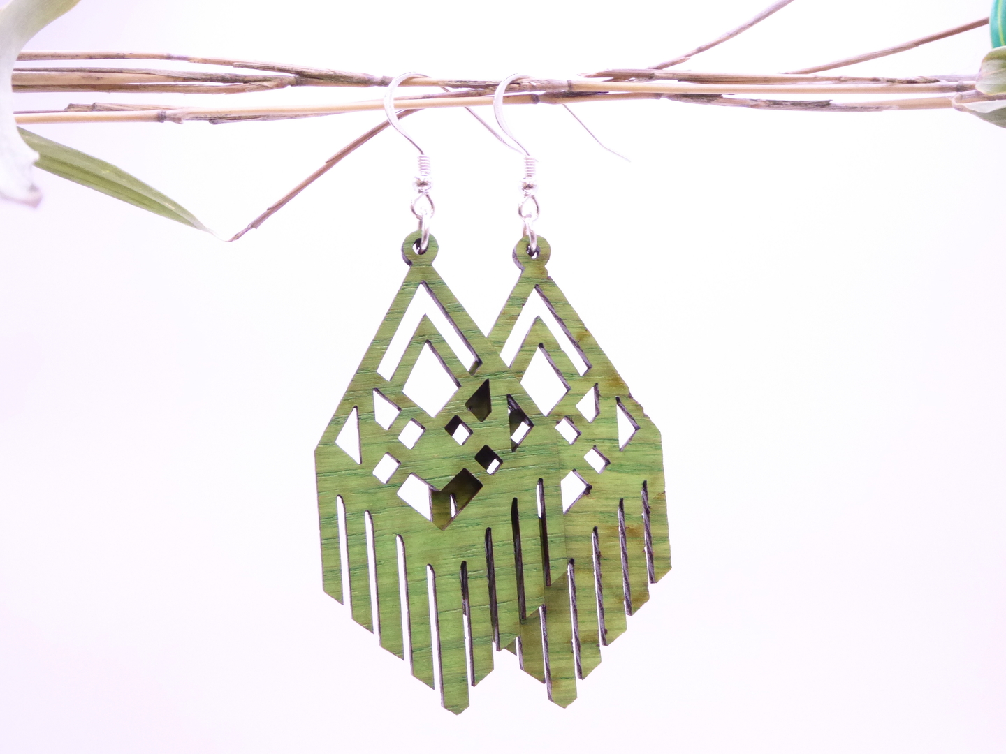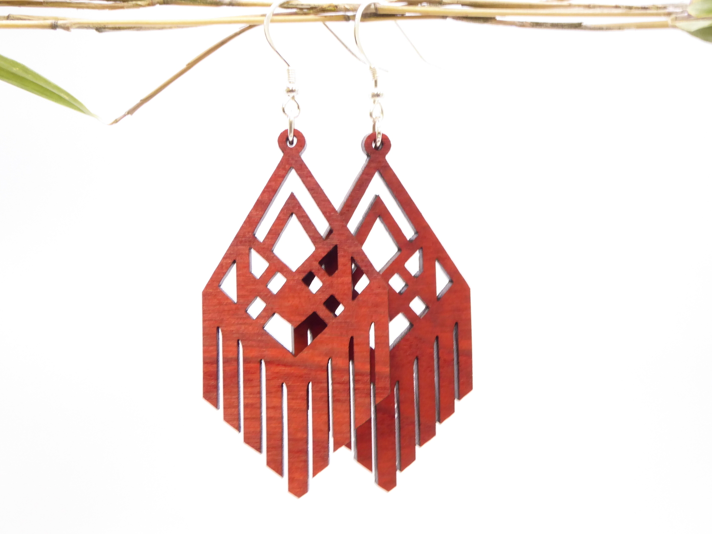 Boucles d’oreilles en bois massif, apprêts en argent 925.