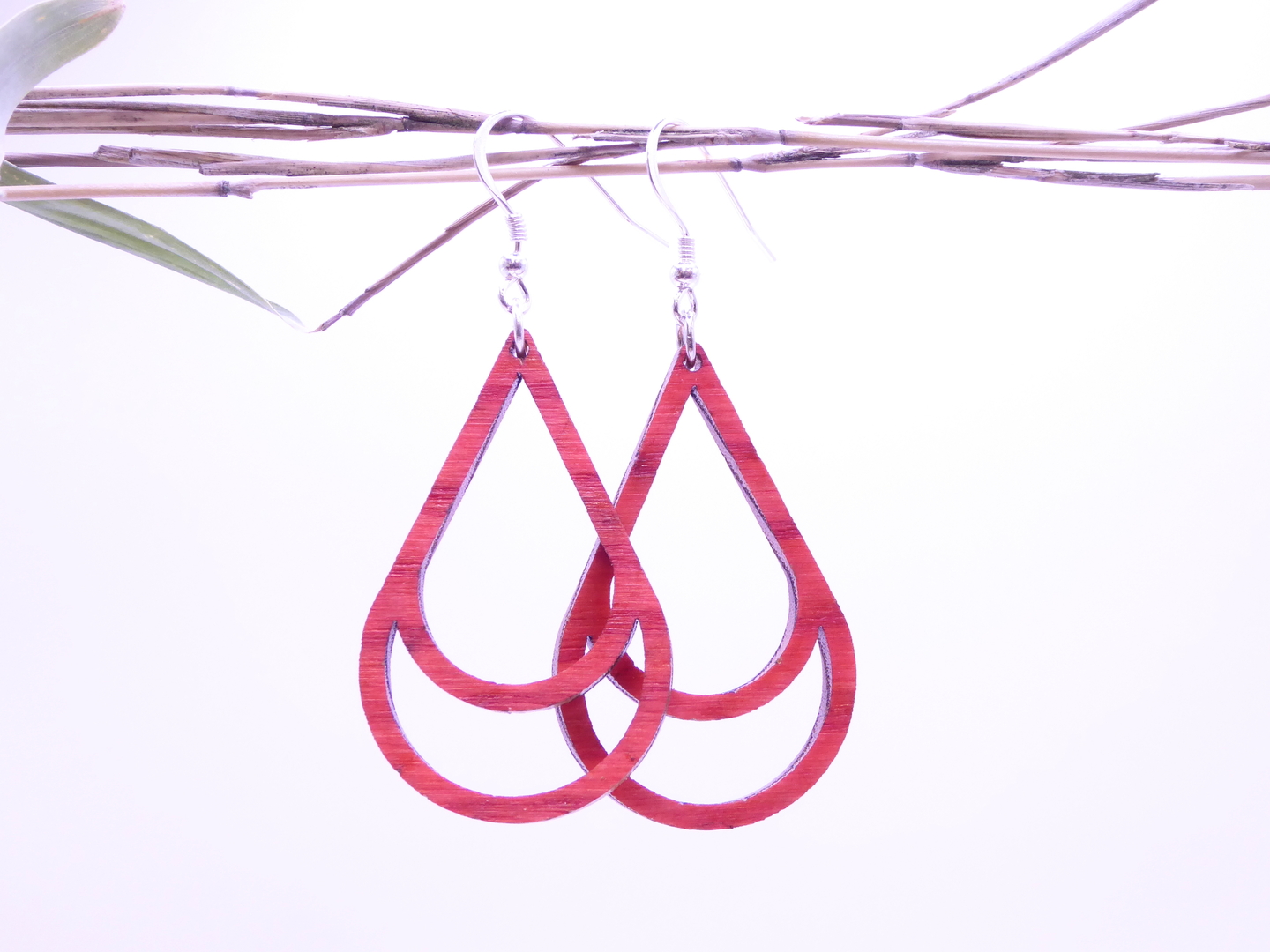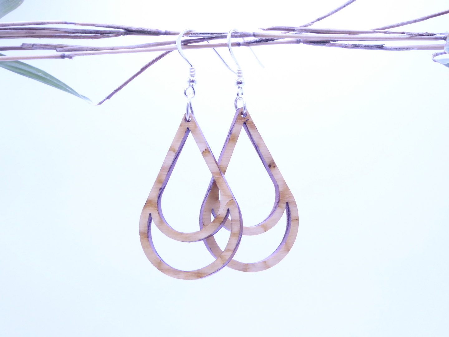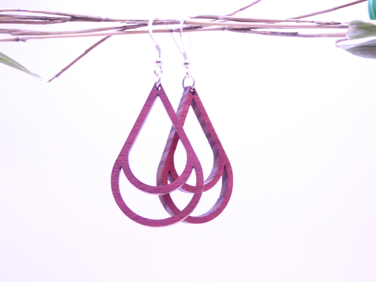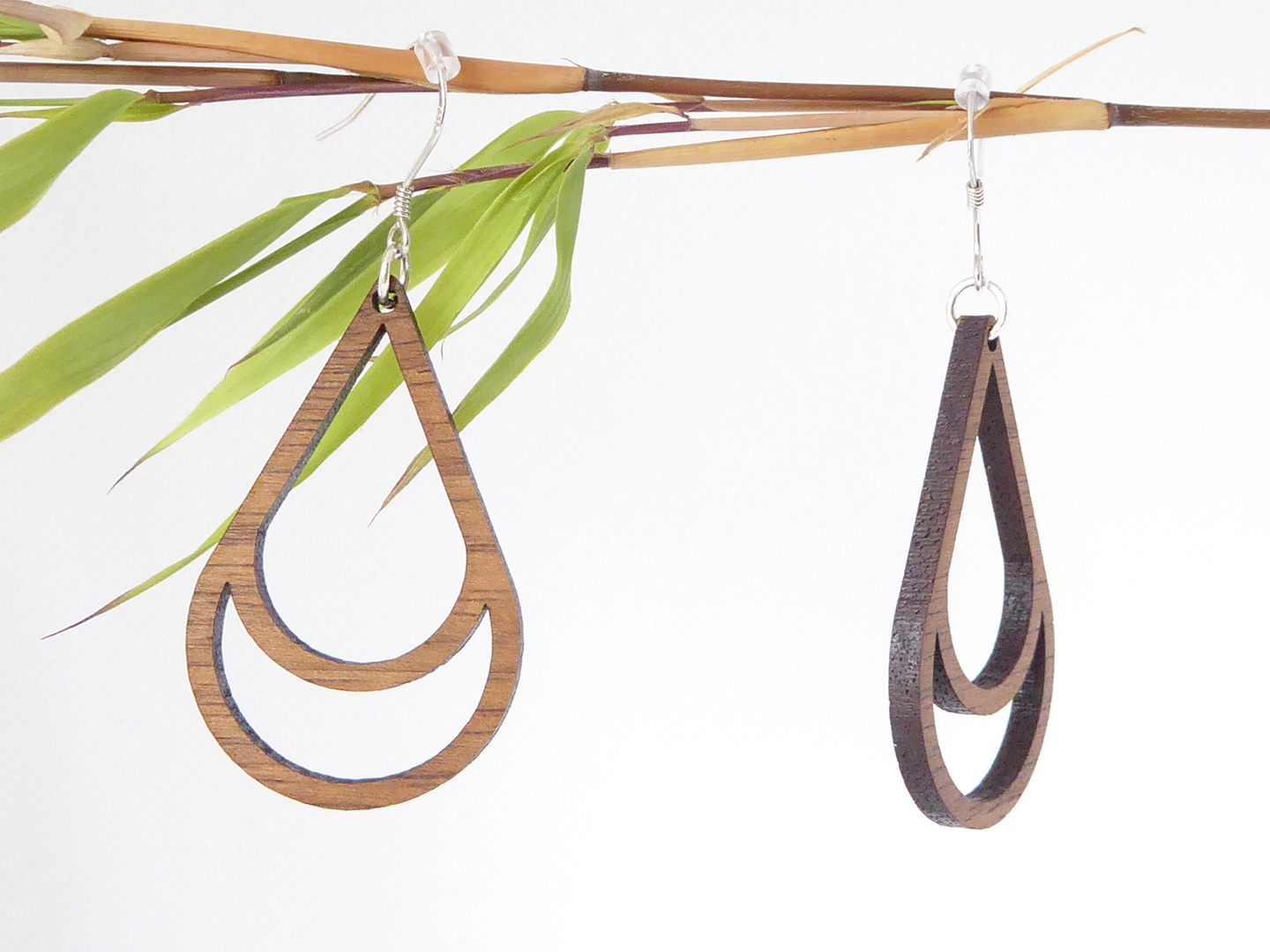 Boucles d’oreilles en bois massif, apprêts en argent 925.