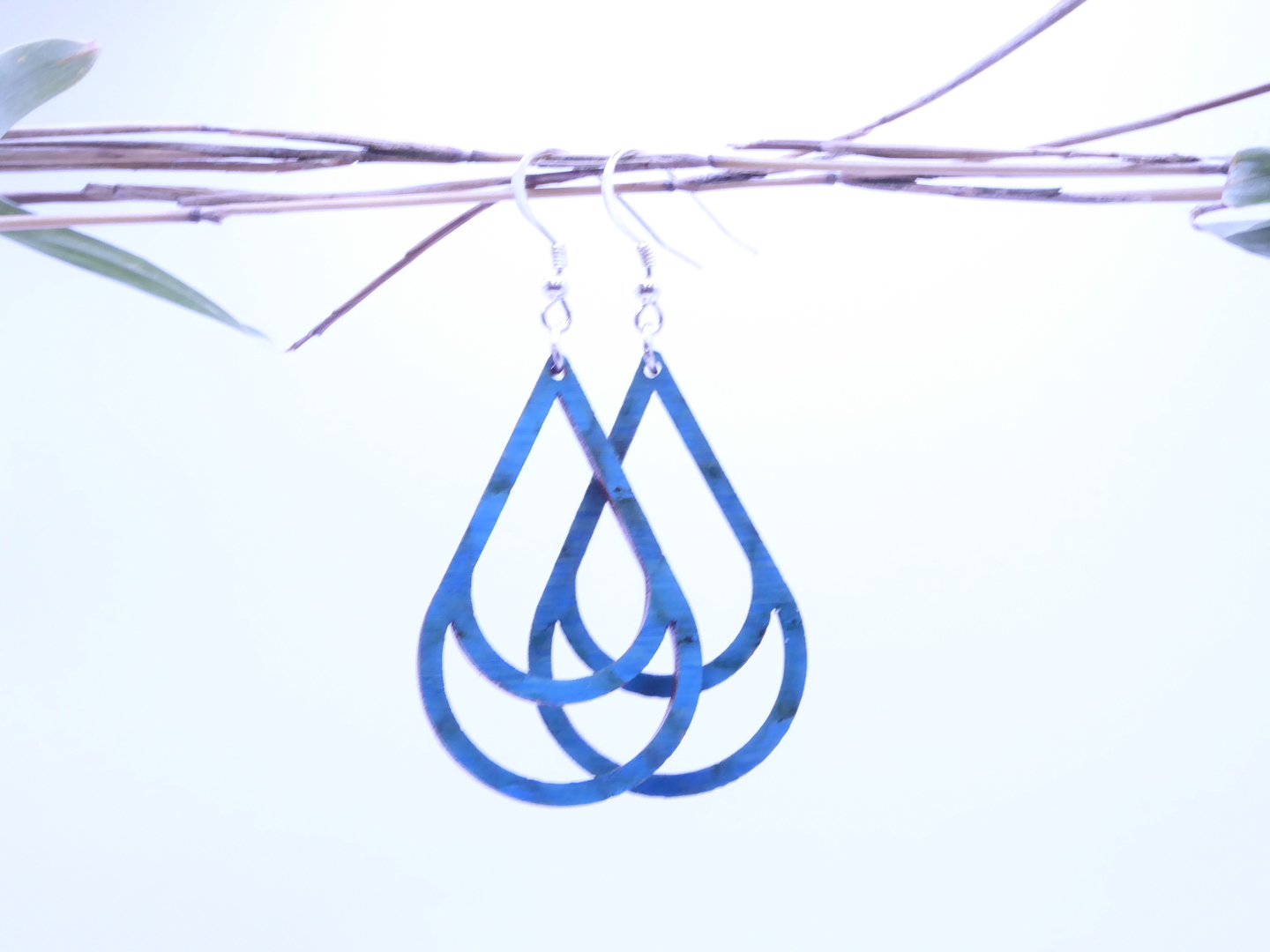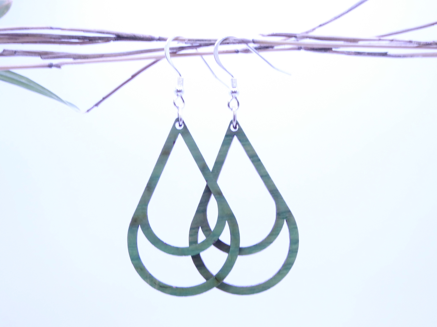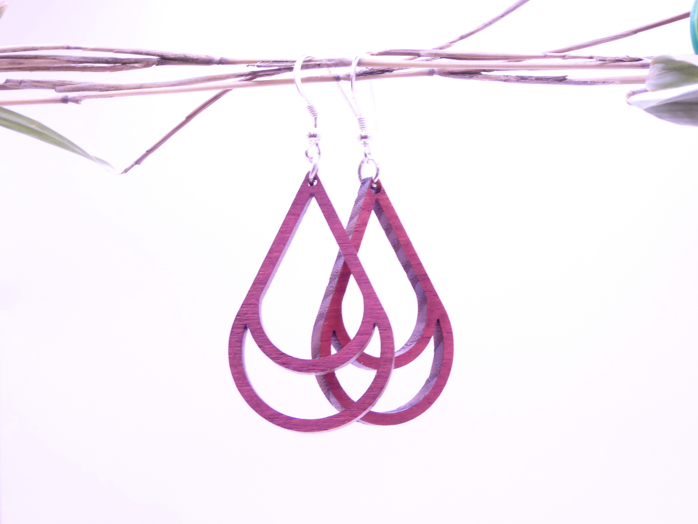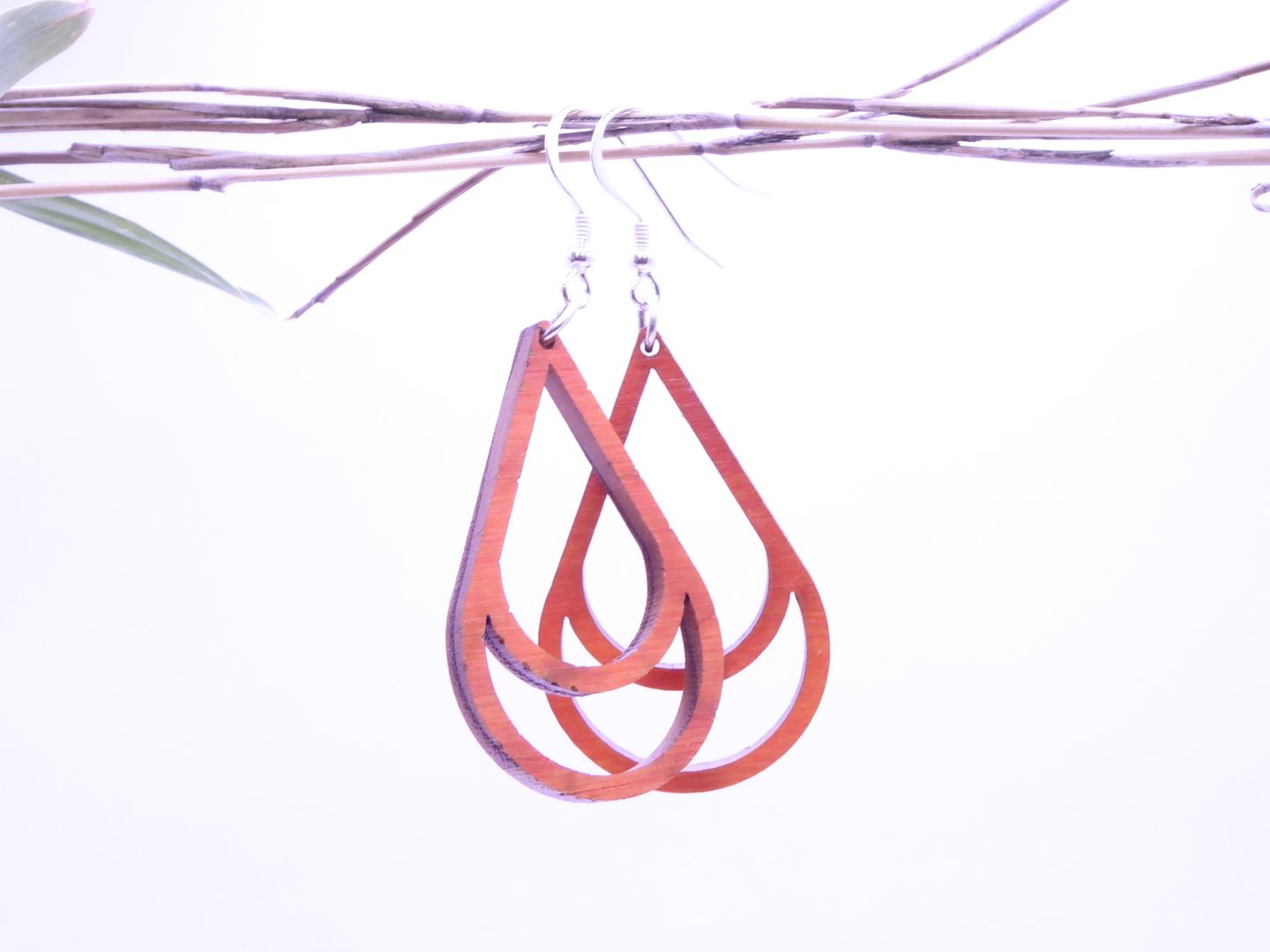Boucles d’oreilles en bois massif, apprêts en argent 925.