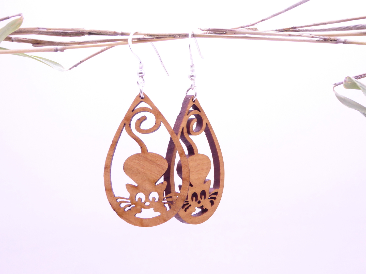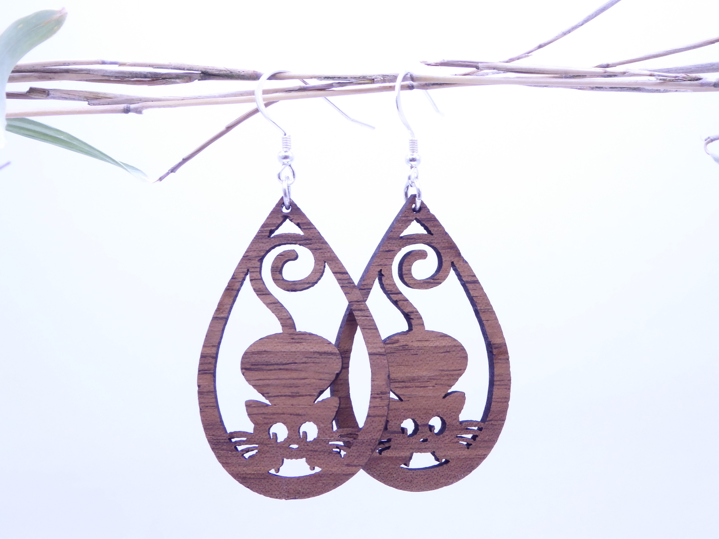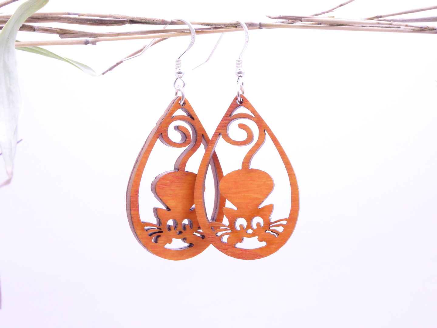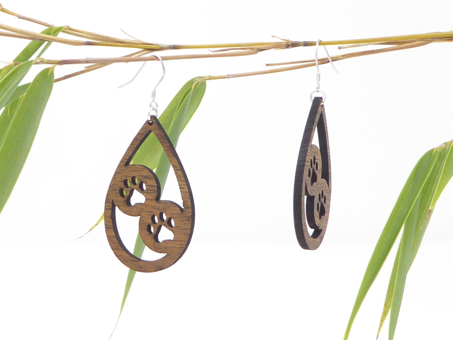 Boucles d’oreilles en bois massif, apprêts en argent 925.