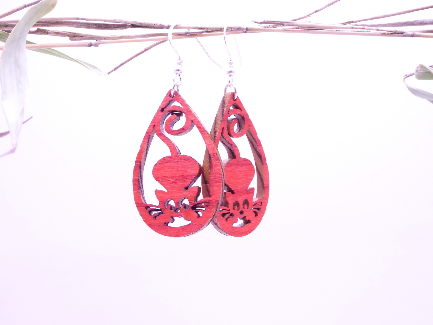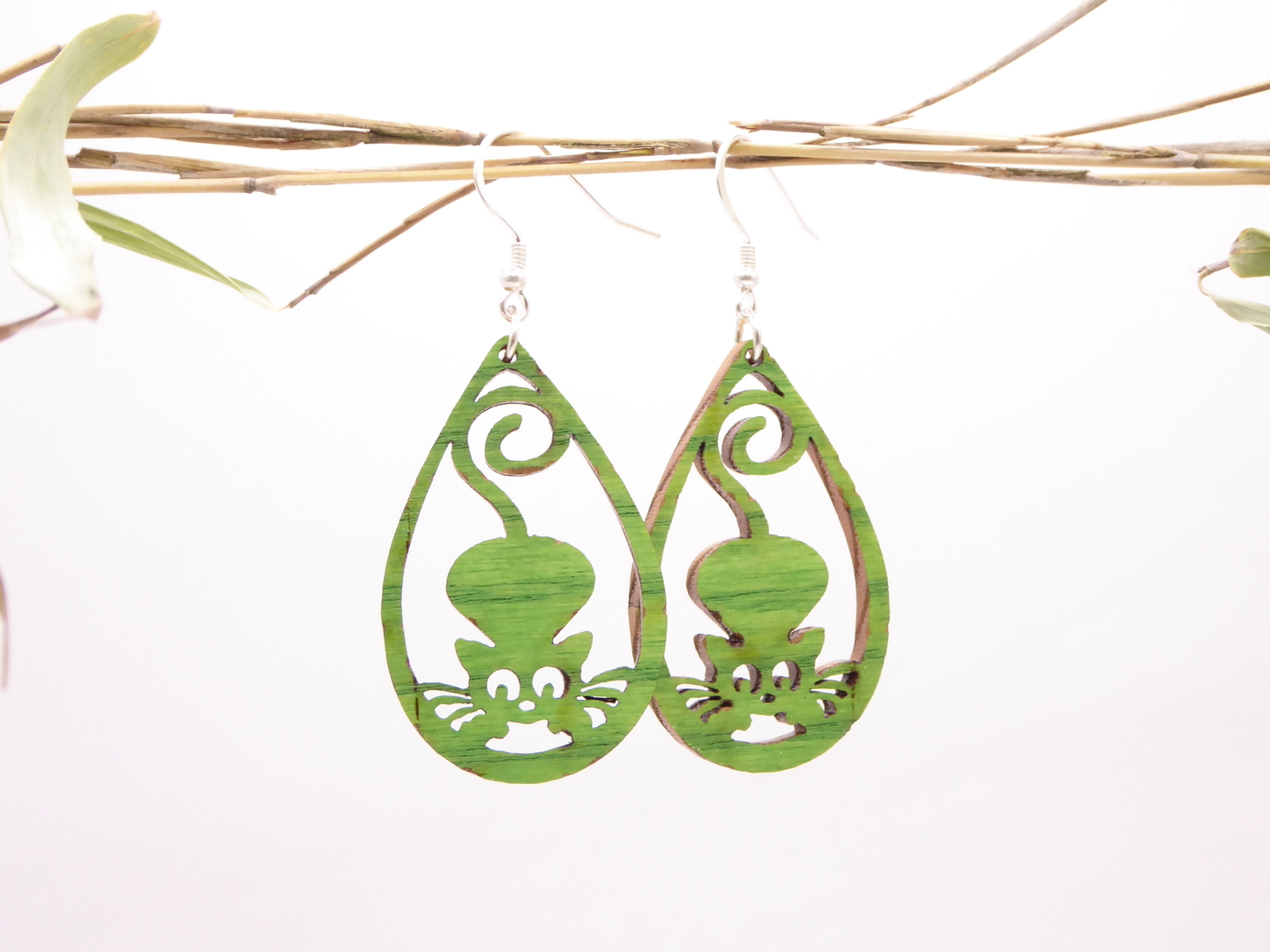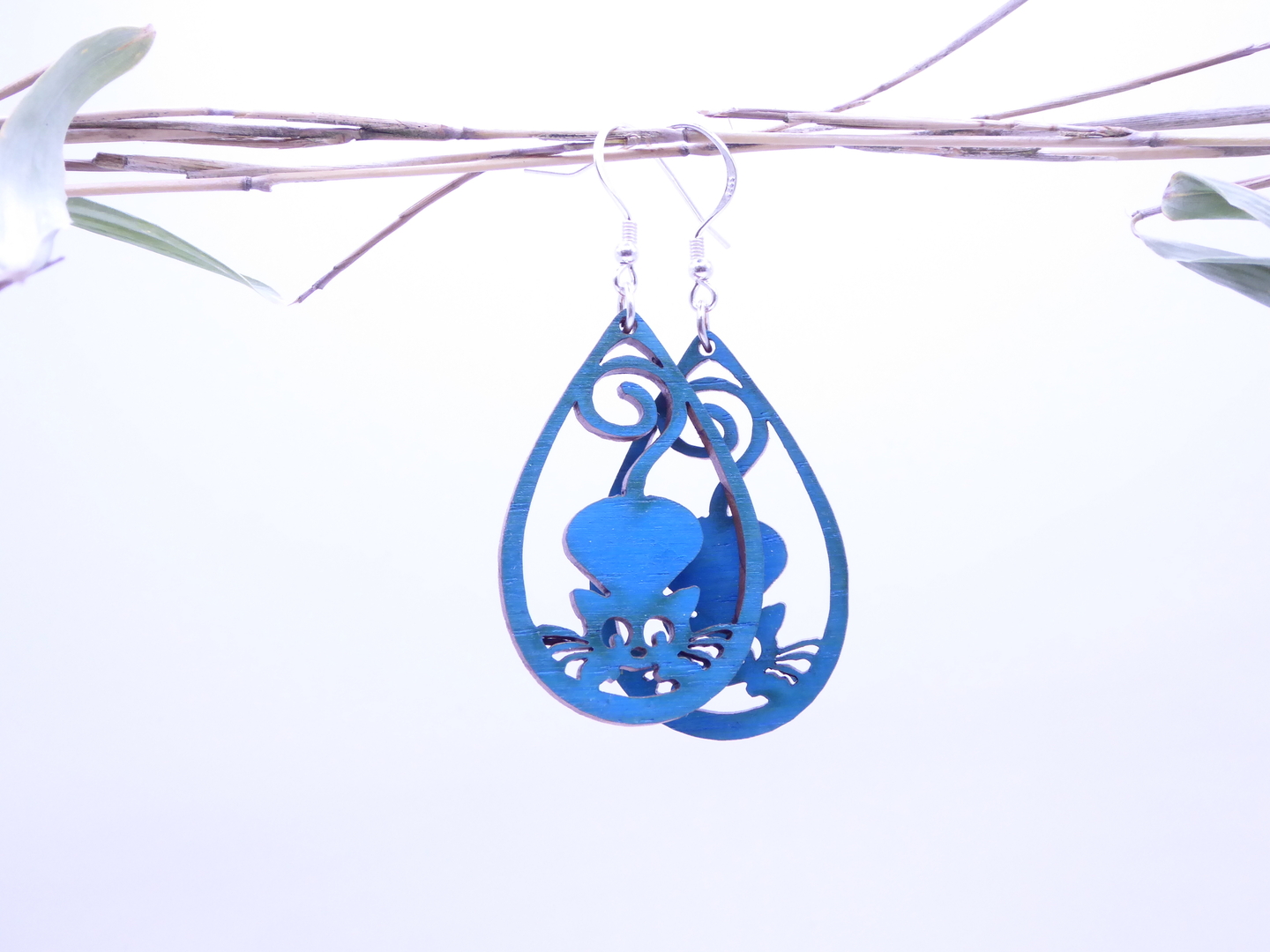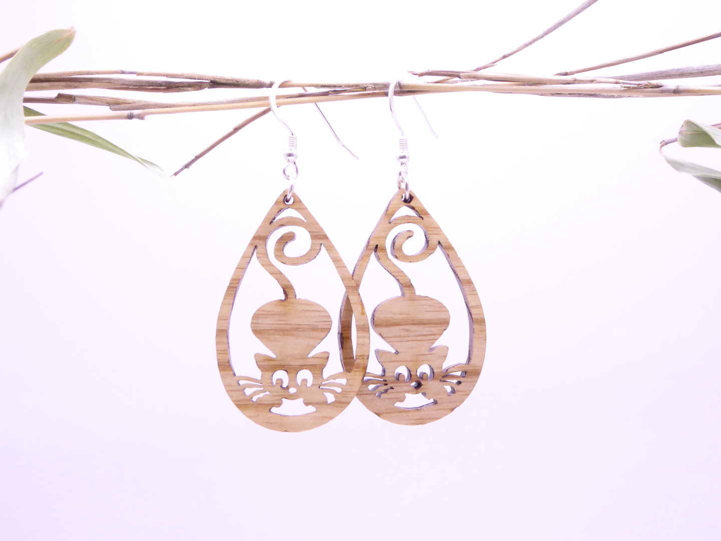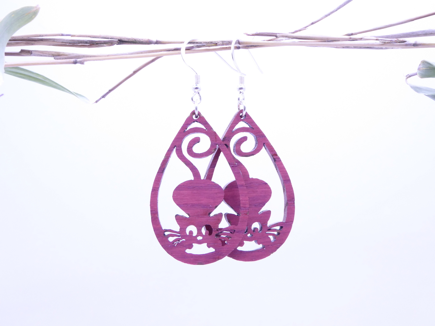 Boucles d’oreilles en bois massif, apprêts en argent 925.