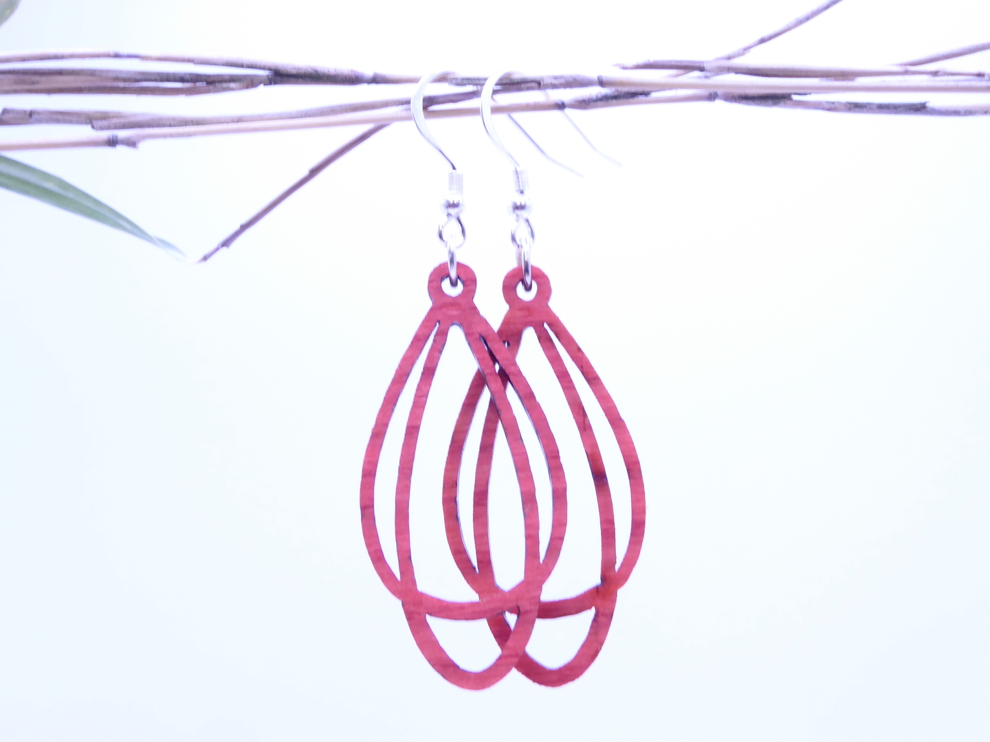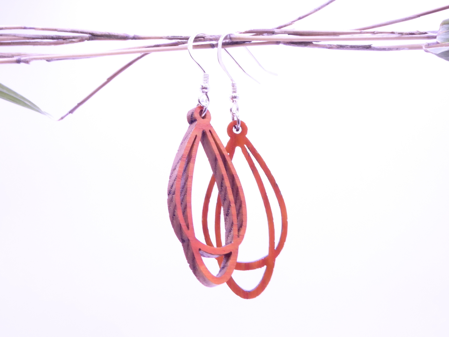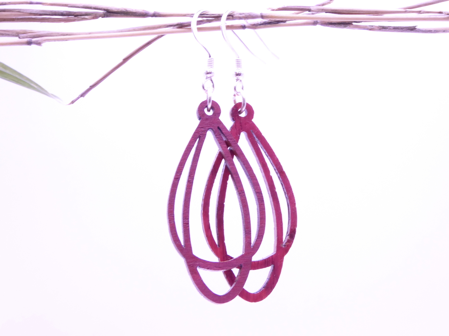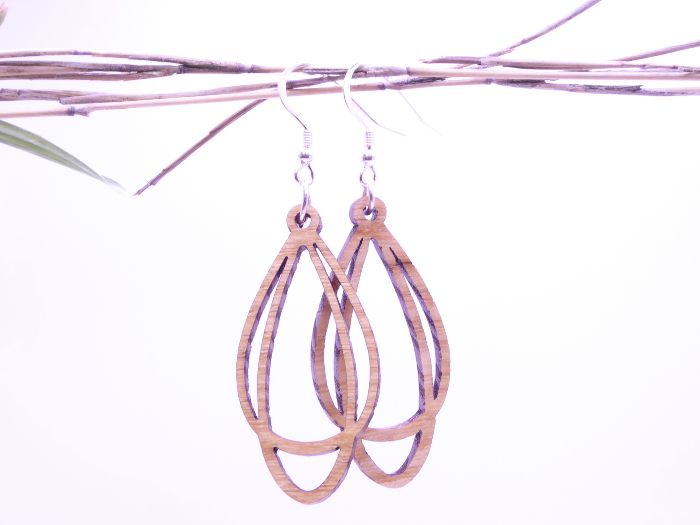 Boucles d’oreilles en bois massif, apprêts en argent 925.