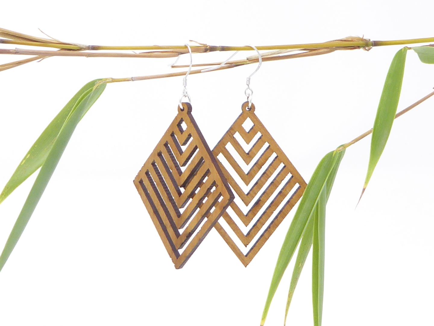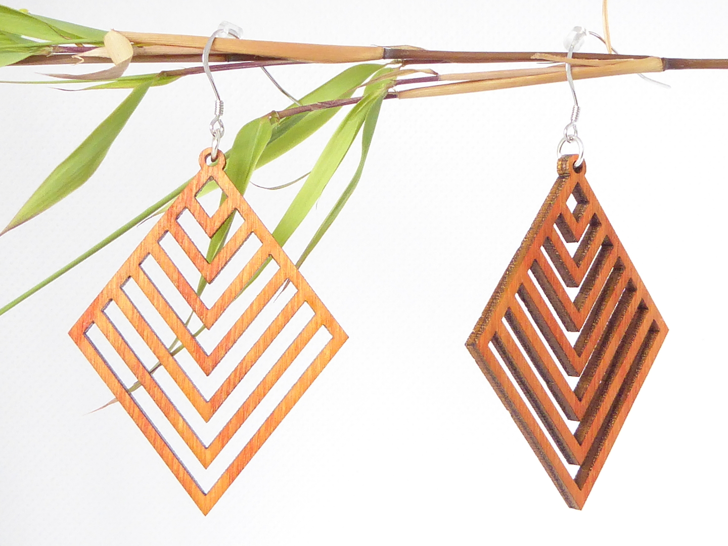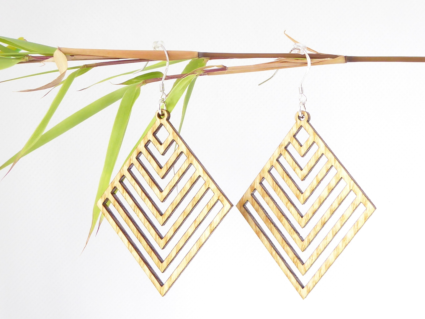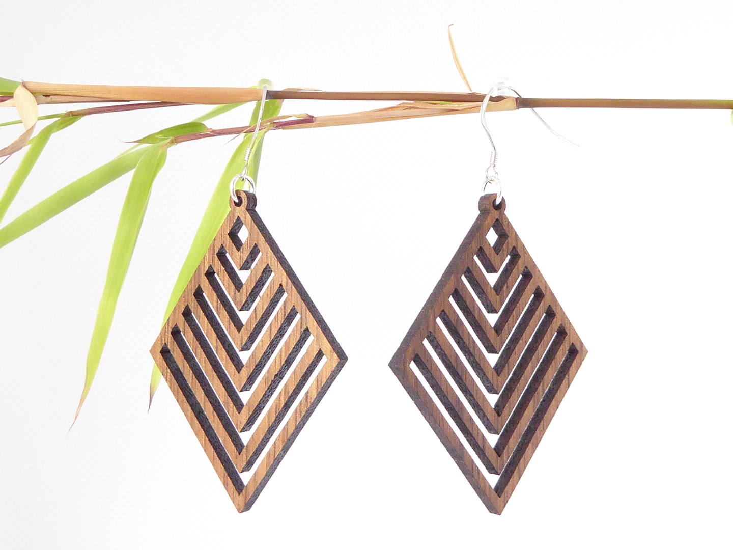 Boucles d’oreilles en bois massif, apprêts en argent 925.