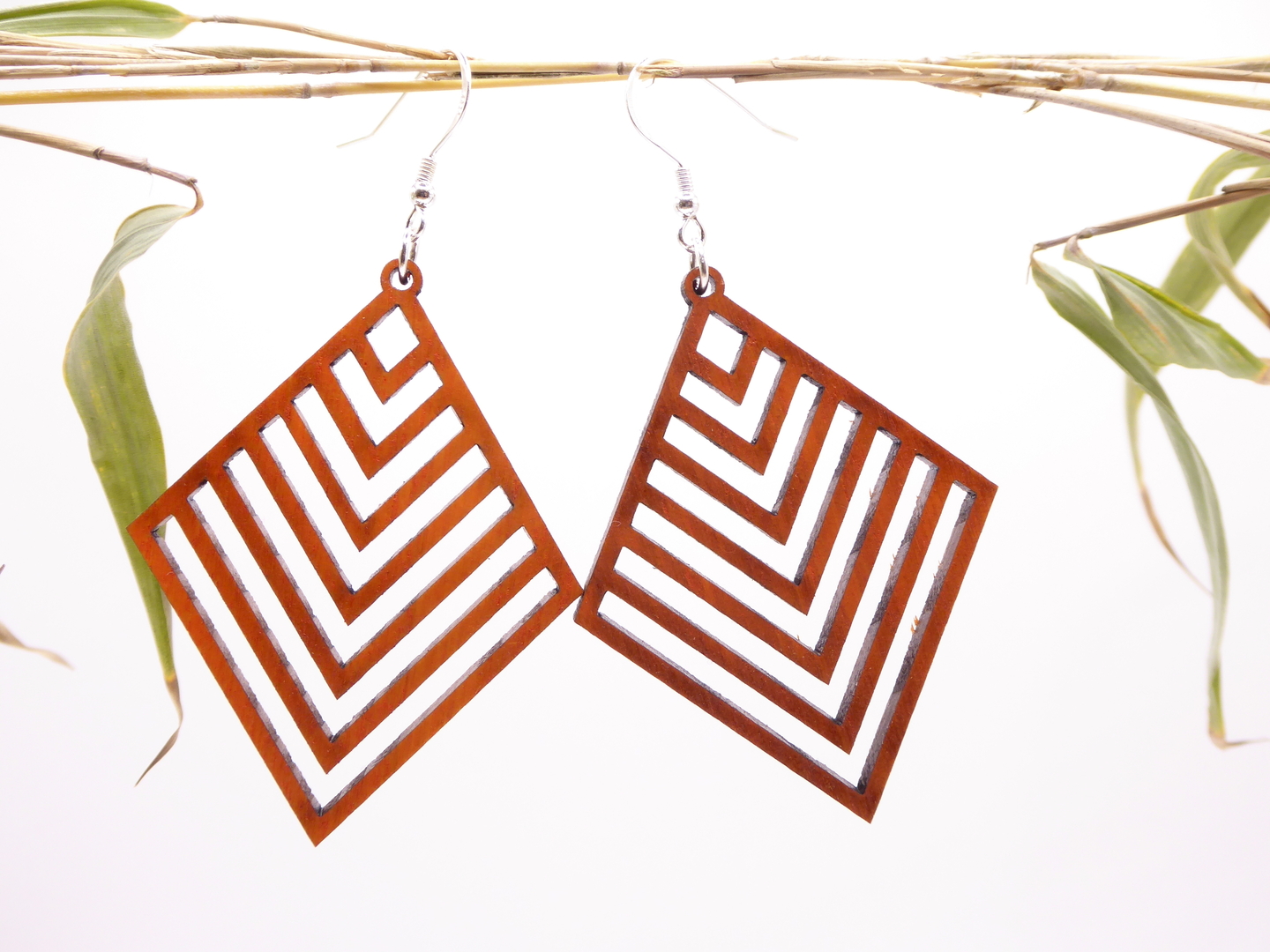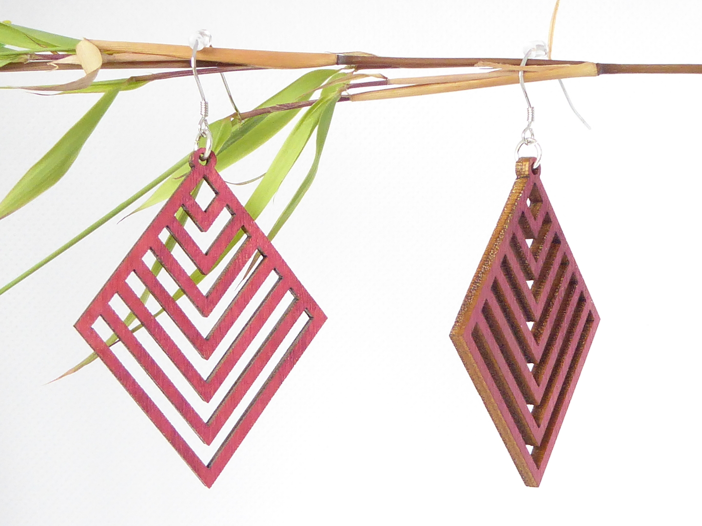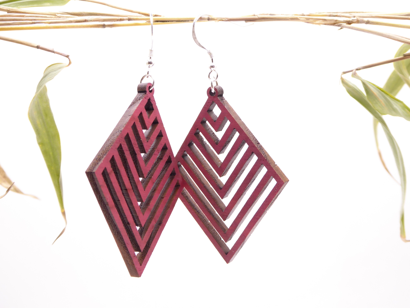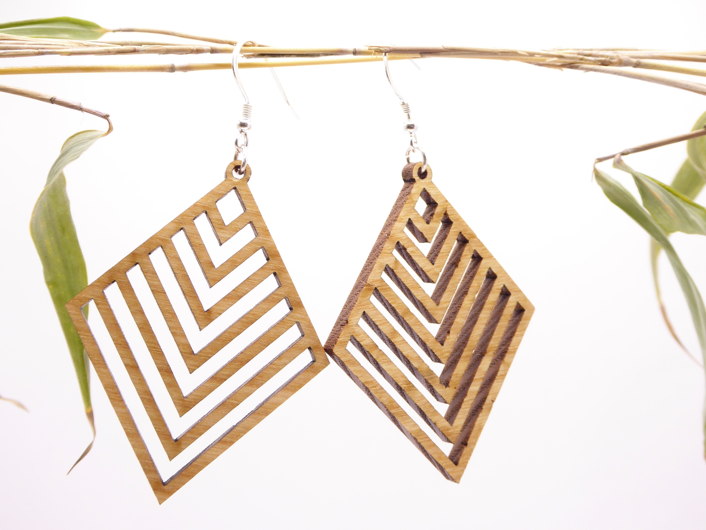 Boucles d’oreilles en bois massif, apprêts en argent 925.