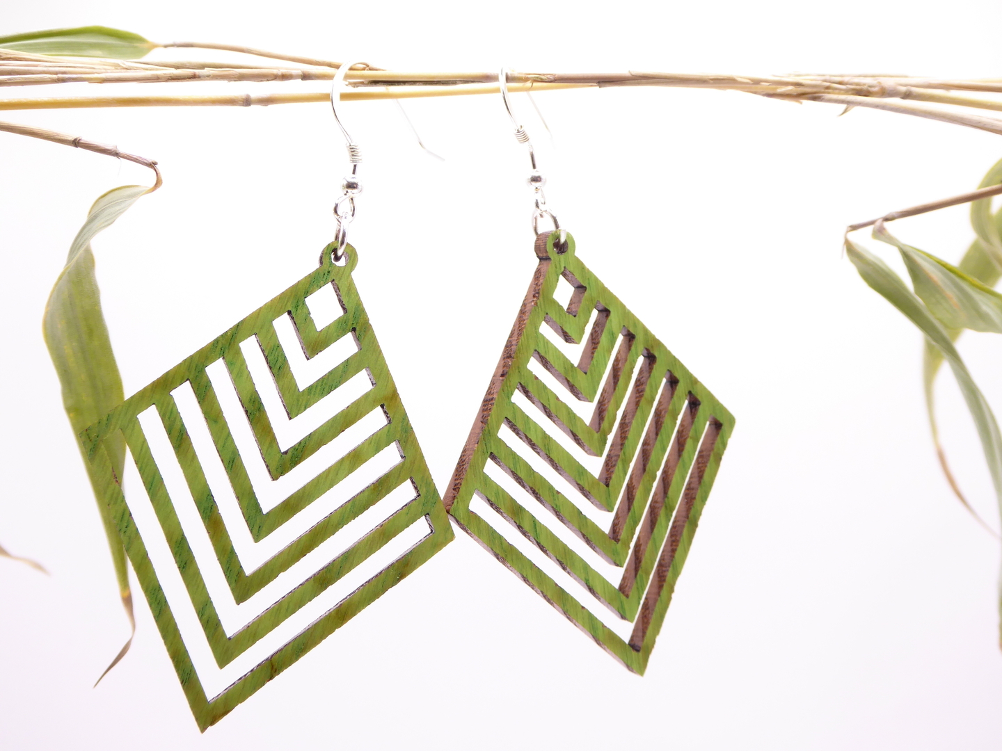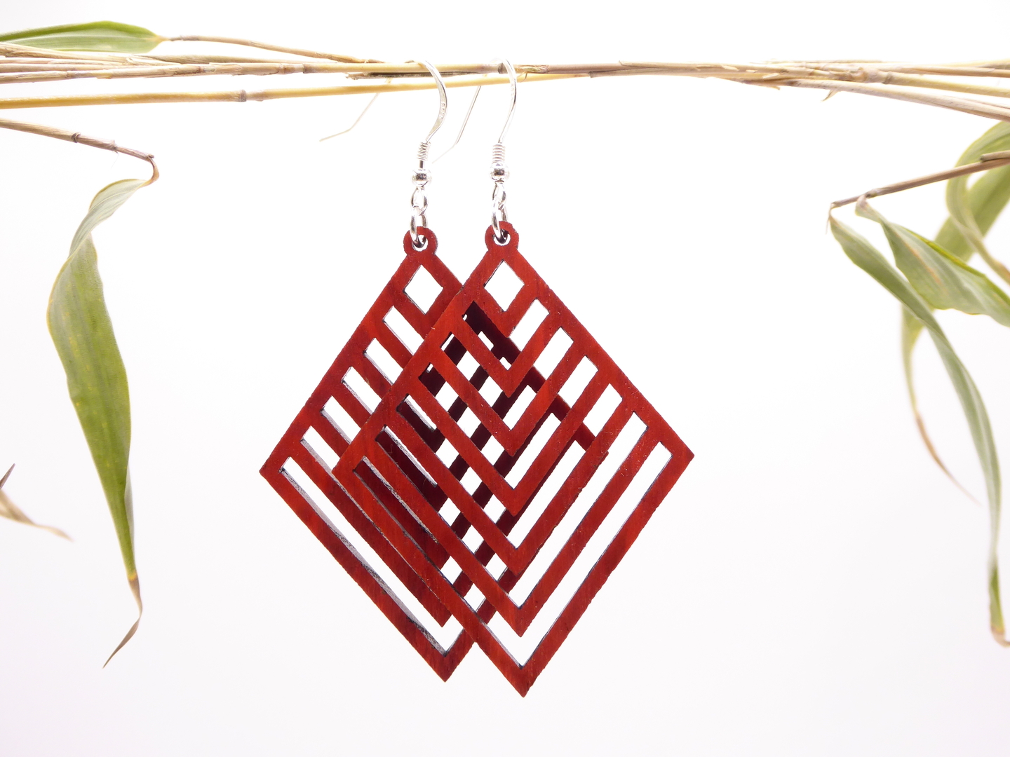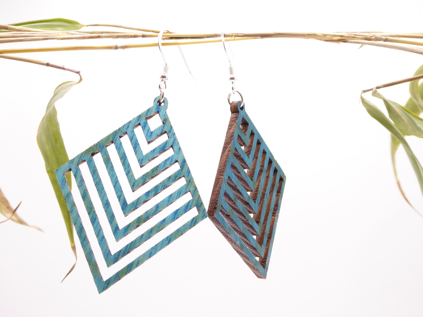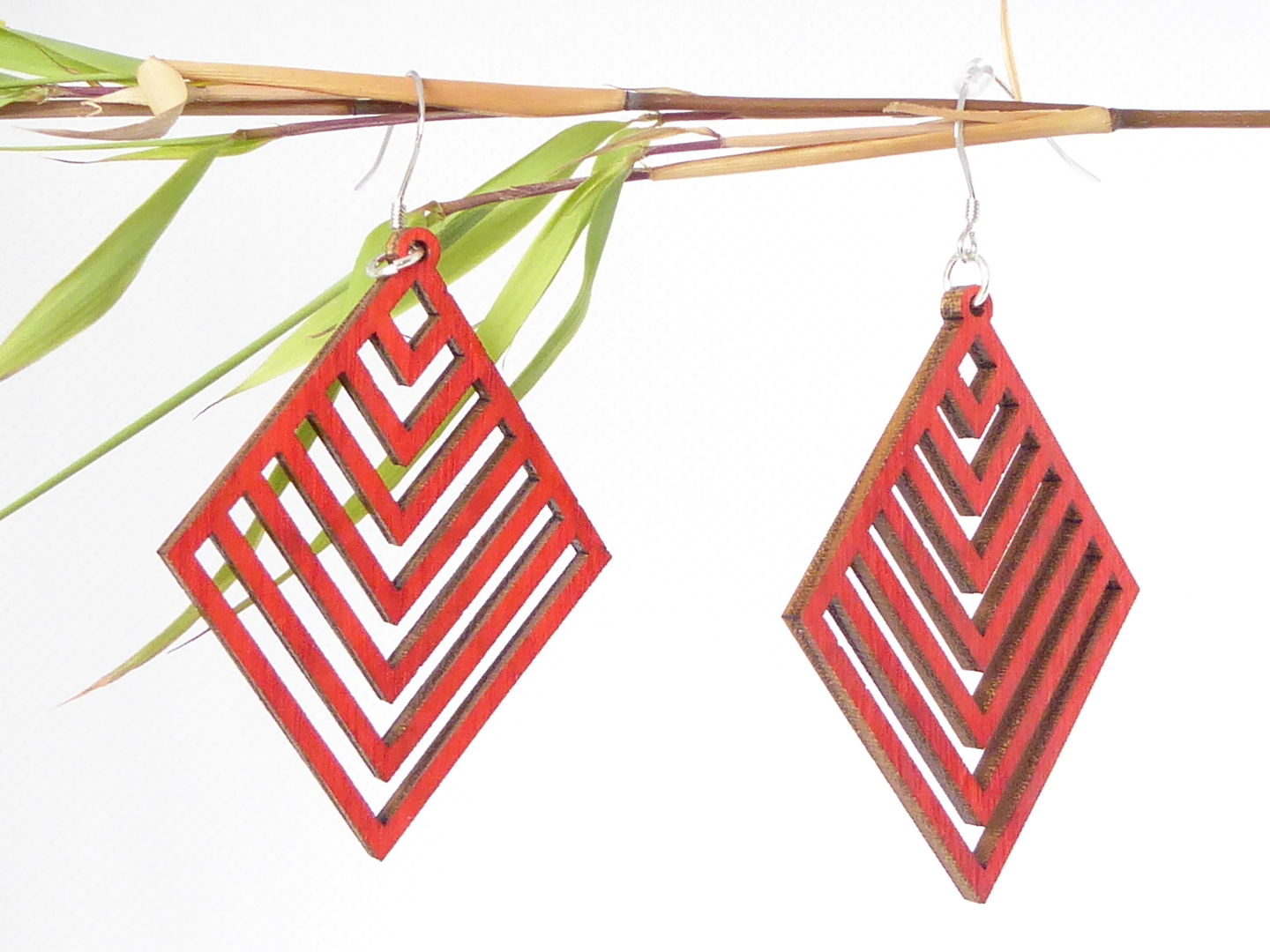 Boucles d’oreilles en bois massif, apprêts en argent 925.