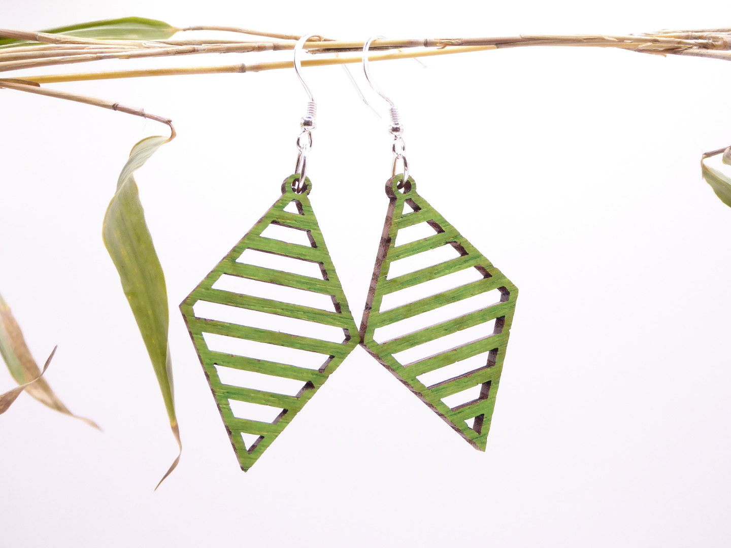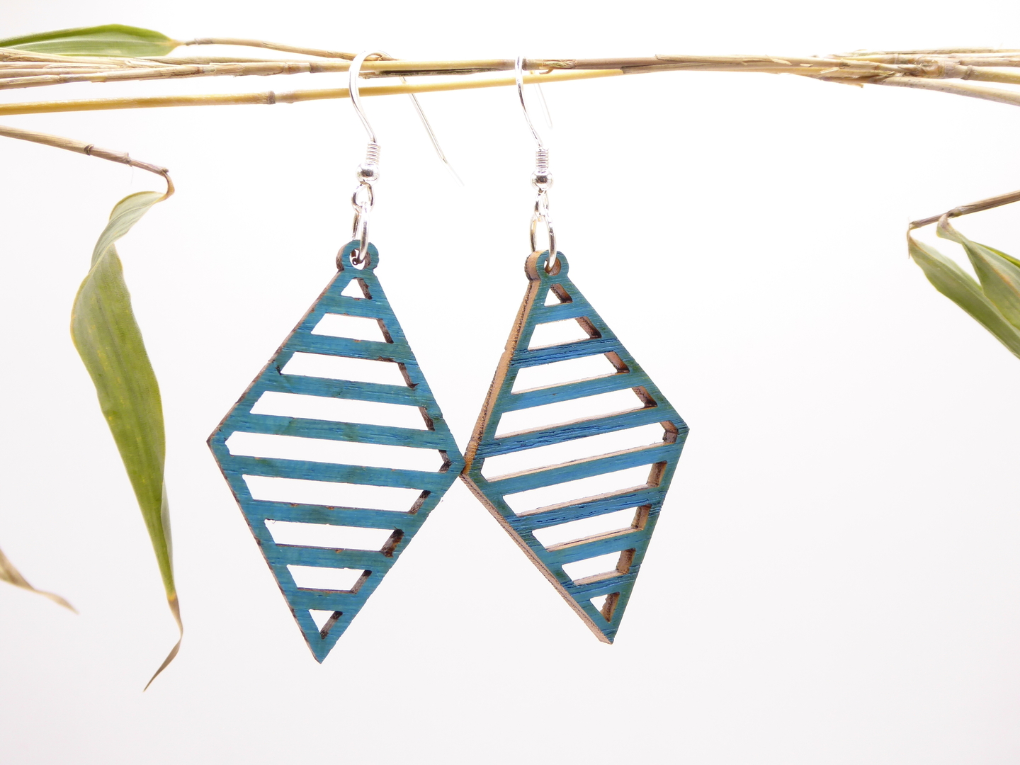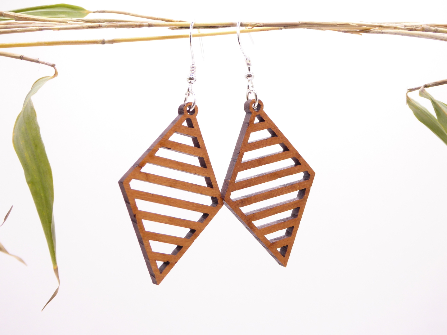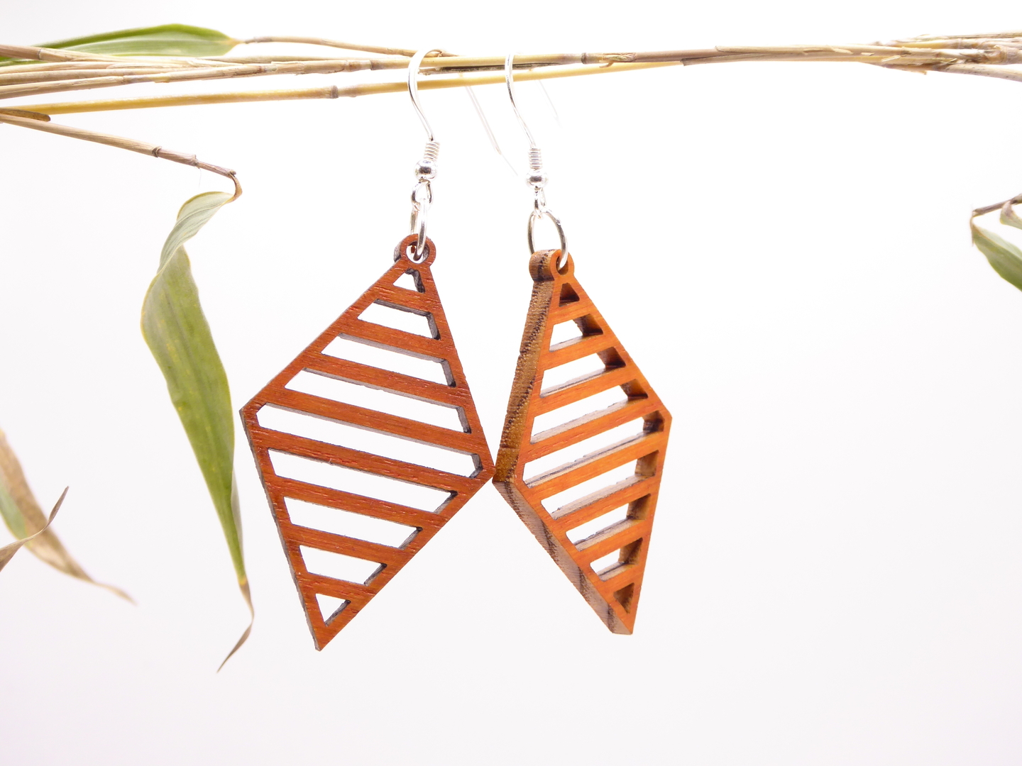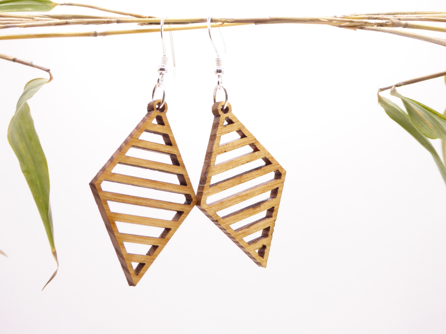 Boucles d’oreilles en bois massif, apprêts en argent 925.