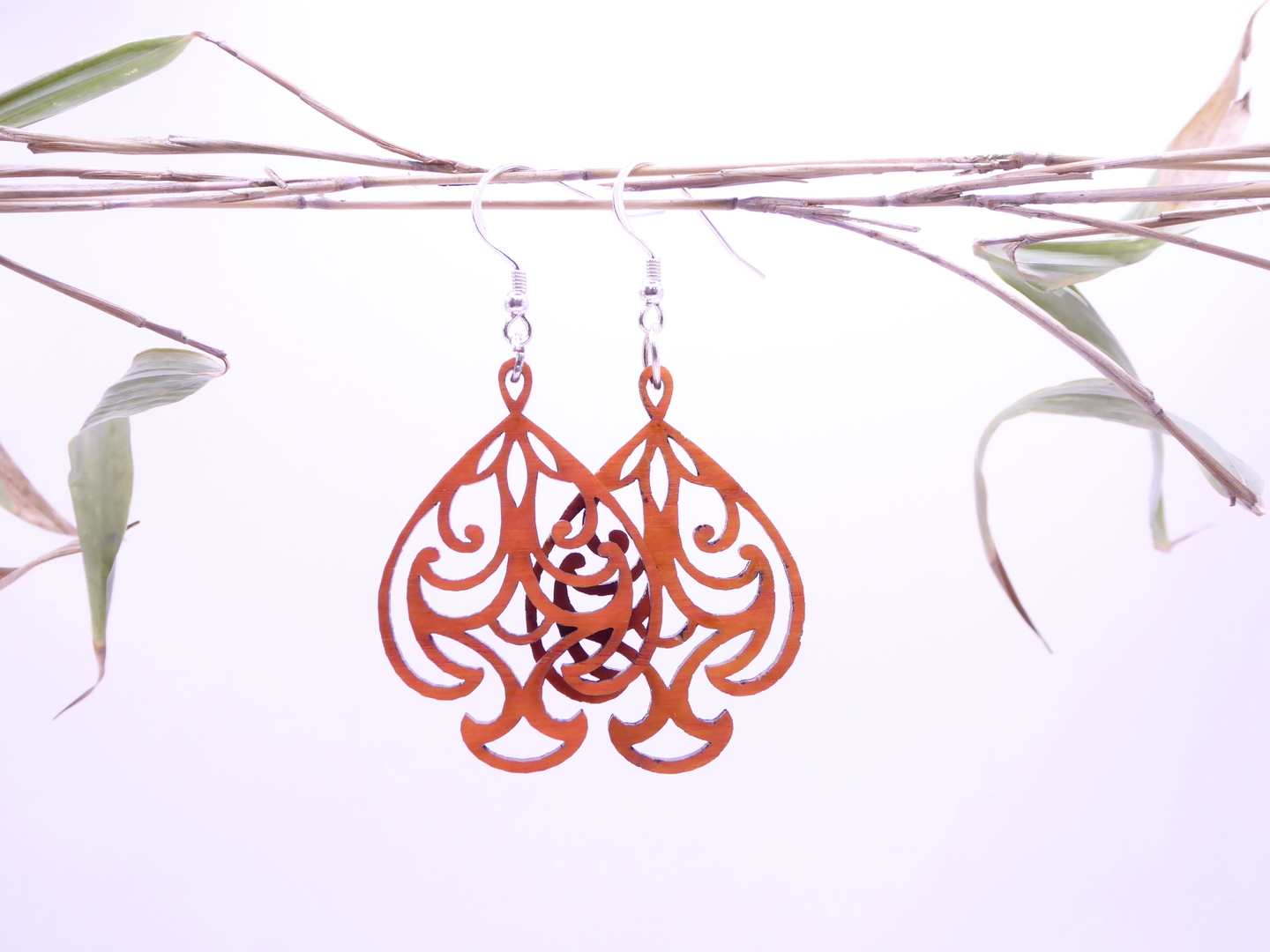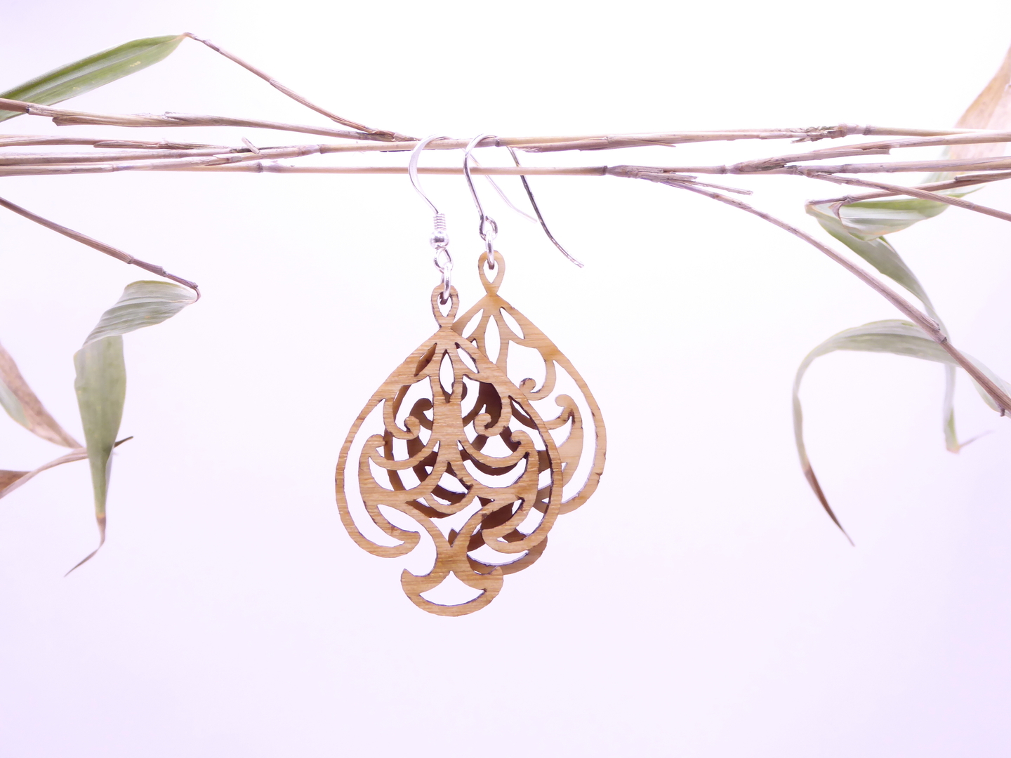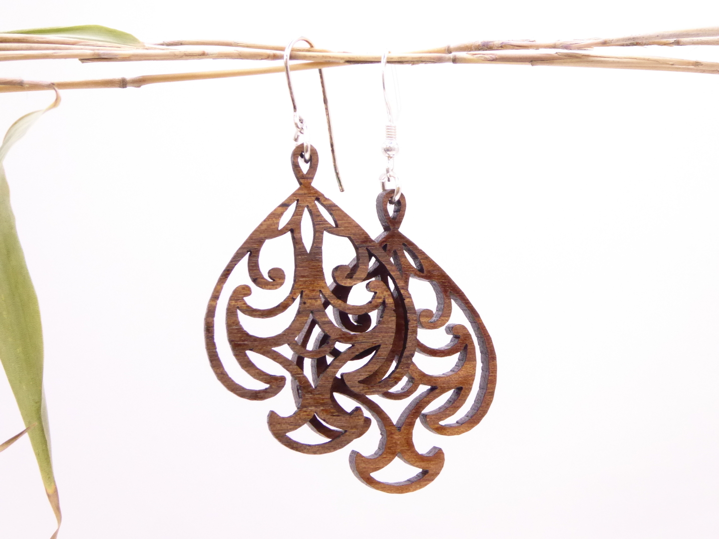 Boucles d’oreilles en bois massif, apprêts en argent 925.
