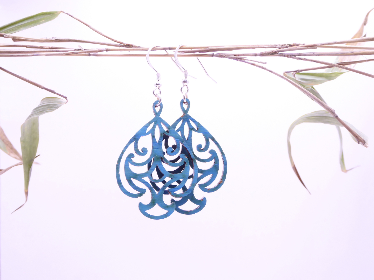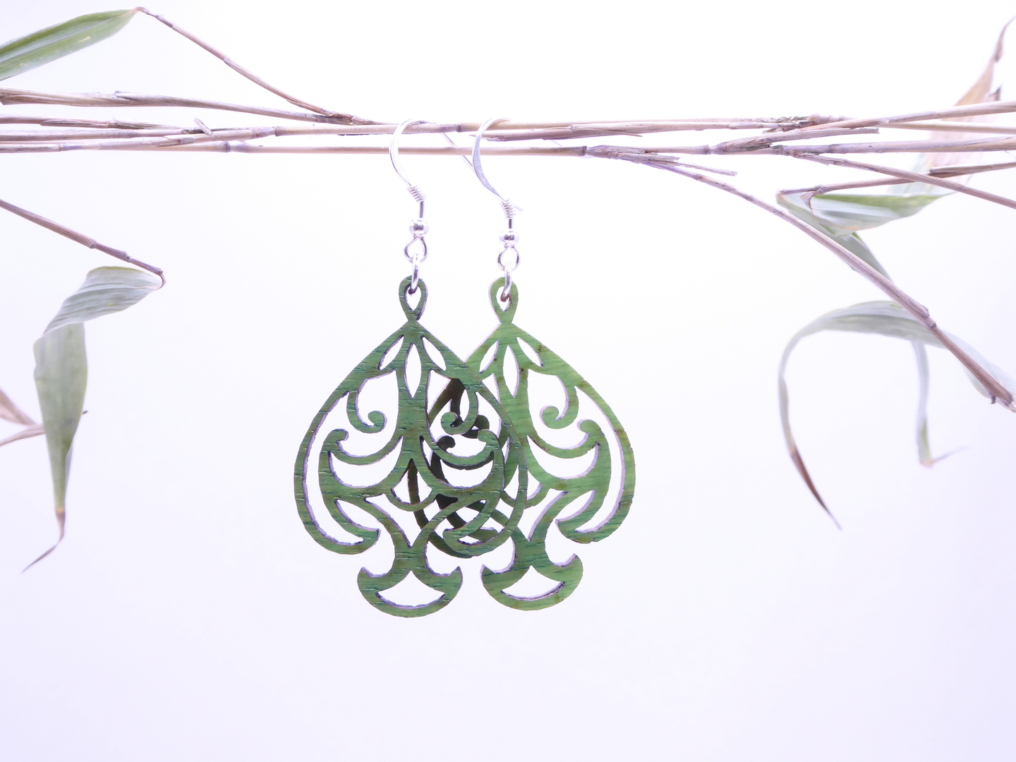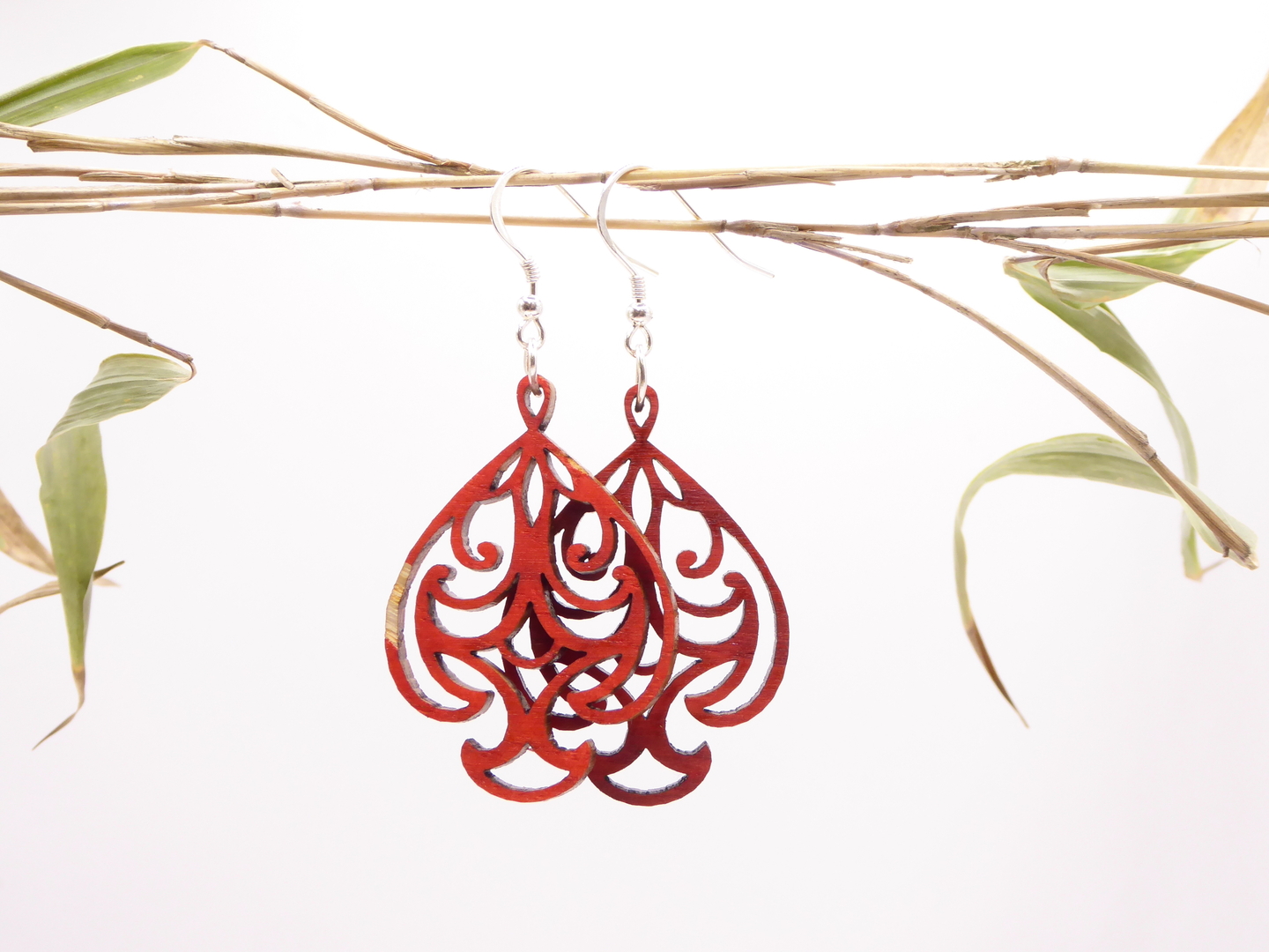 Boucles d’oreilles en bois massif, apprêts en argent 925.