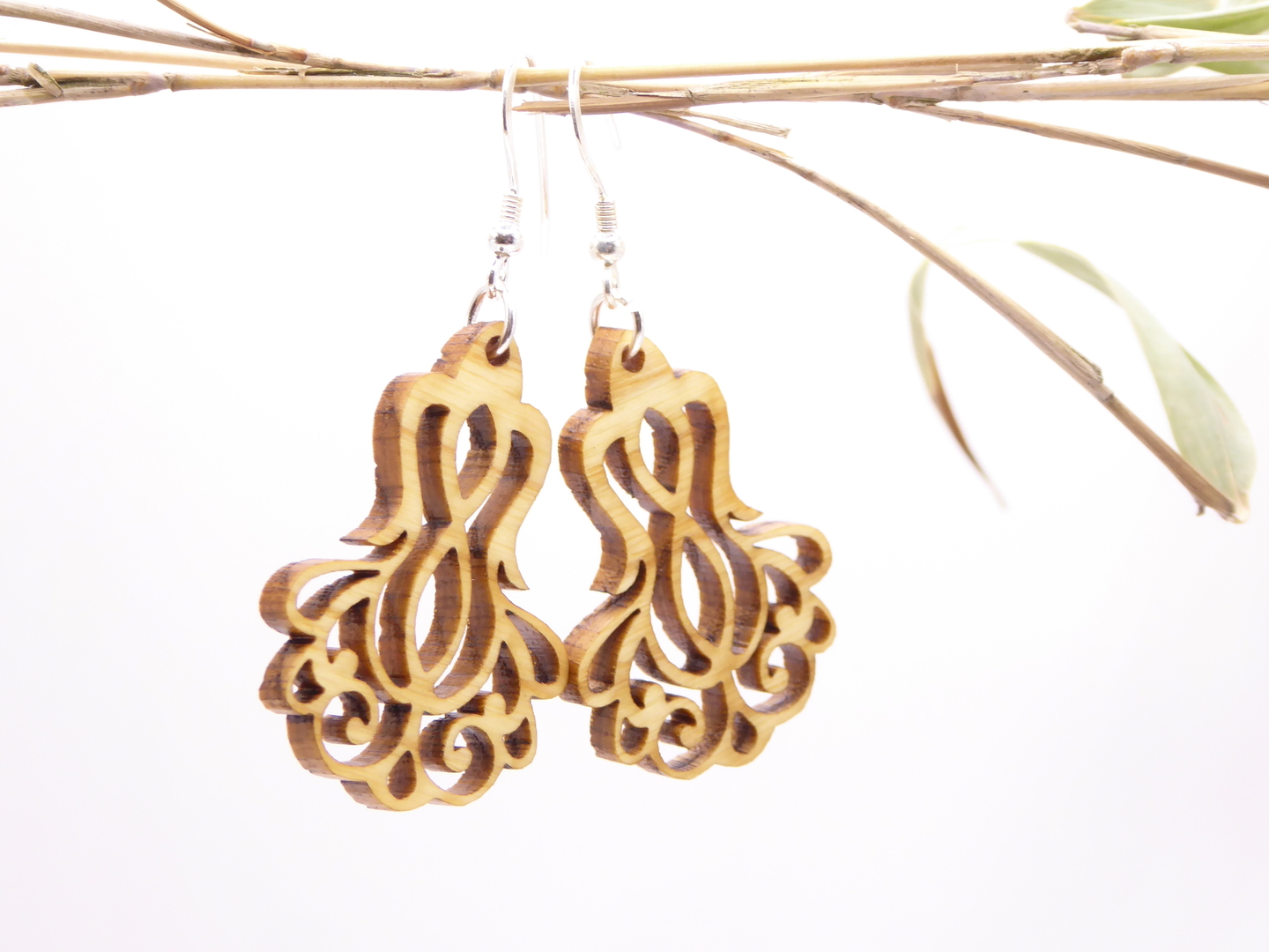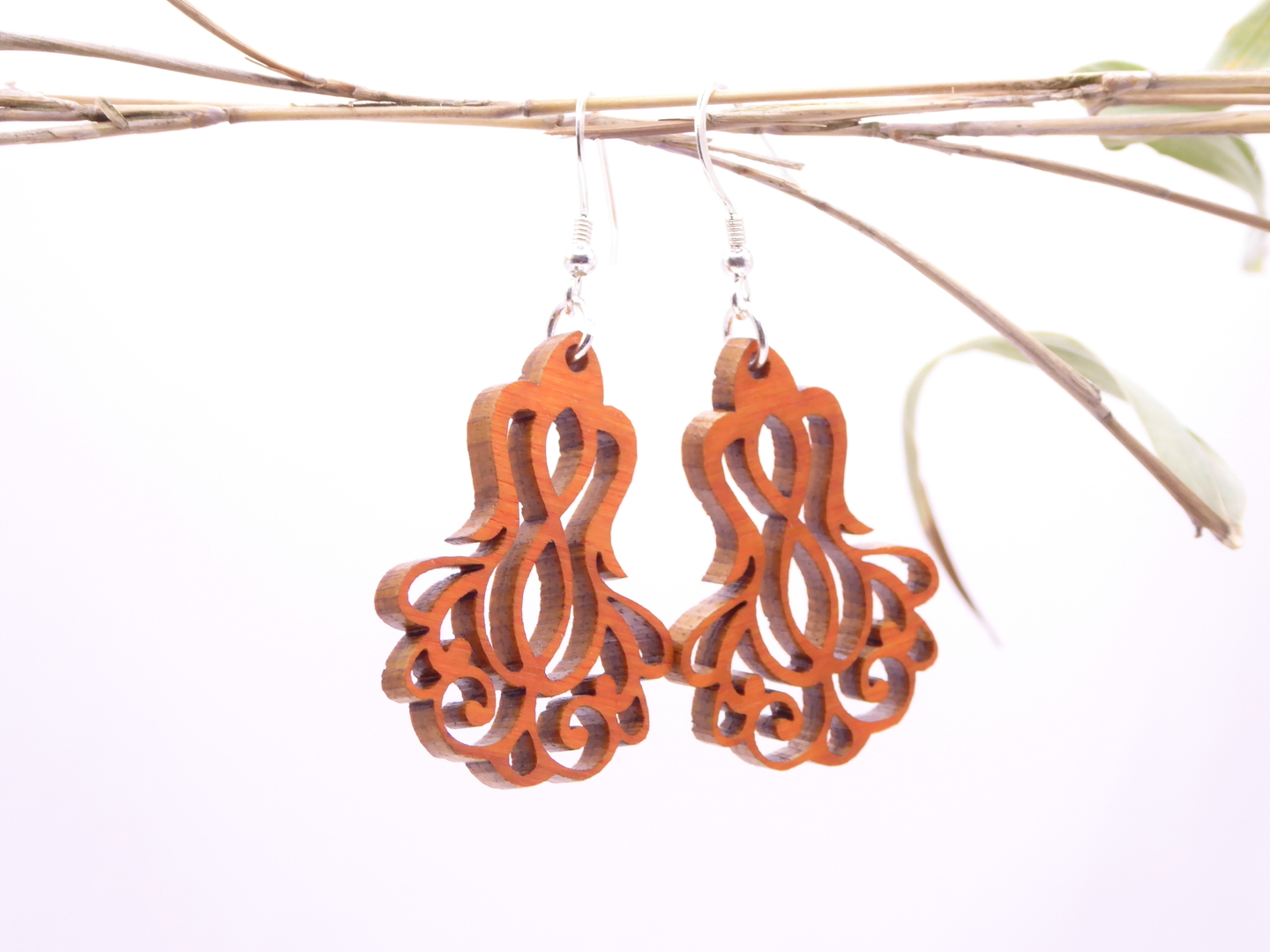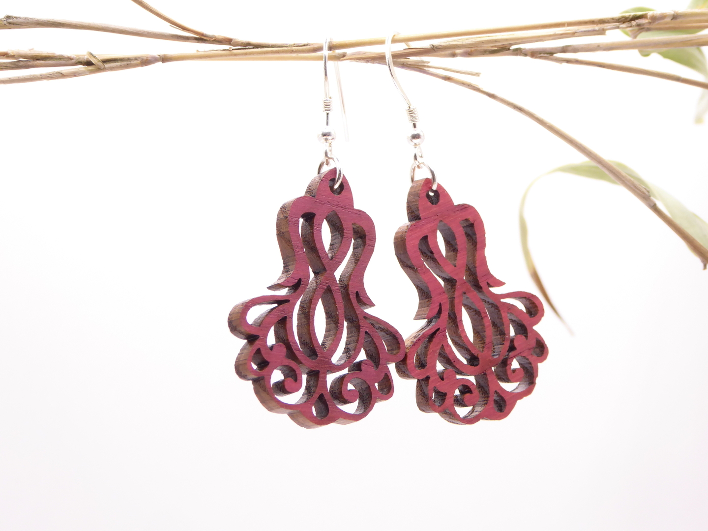 Boucles d’oreilles en bois massif, apprêts en argent 925.