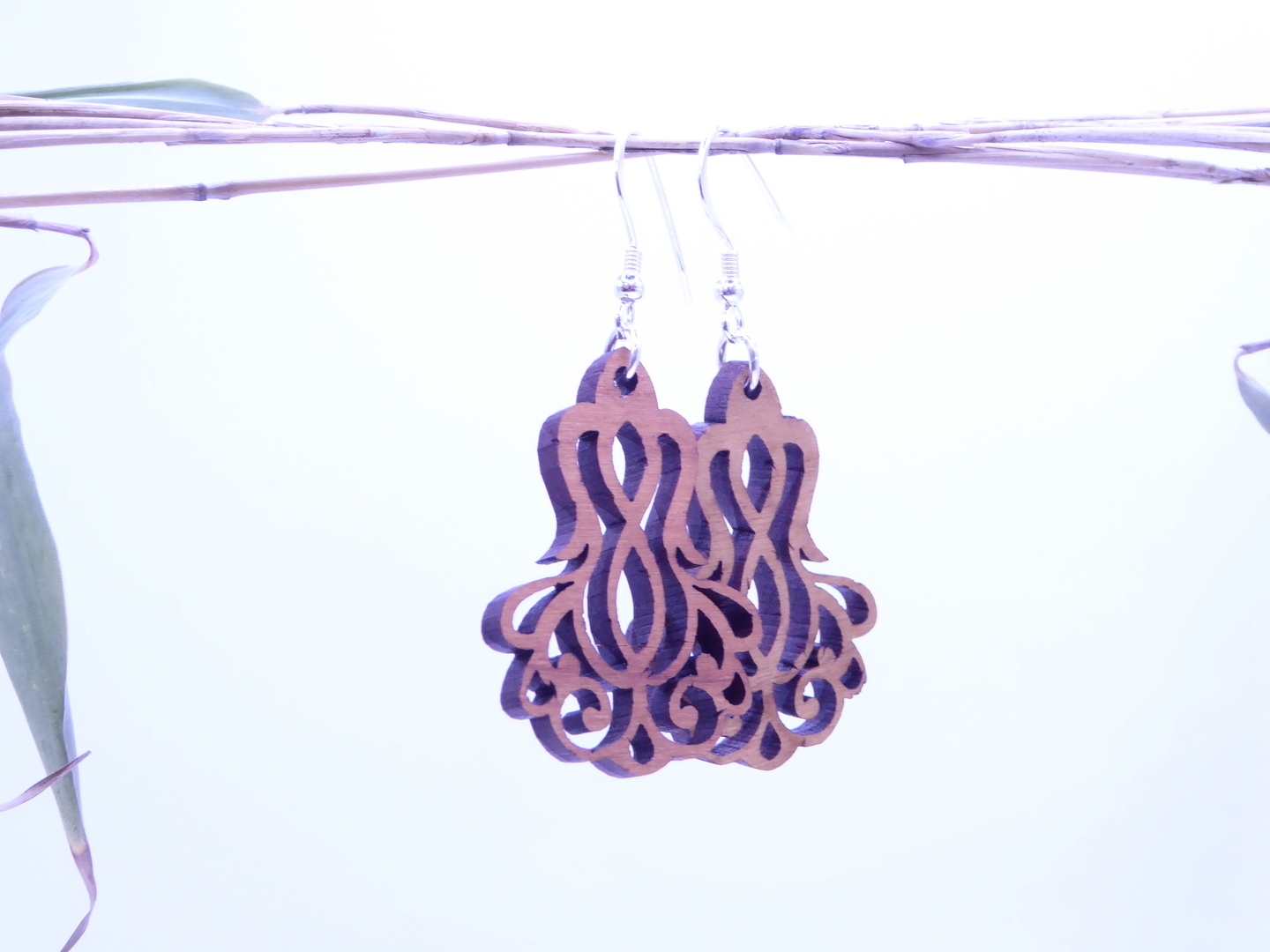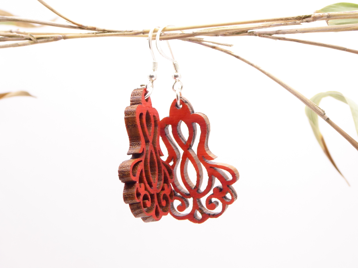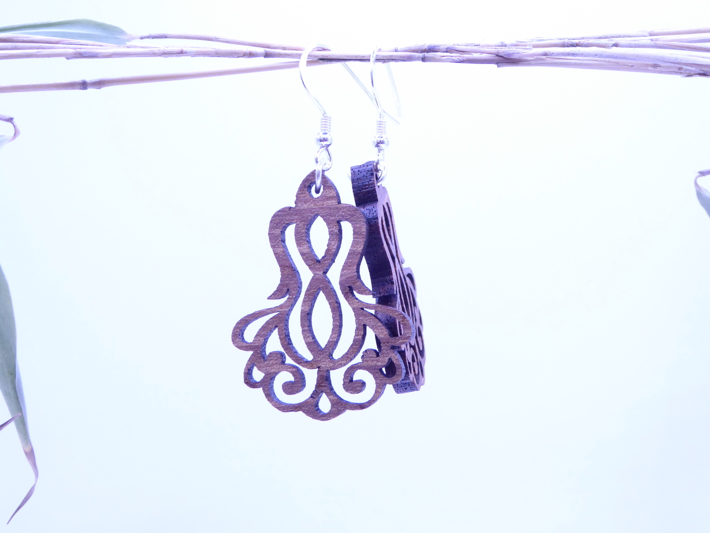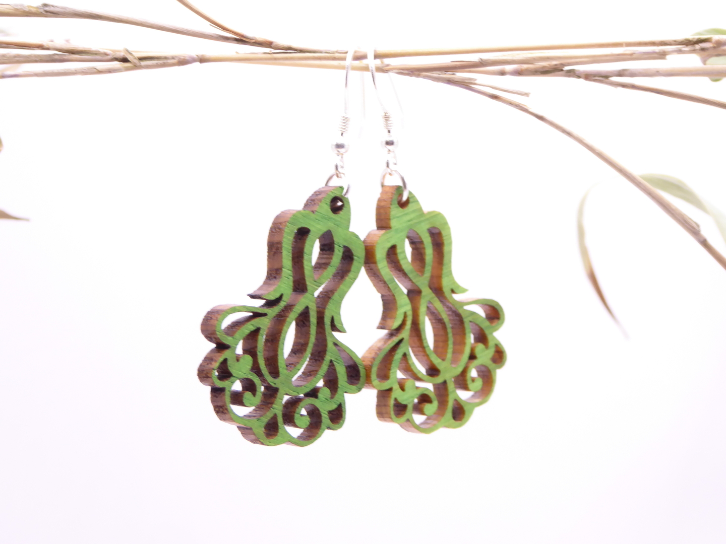 Boucles d’oreilles en bois massif, apprêts en argent 925.