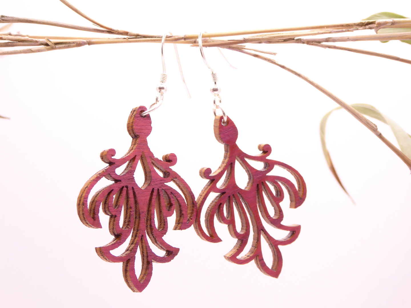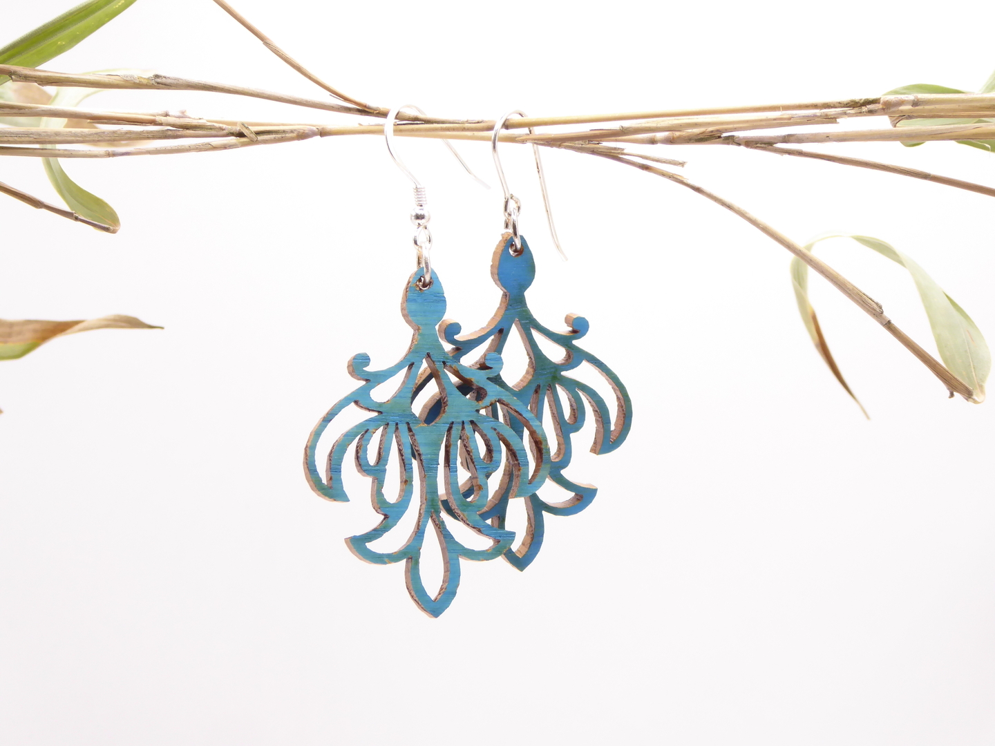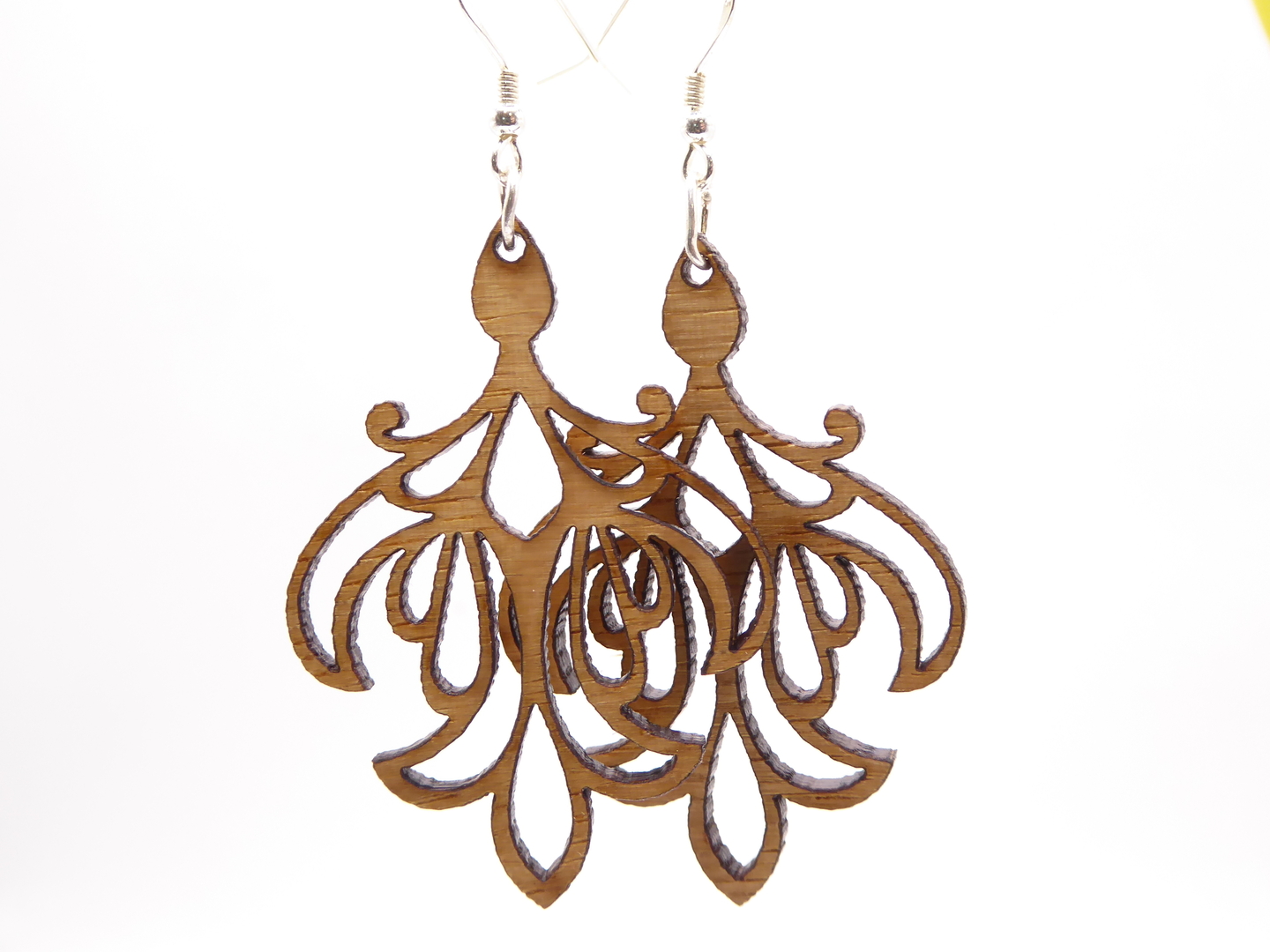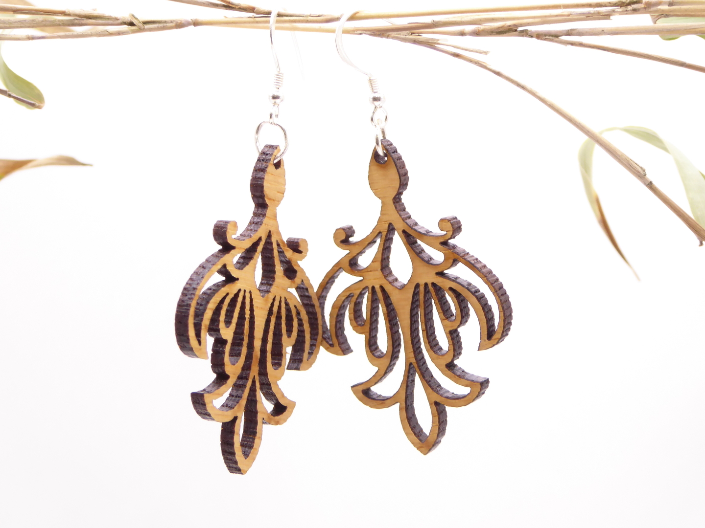 Boucles d’oreilles en bois massif, apprêts en argent 925.